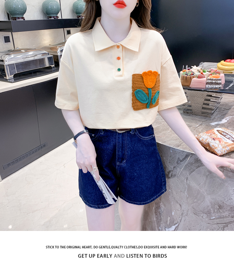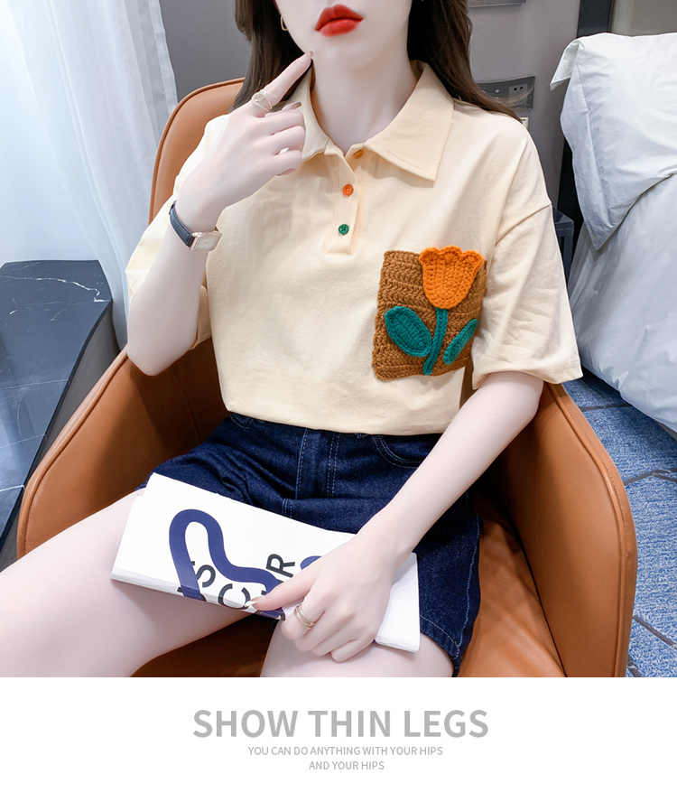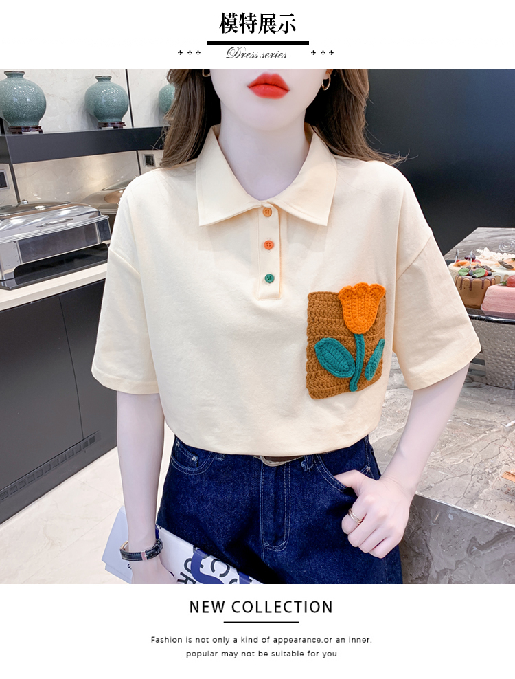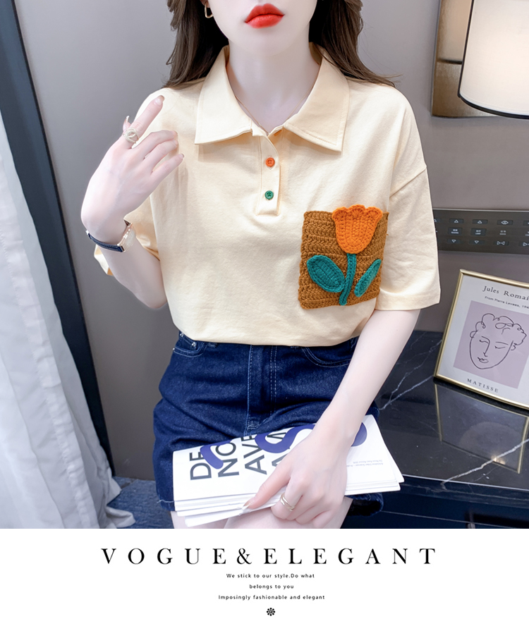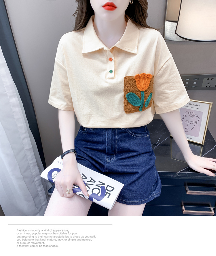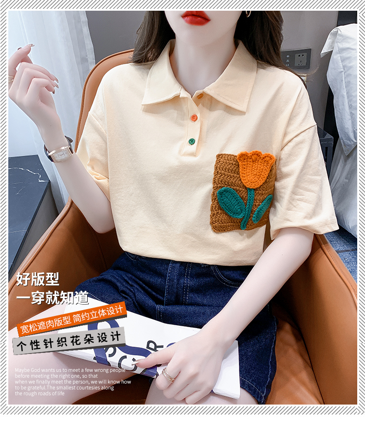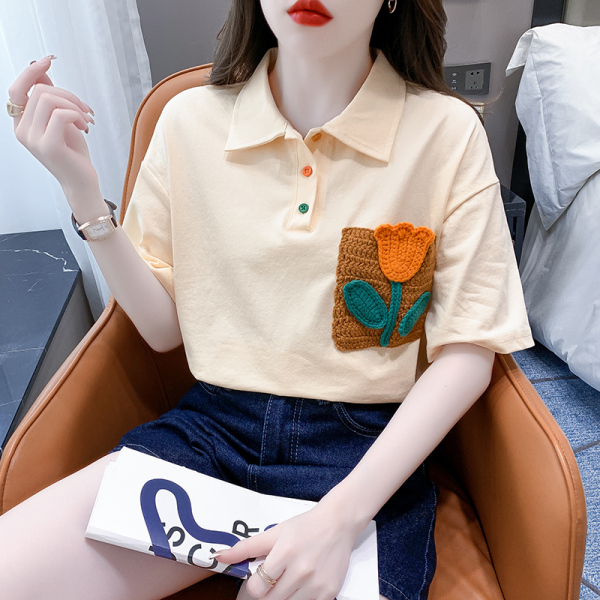 RM5700#新款休闲套头夏季甜美标准POLO领落肩袖女上衣