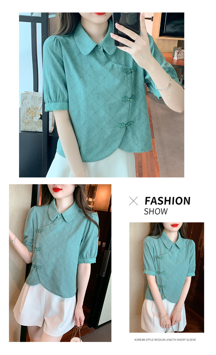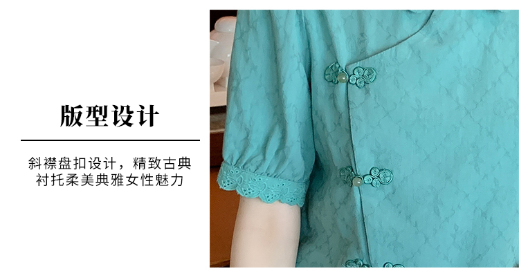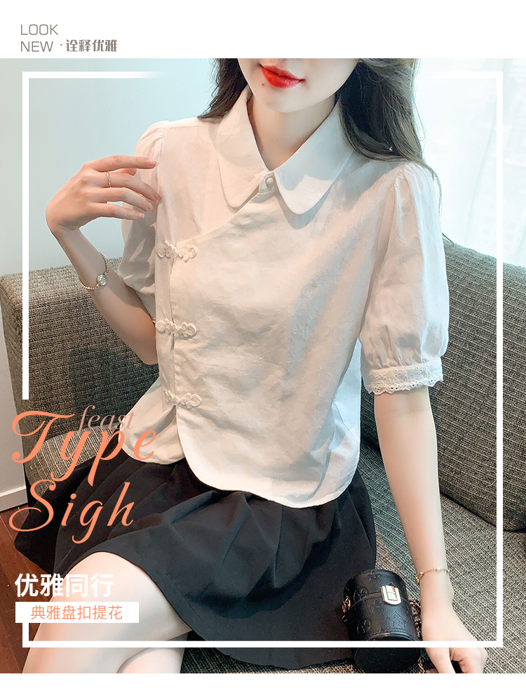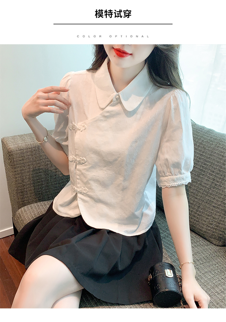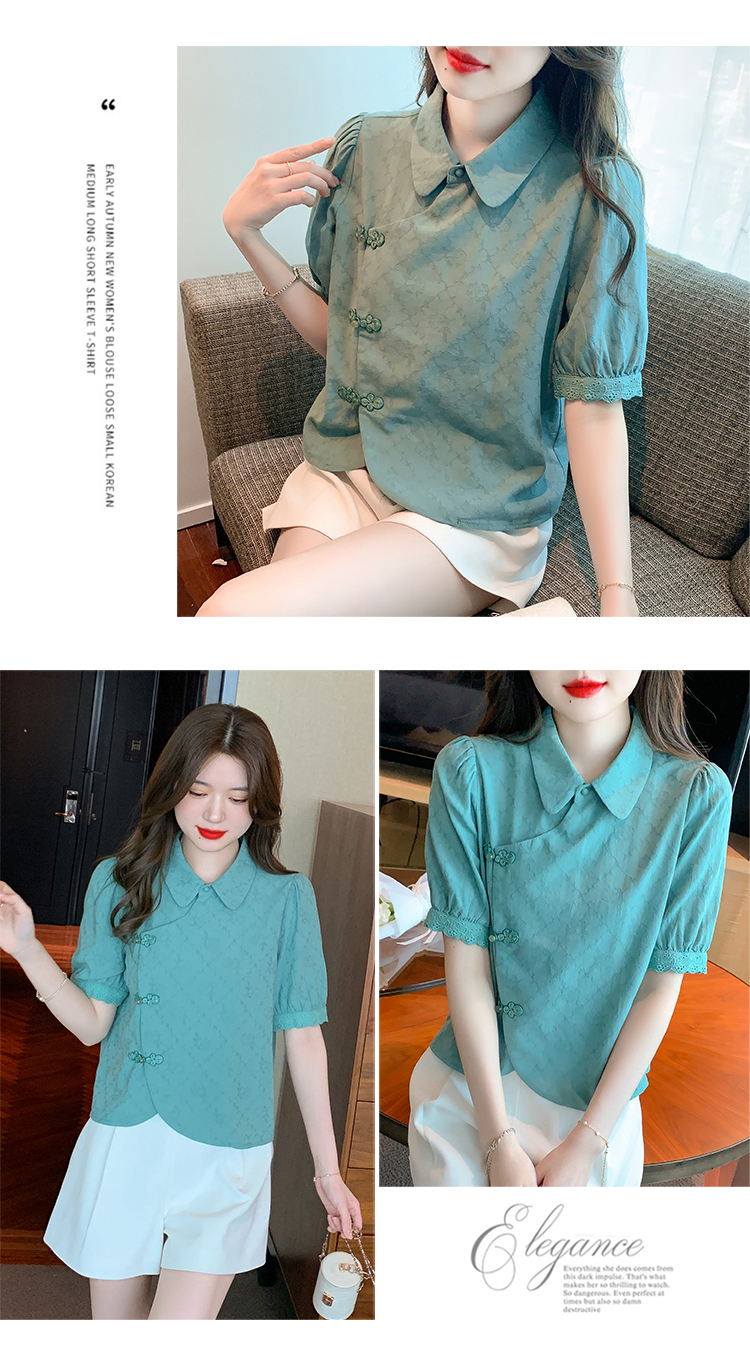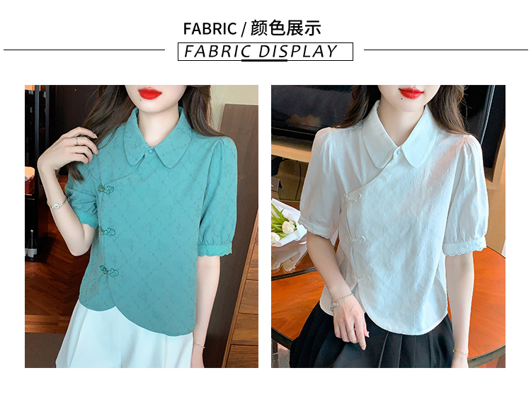 RM5701#蕾丝衫/雪纺衫娃娃领简约提花暗纹国风女气质上衣