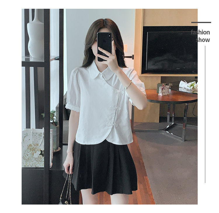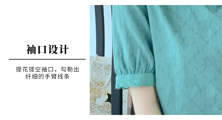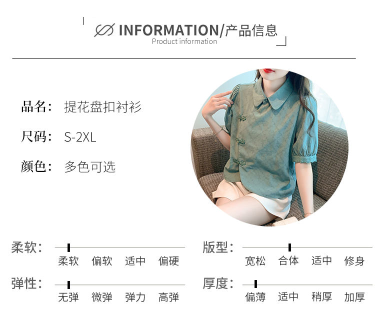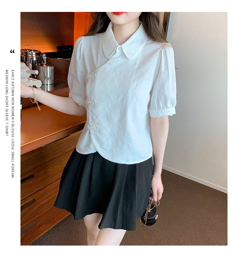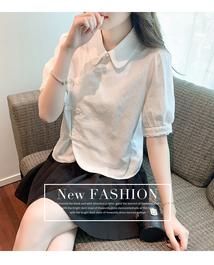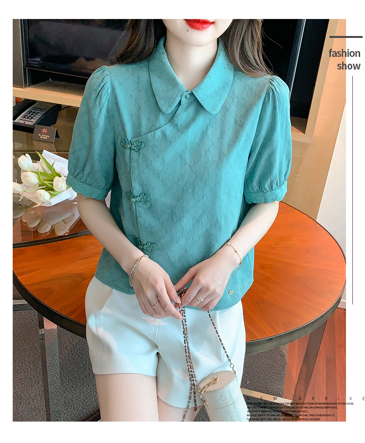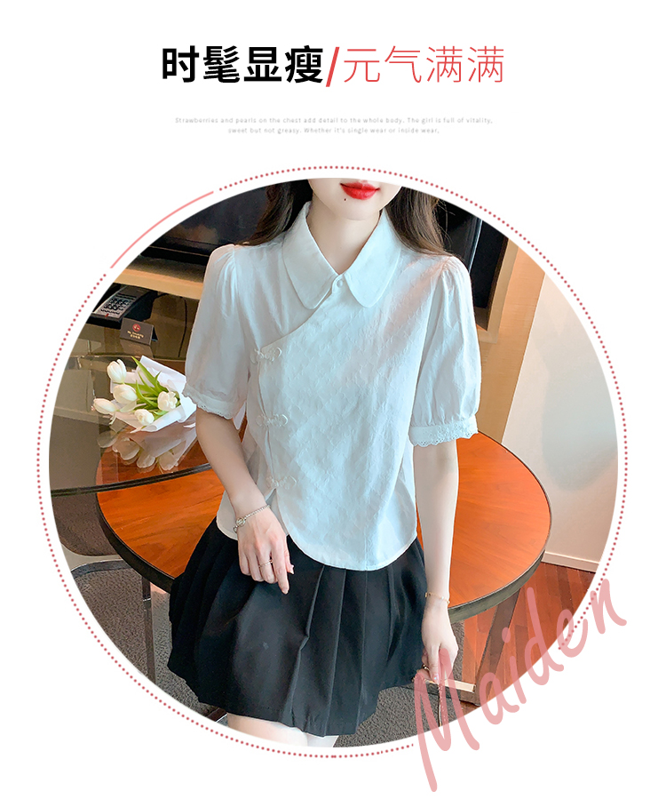 RM5701#蕾丝衫/雪纺衫娃娃领简约提花暗纹国风女气质上衣