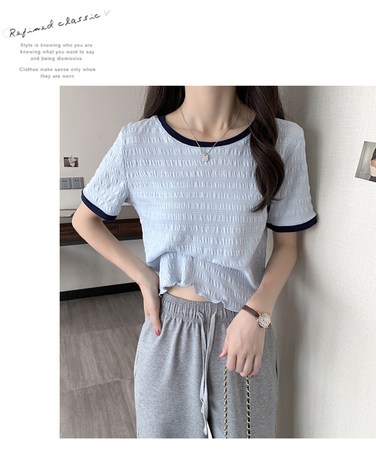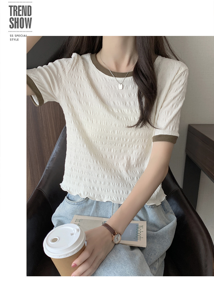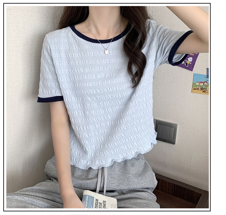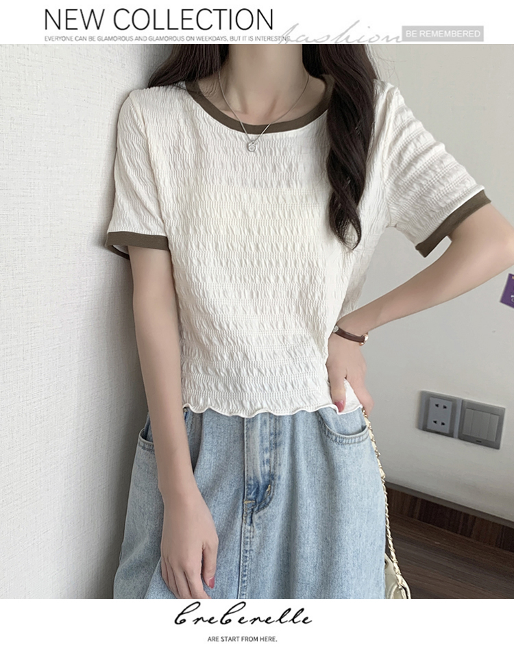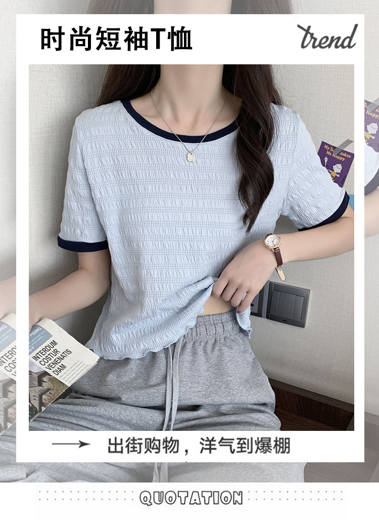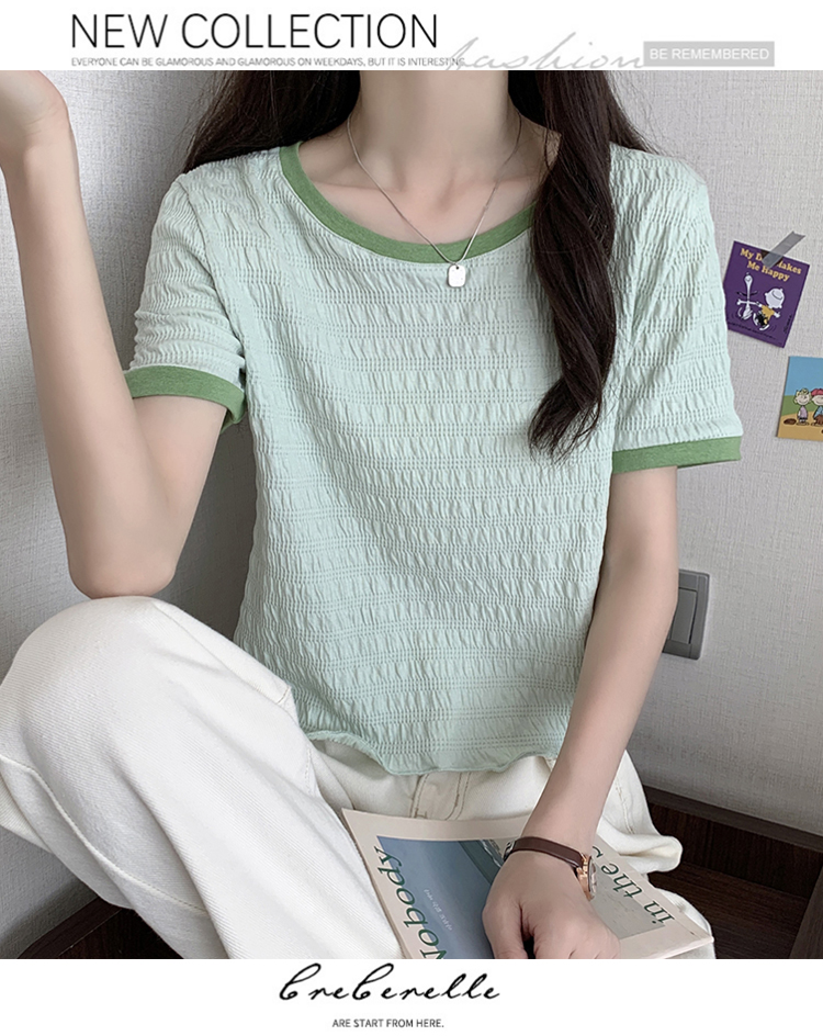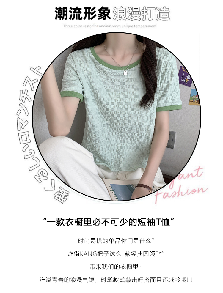 RM5717#新款短袖t恤女韩版百搭拼接圆领上衣女学生ins半袖体恤打底潮