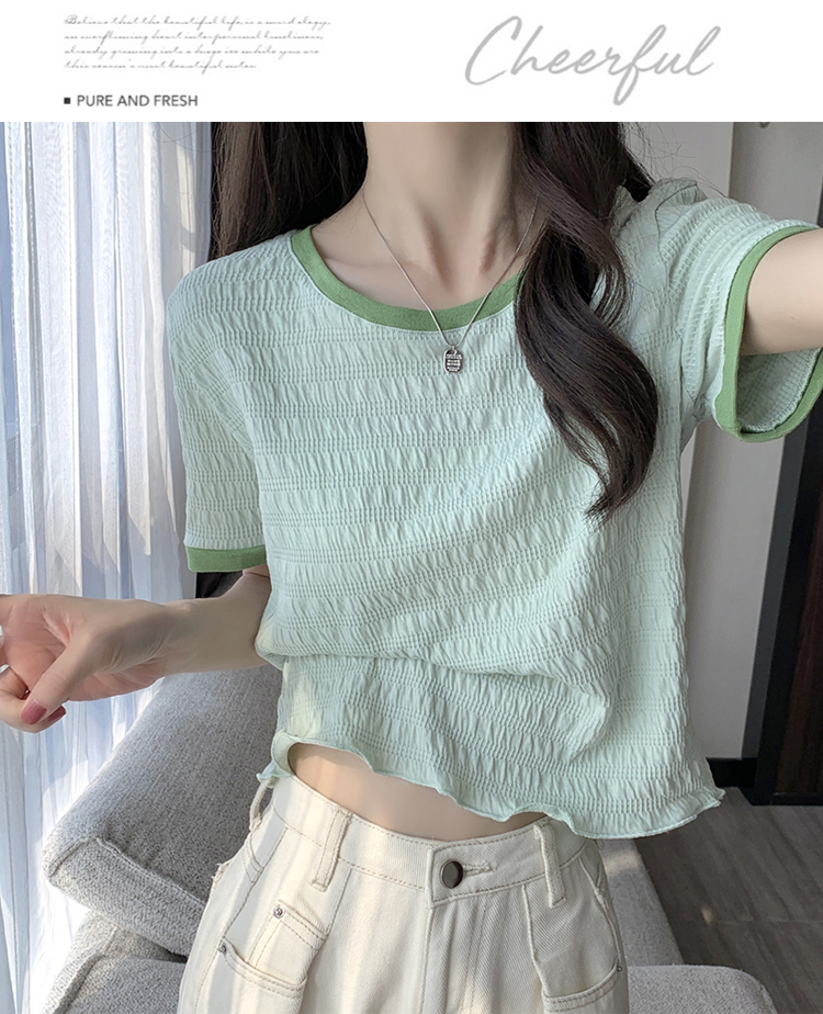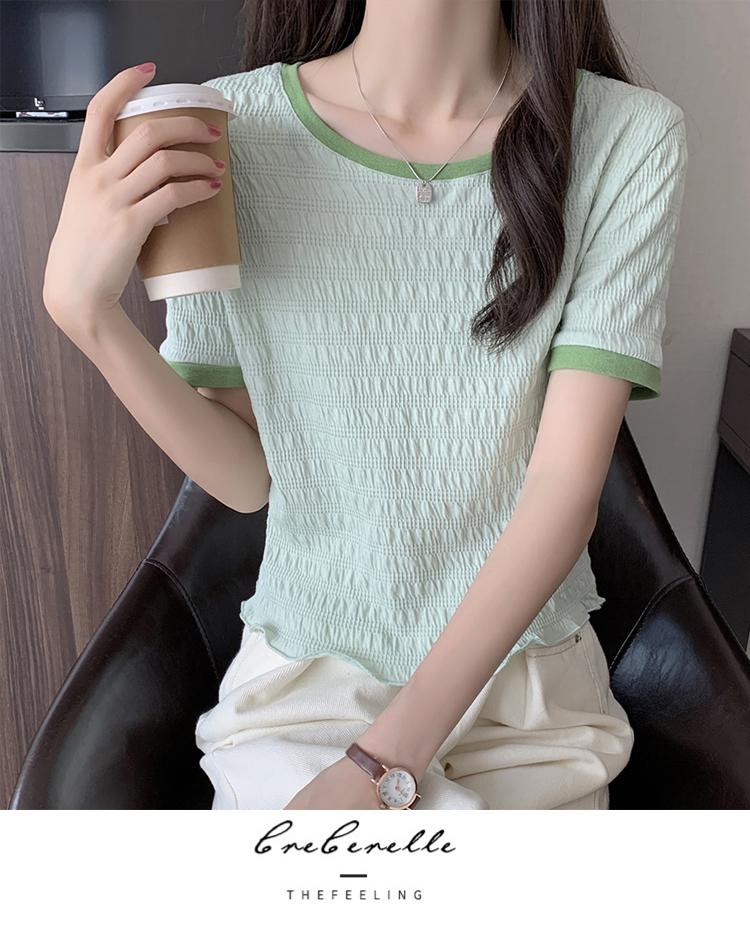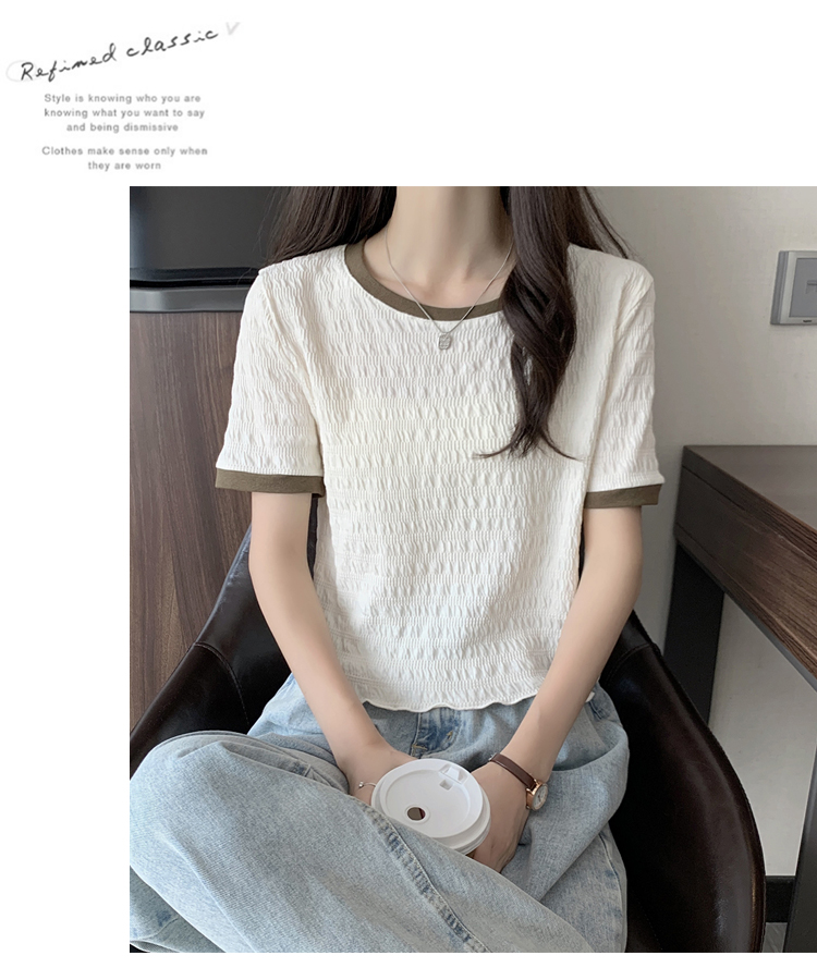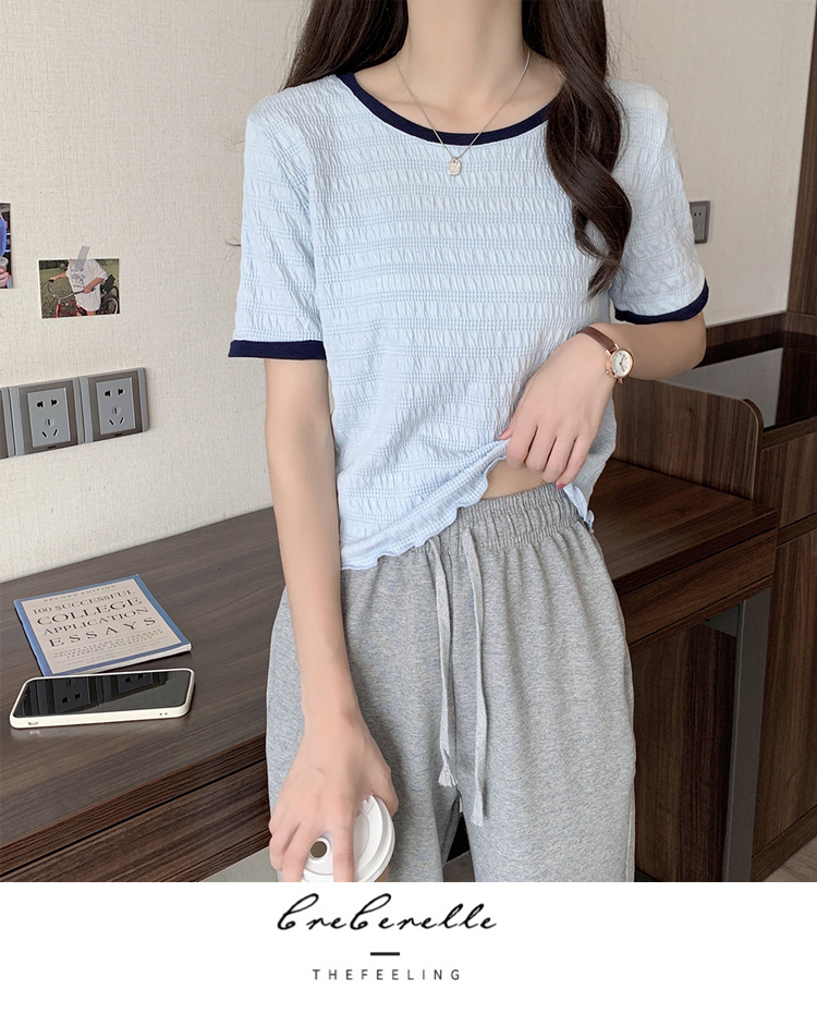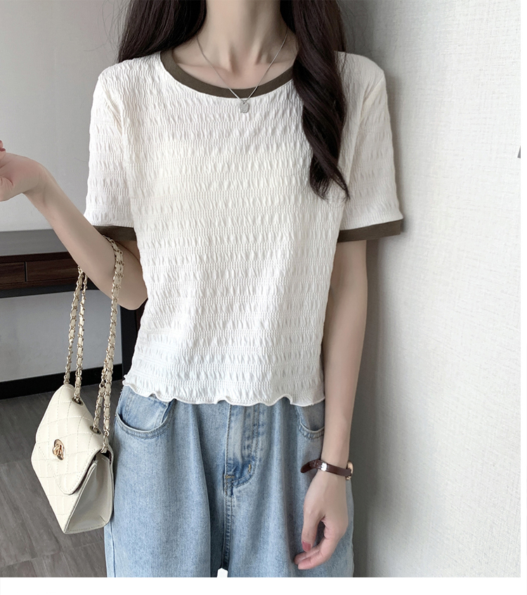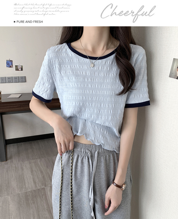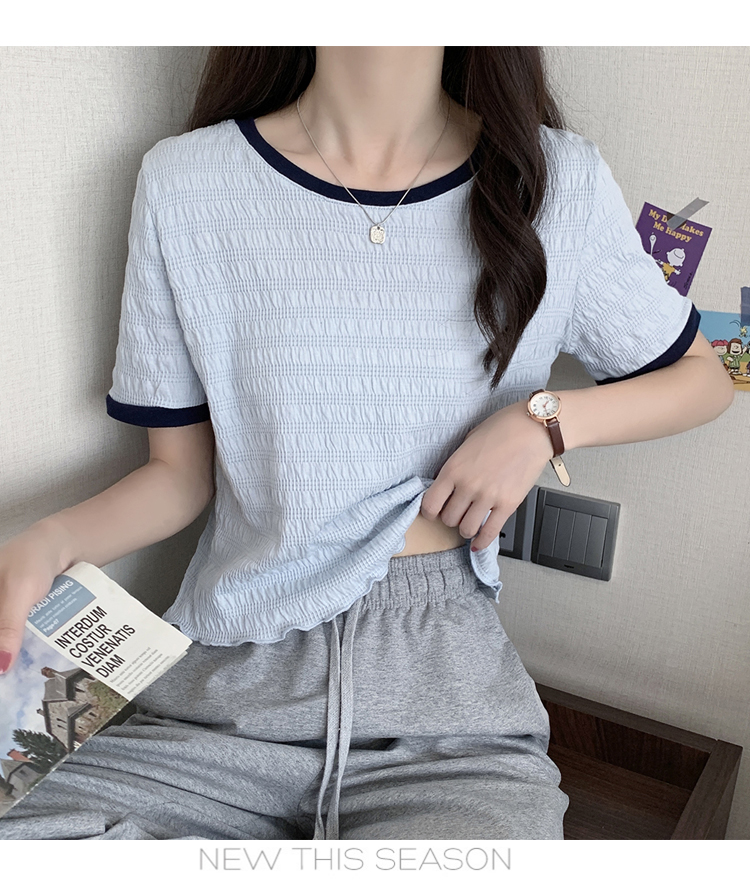 RM5717#新款短袖t恤女韩版百搭拼接圆领上衣女学生ins半袖体恤打底潮