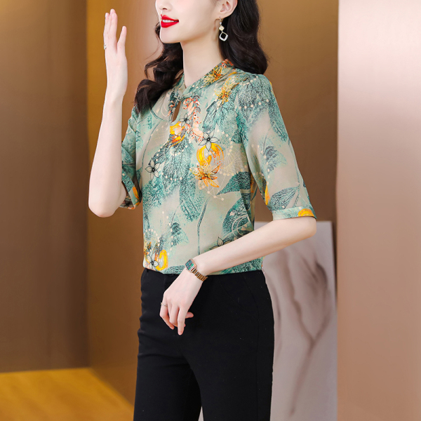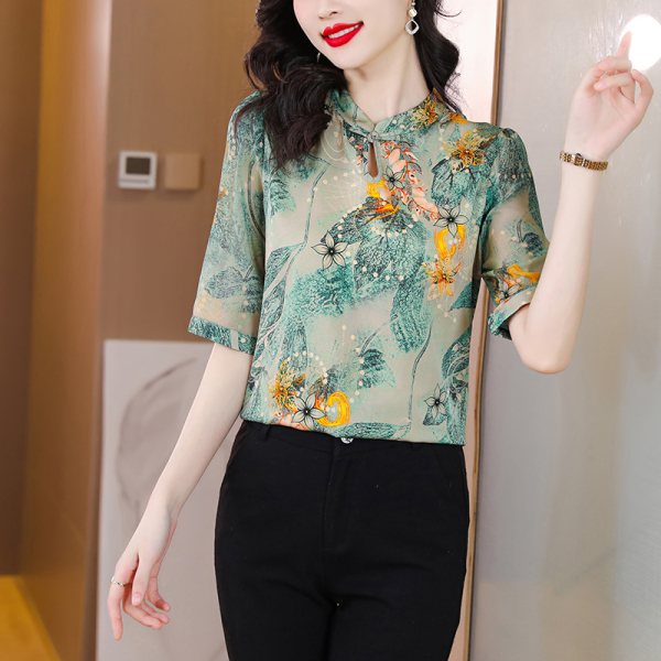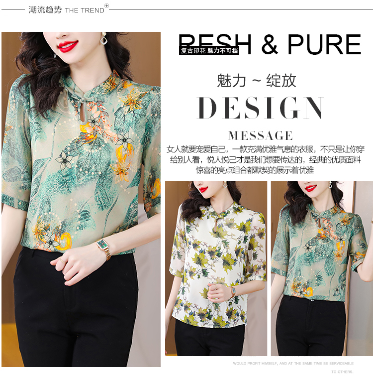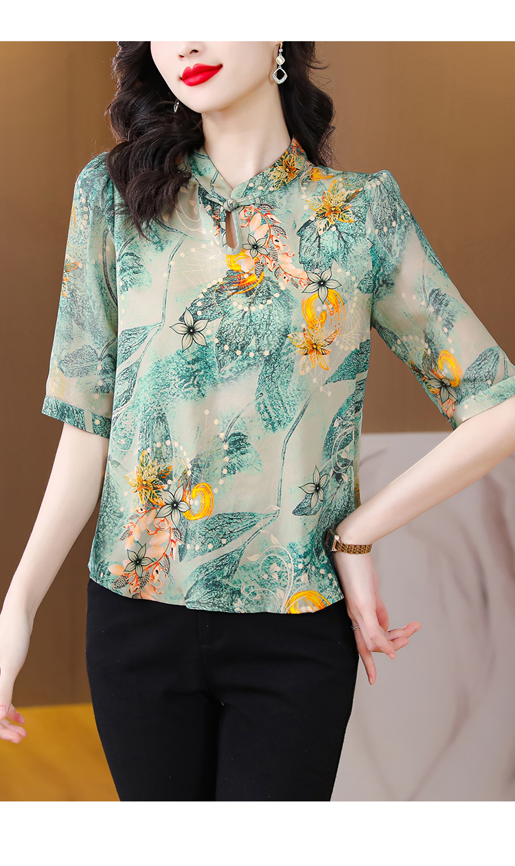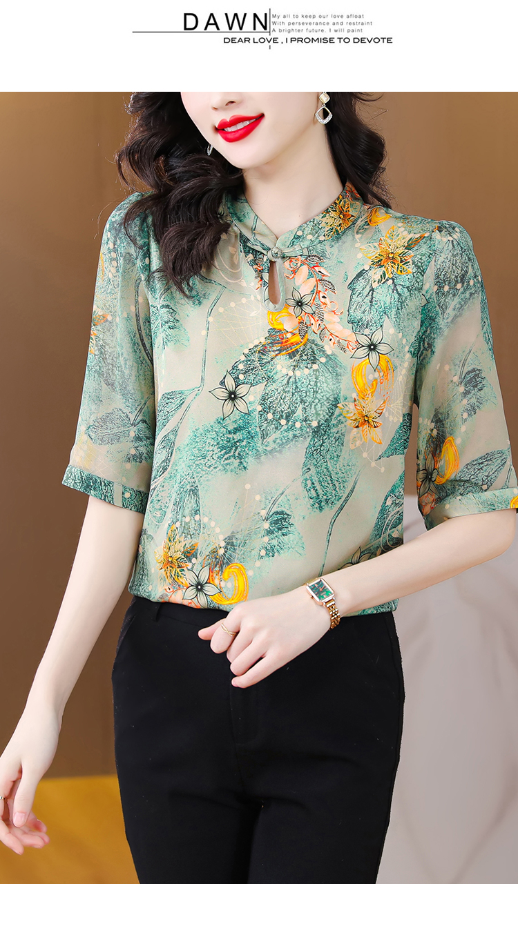 RM5800#杭州真丝小衫t恤女衬衣重磅桑蚕丝衬衫盘扣中国风高级感短袖上衣