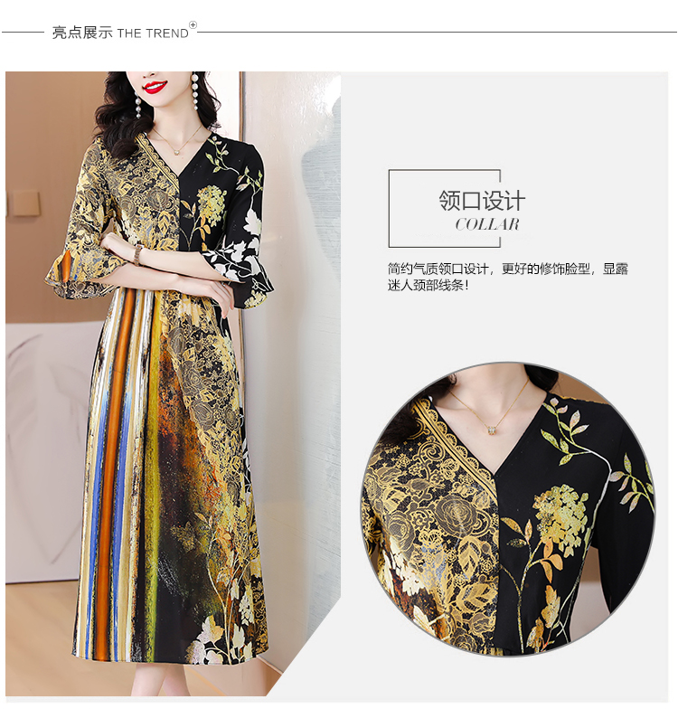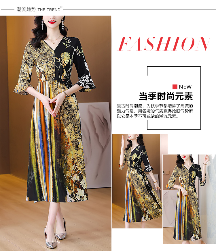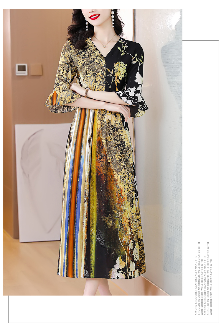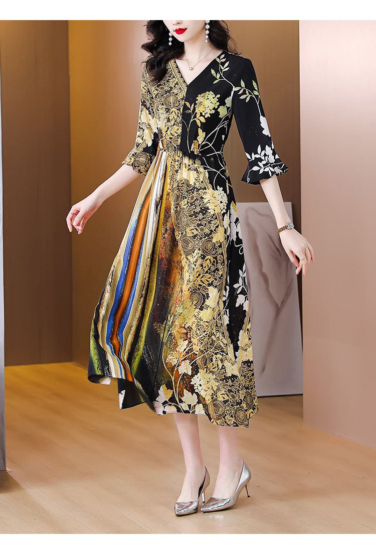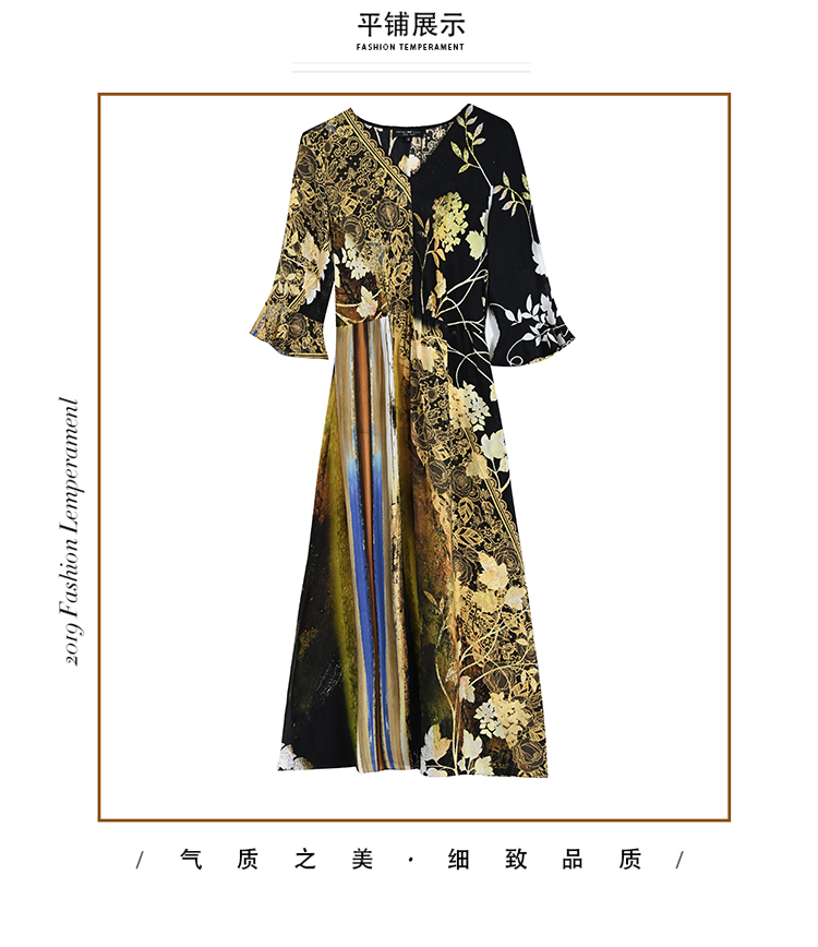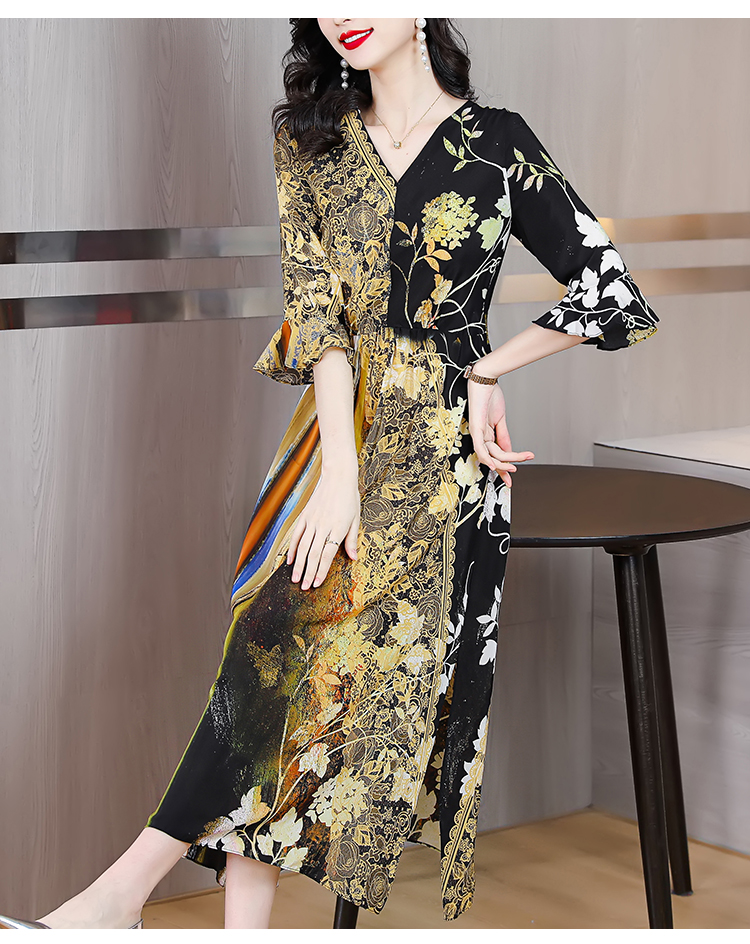 RM5808#新款夏季时尚撞色拼接印花真丝长裙大牌高档桑蚕丝连衣裙女