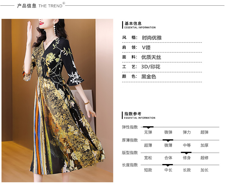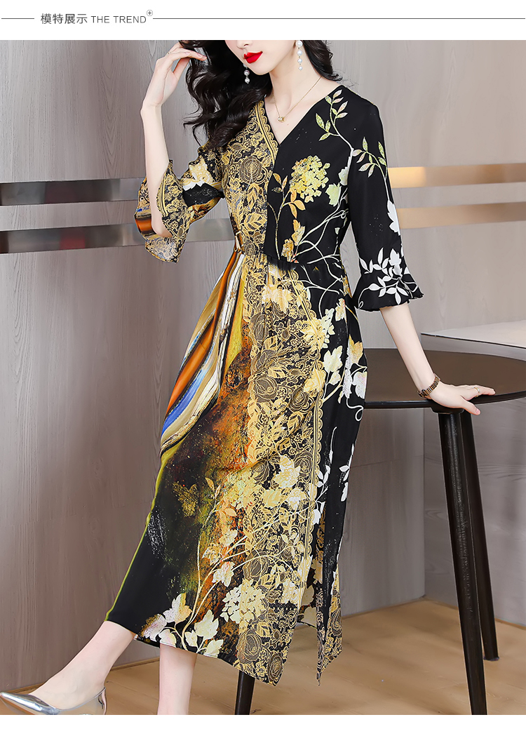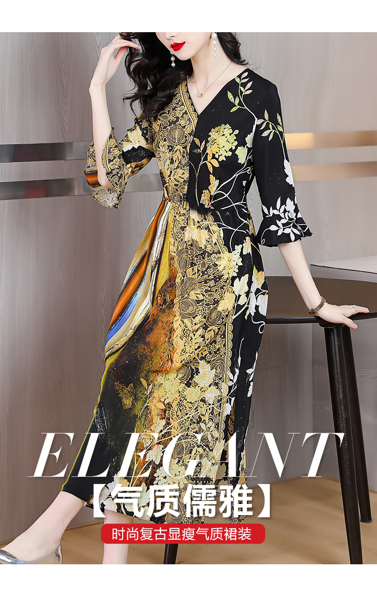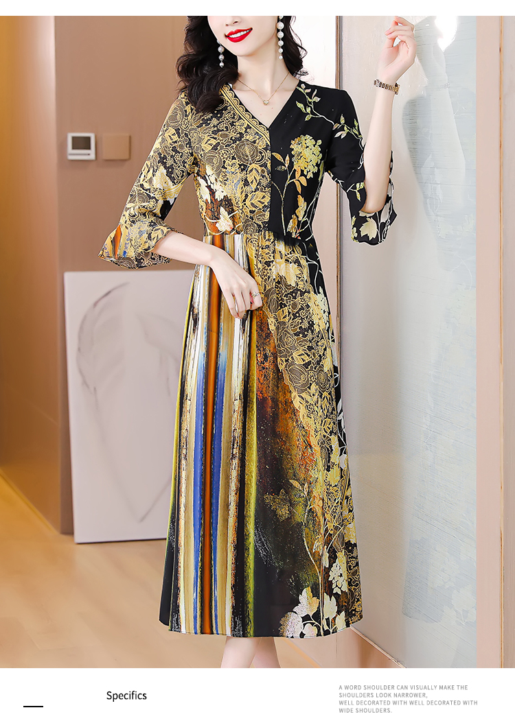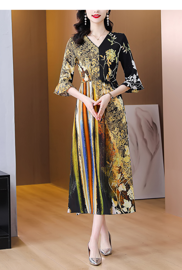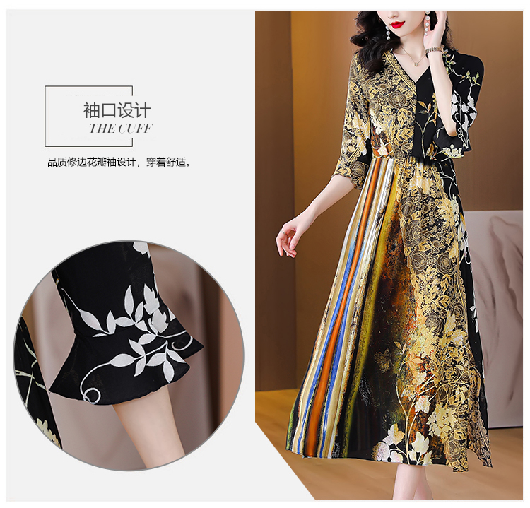 RM5808#新款夏季时尚撞色拼接印花真丝长裙大牌高档桑蚕丝连衣裙女