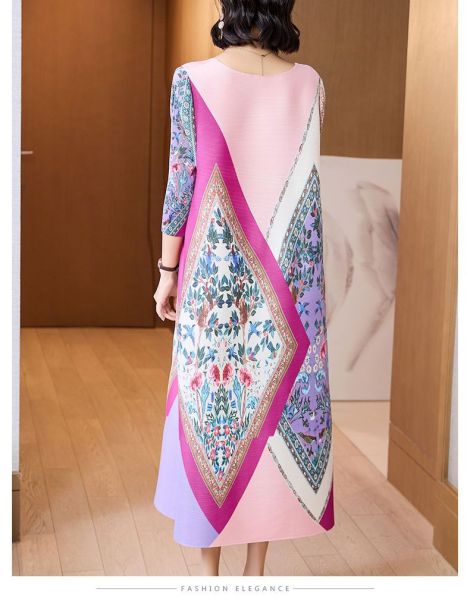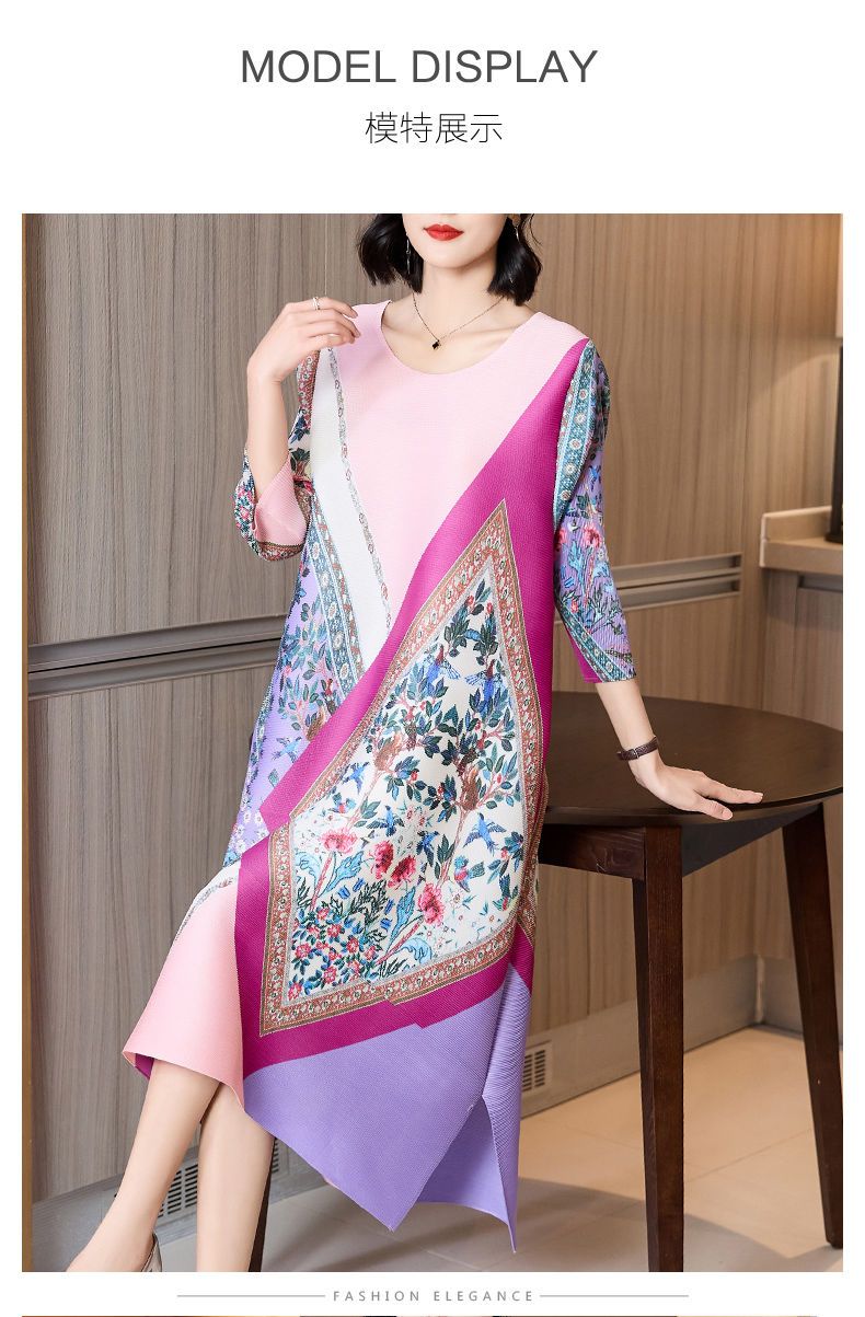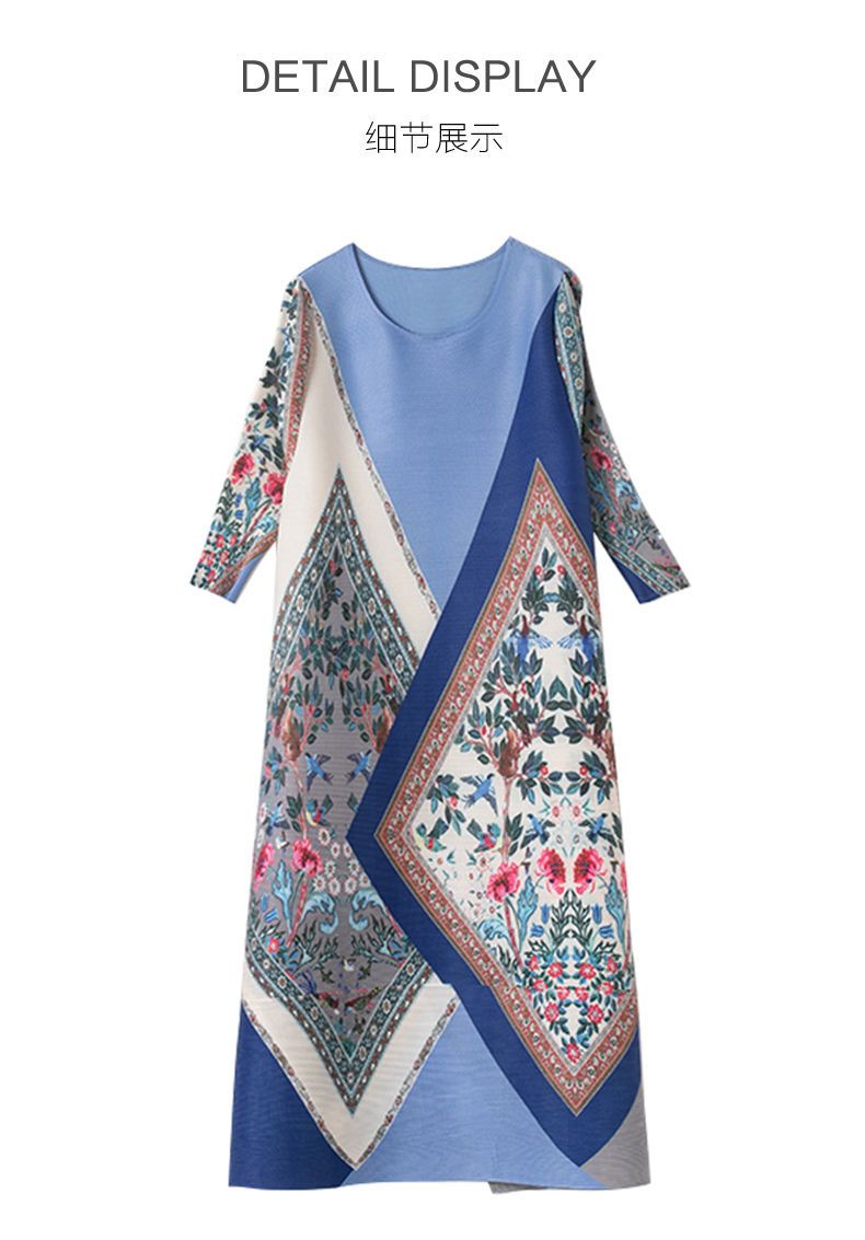 RM5817#连衣裙2023早春新款印花宽松大码女装长袖高领民族风裙子