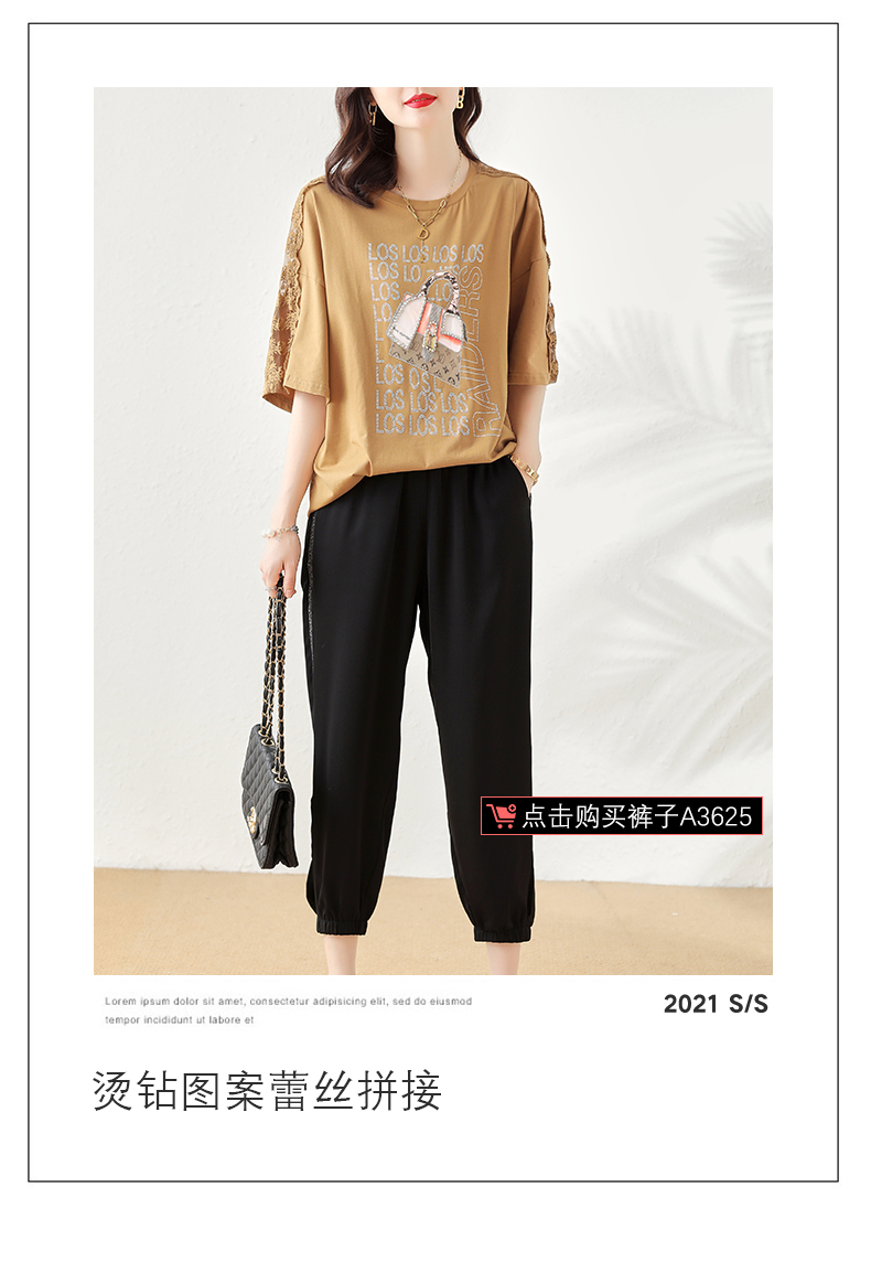 RM6699#网纱刺绣拼接短袖咖色t恤女夏装2023新款欧洲站宽松大码欧货上衣