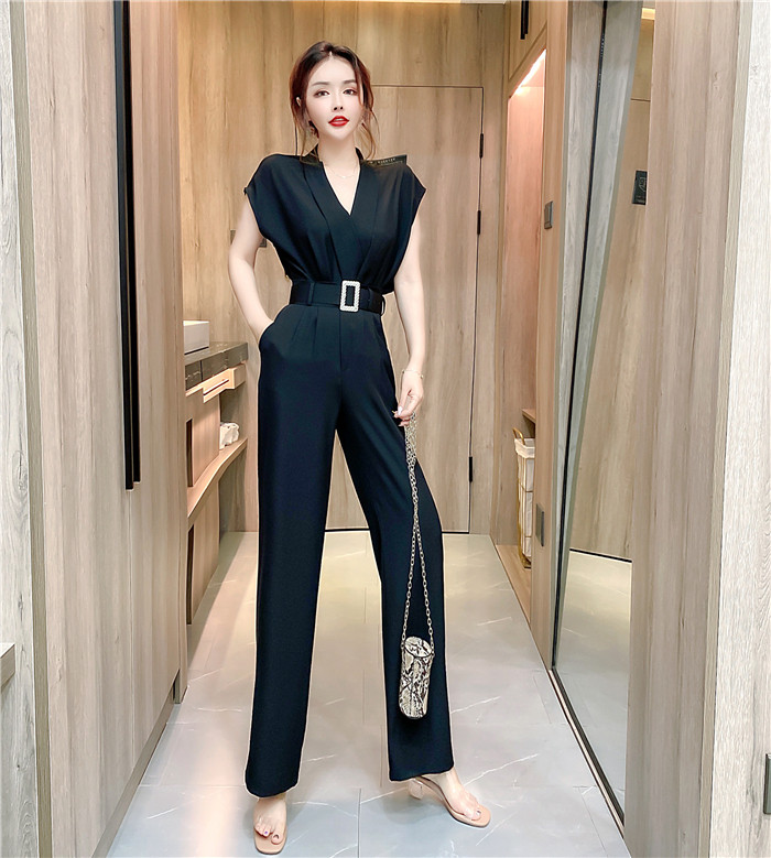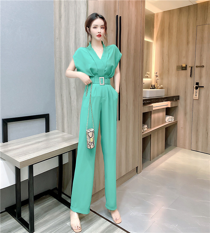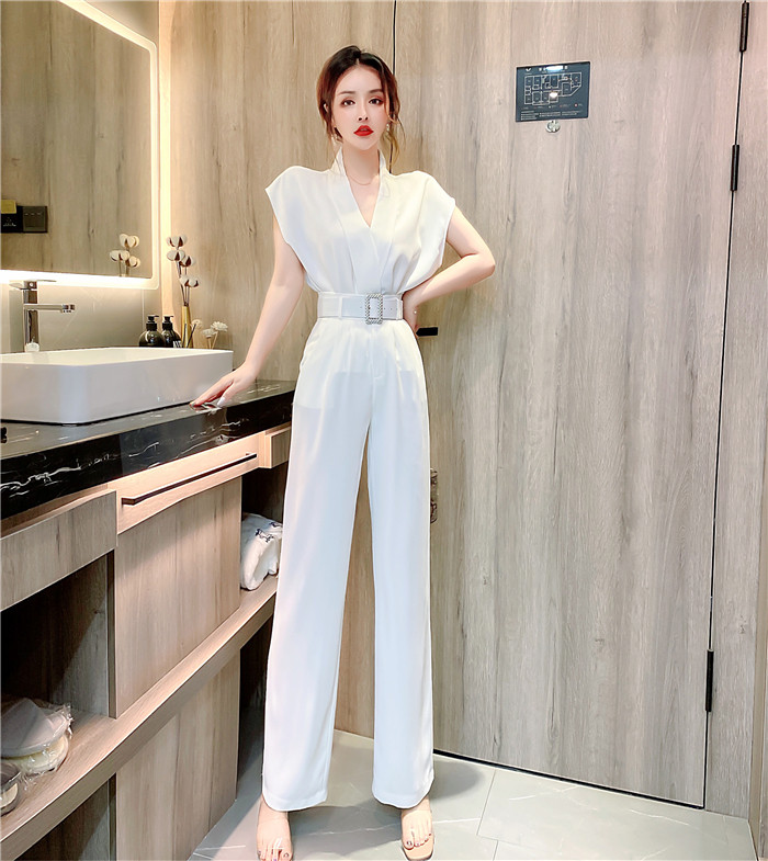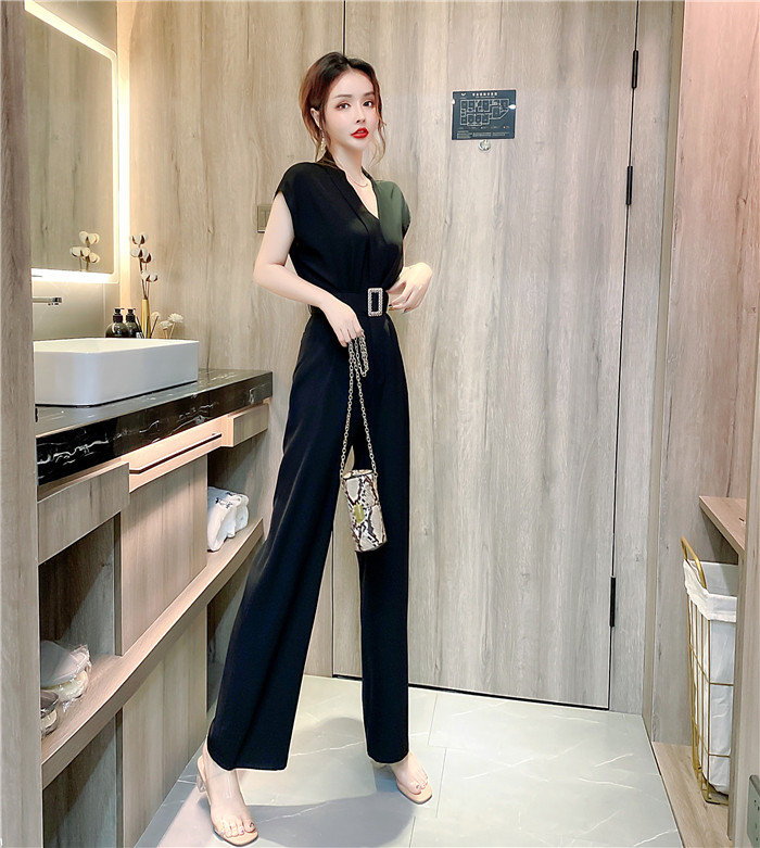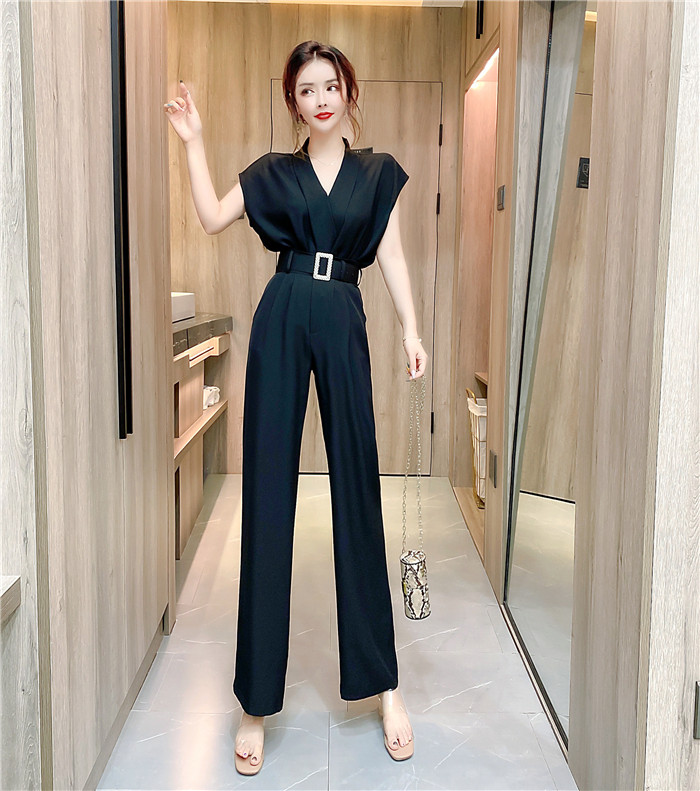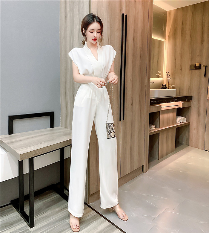 PF11473#夏时髦洋气网红减龄v领无袖上衣显瘦长裤套装两件套女裝貨源服裝批發
