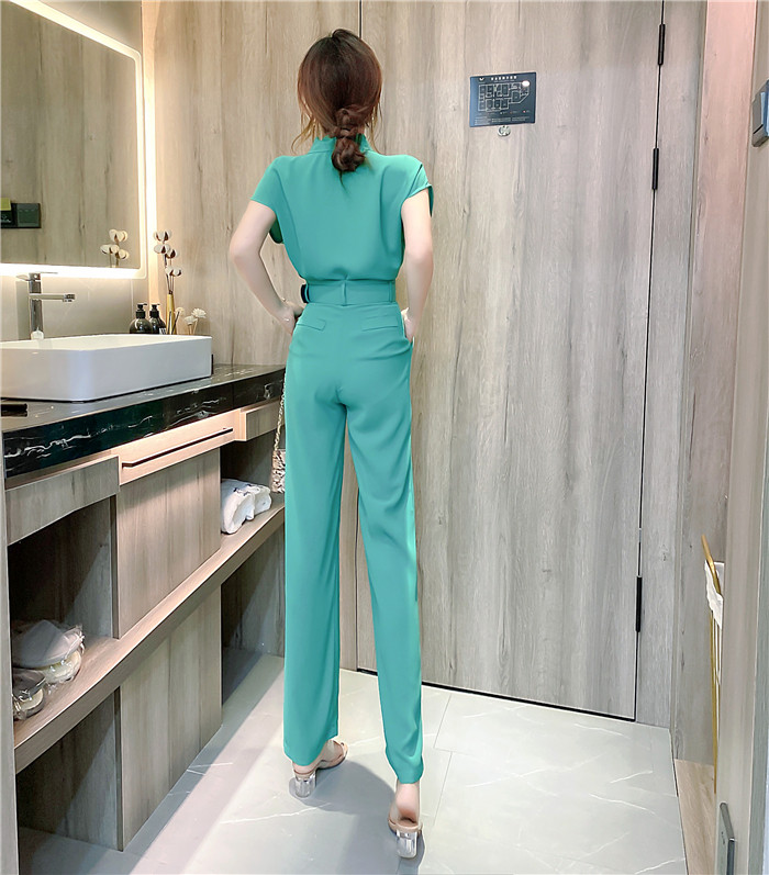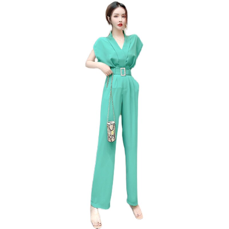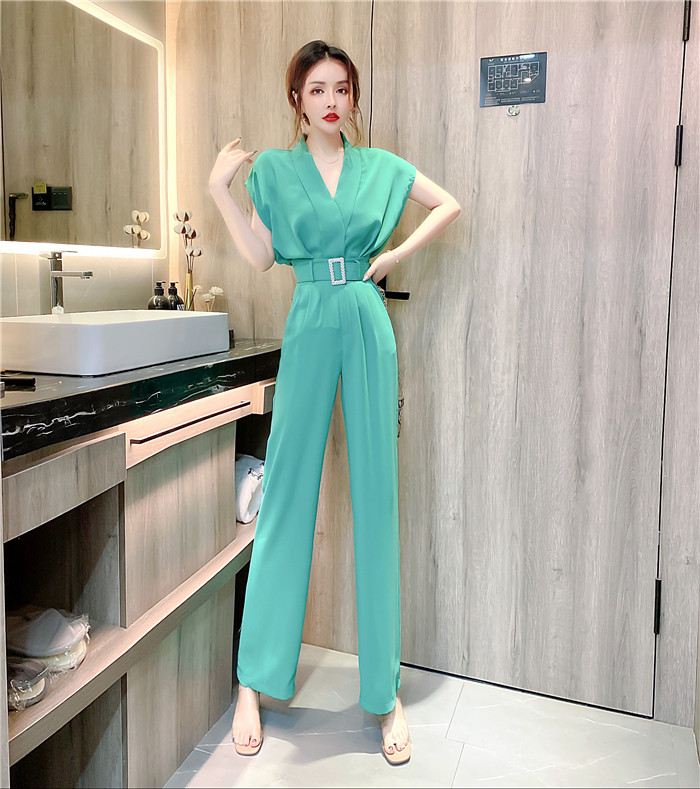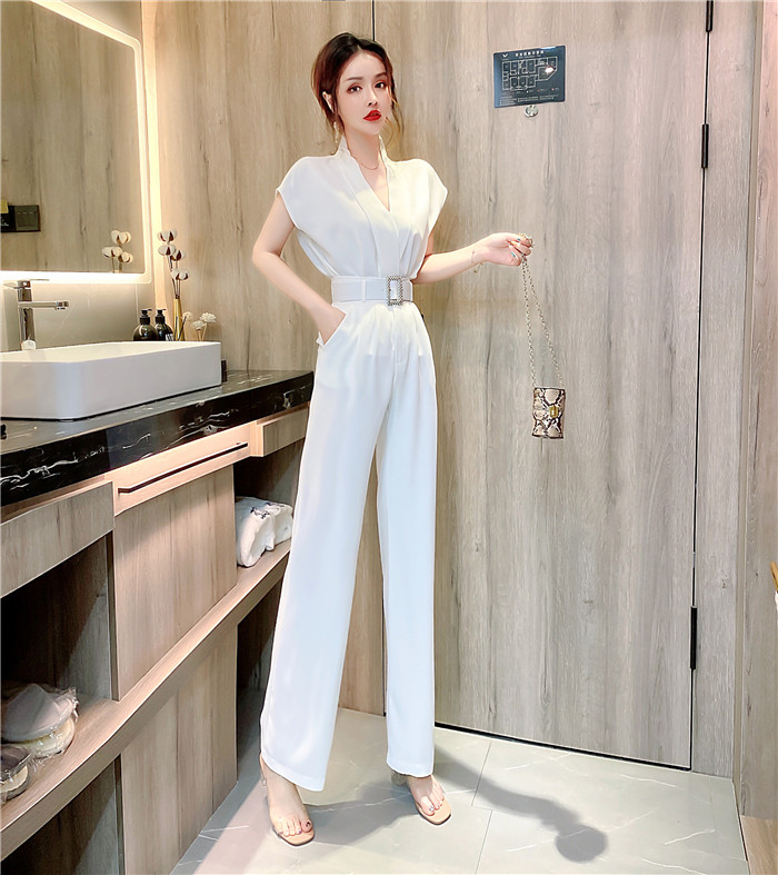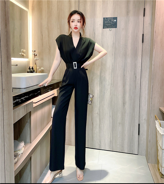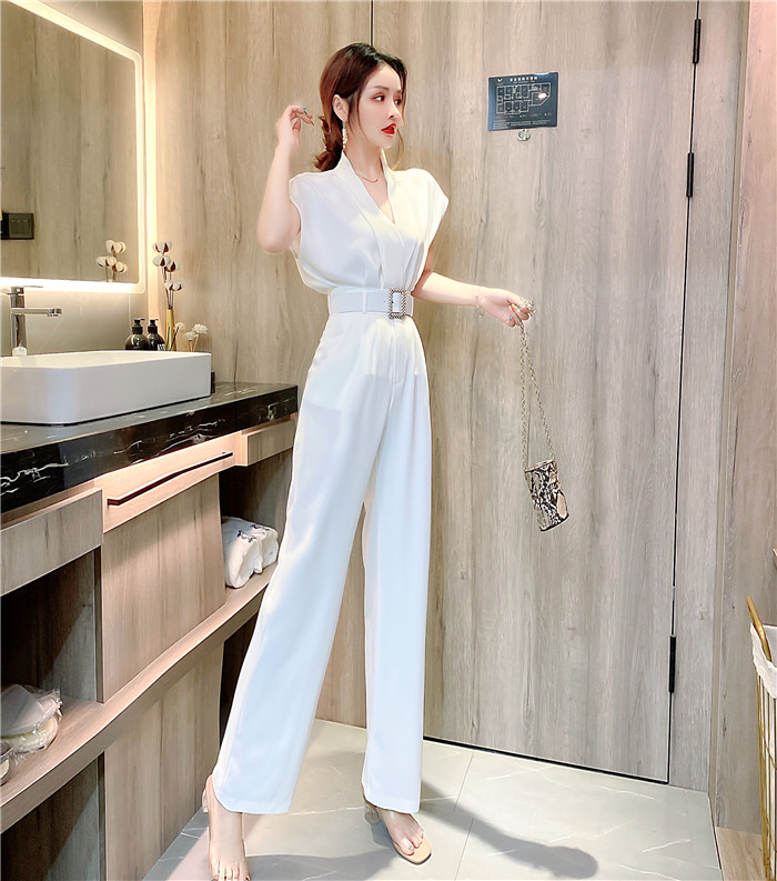 PF11473#夏时髦洋气网红减龄v领无袖上衣显瘦长裤套装两件套女裝貨源服裝批發