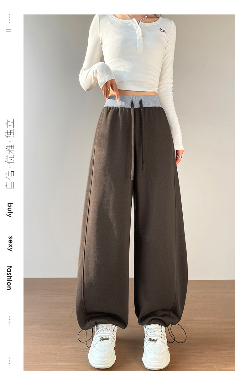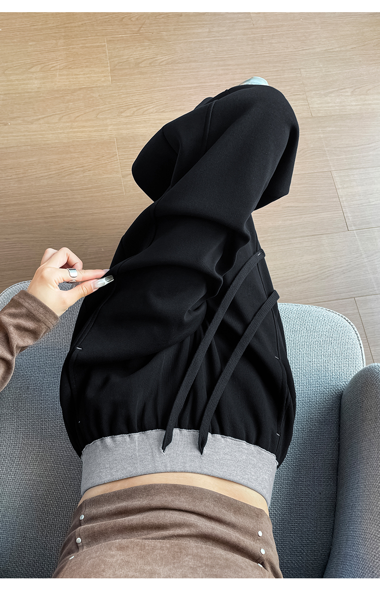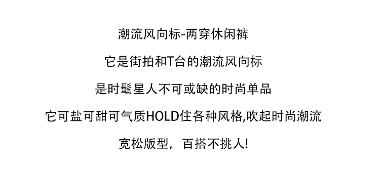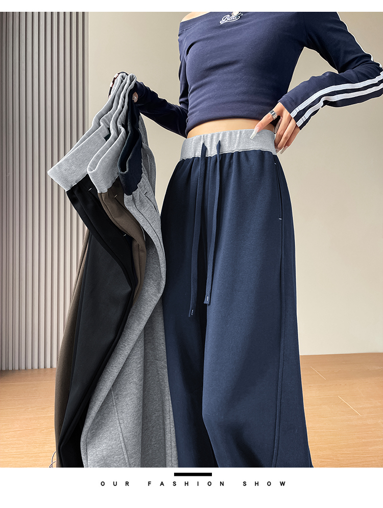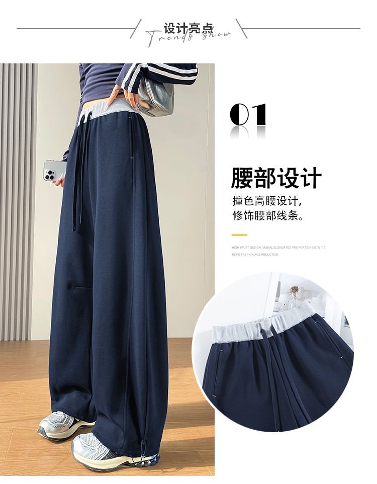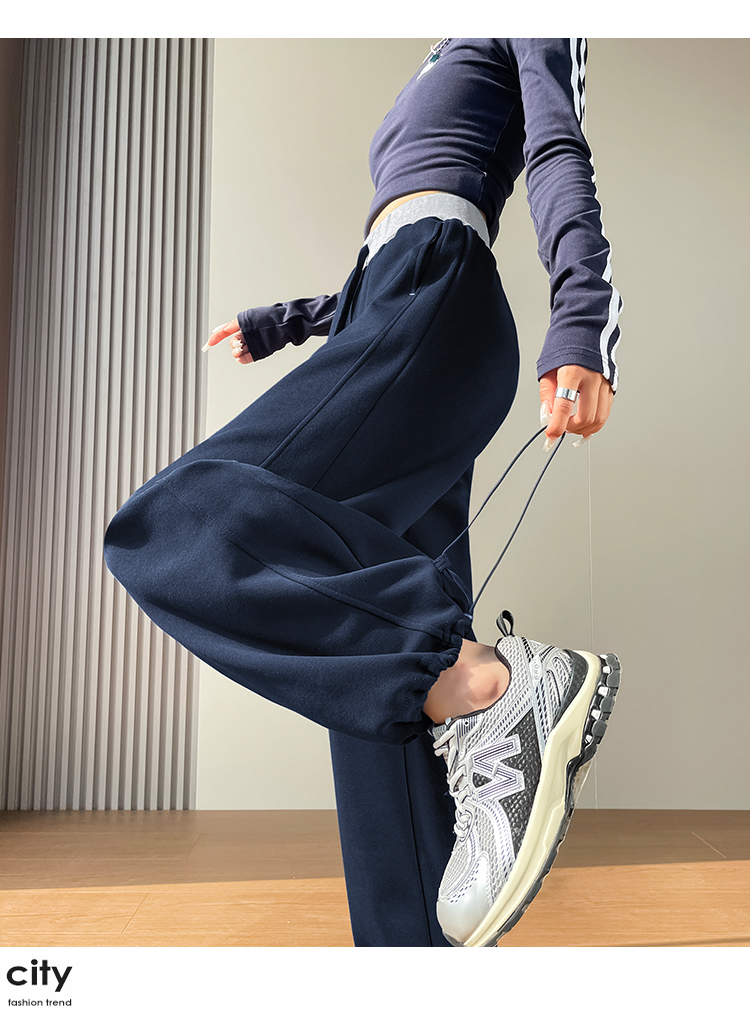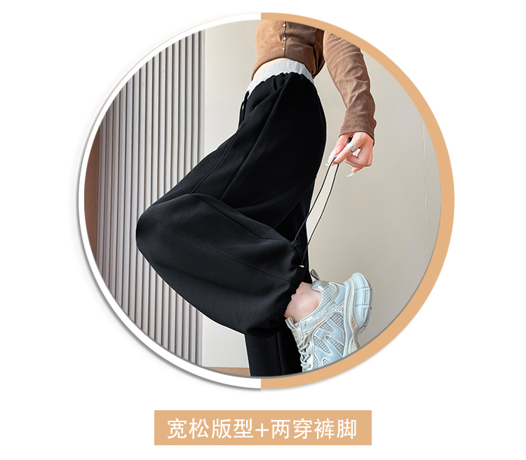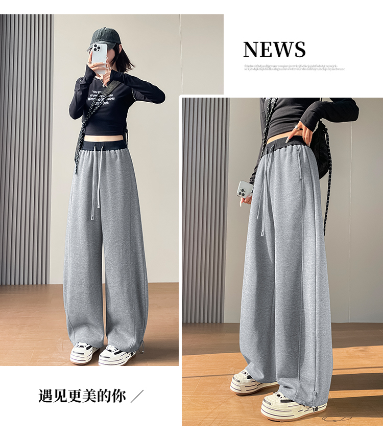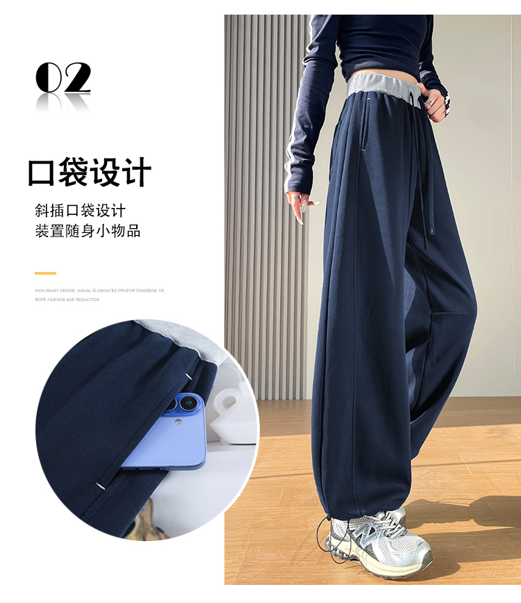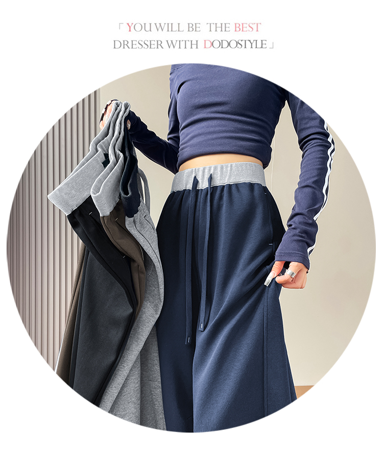 MY13603# 时尚高腰拼接阔腿束脚两穿弯刀裤百搭休闲运动卫裤女裝貨源服裝批發