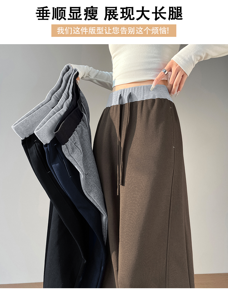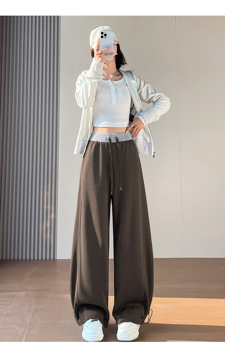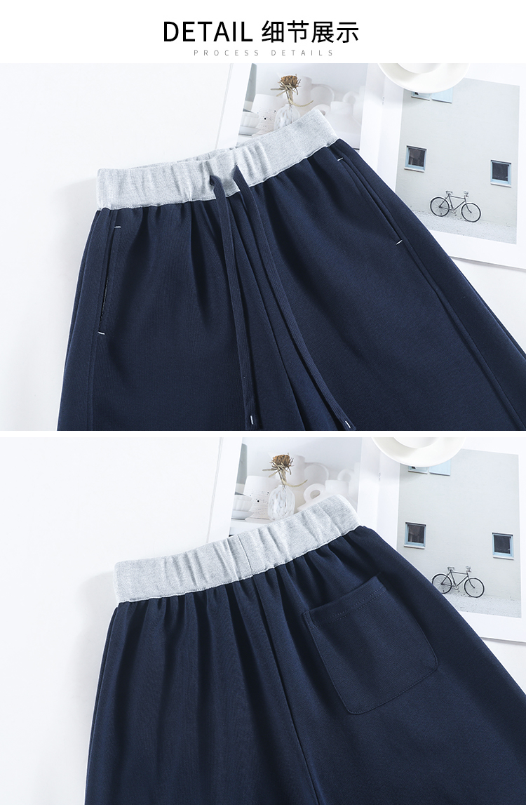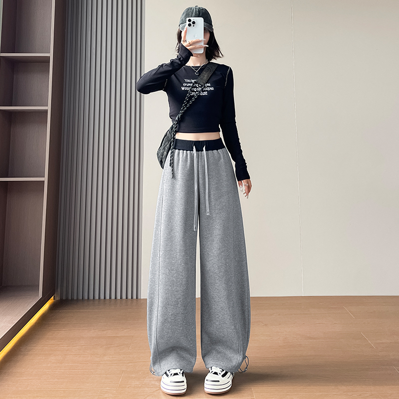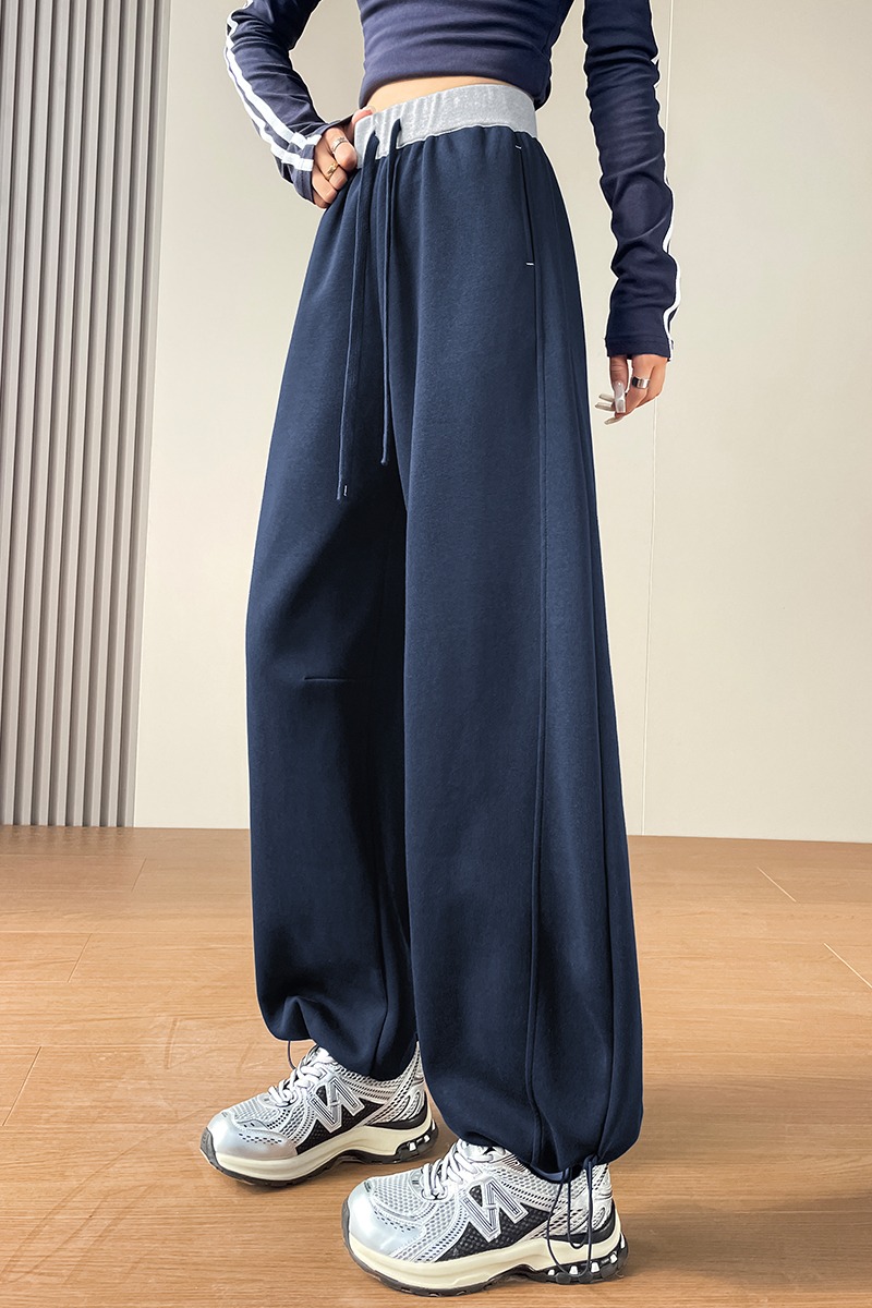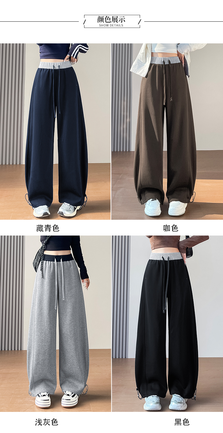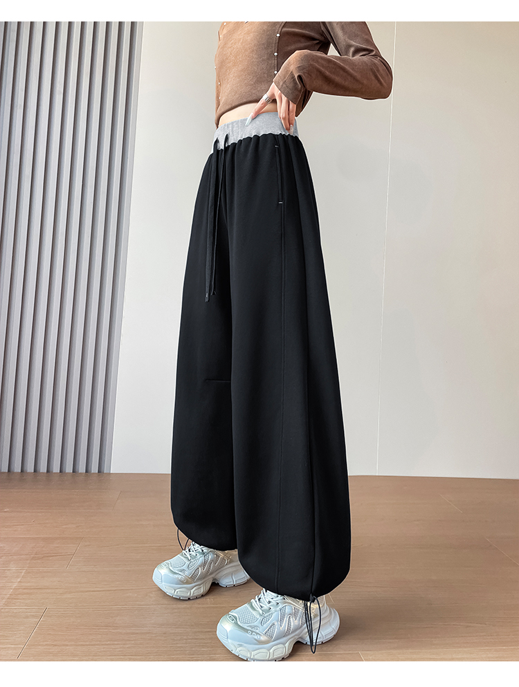 MY13603# 时尚高腰拼接阔腿束脚两穿弯刀裤百搭休闲运动卫裤女裝貨源服裝批發