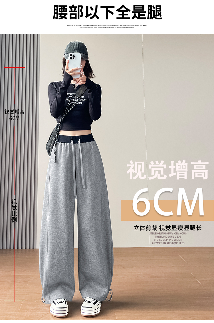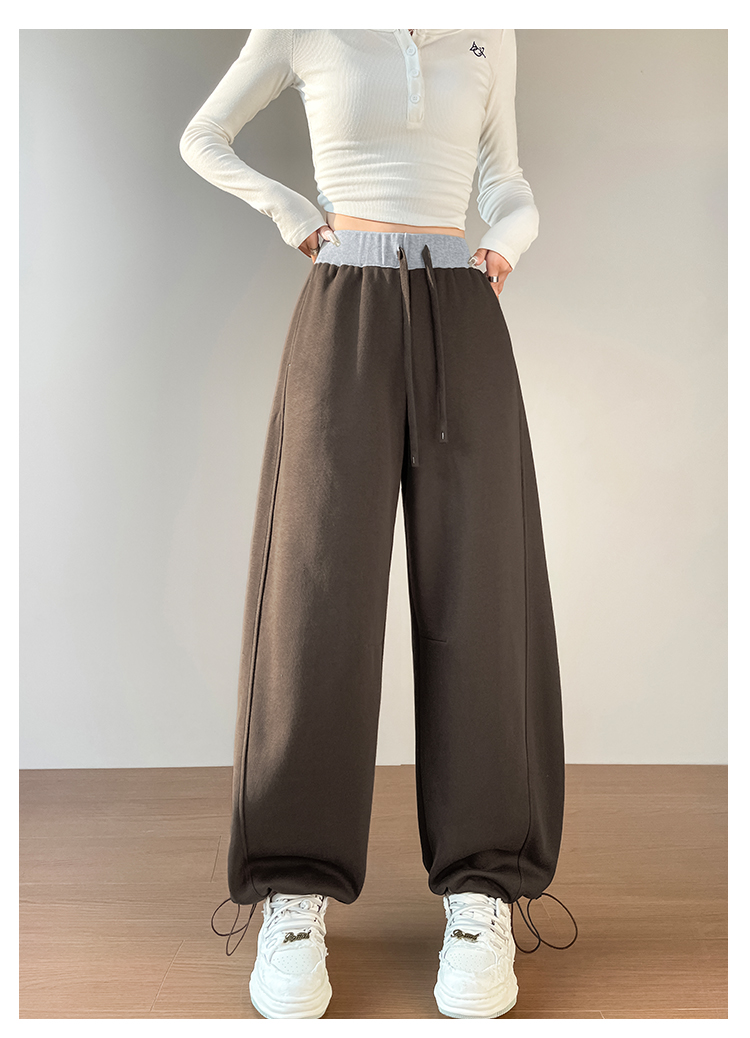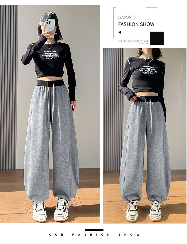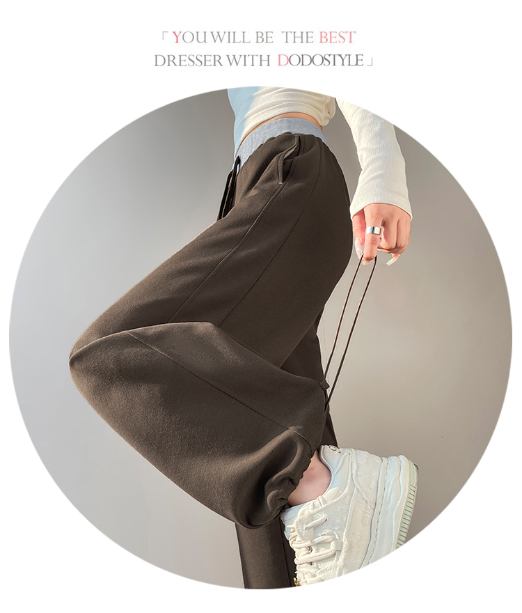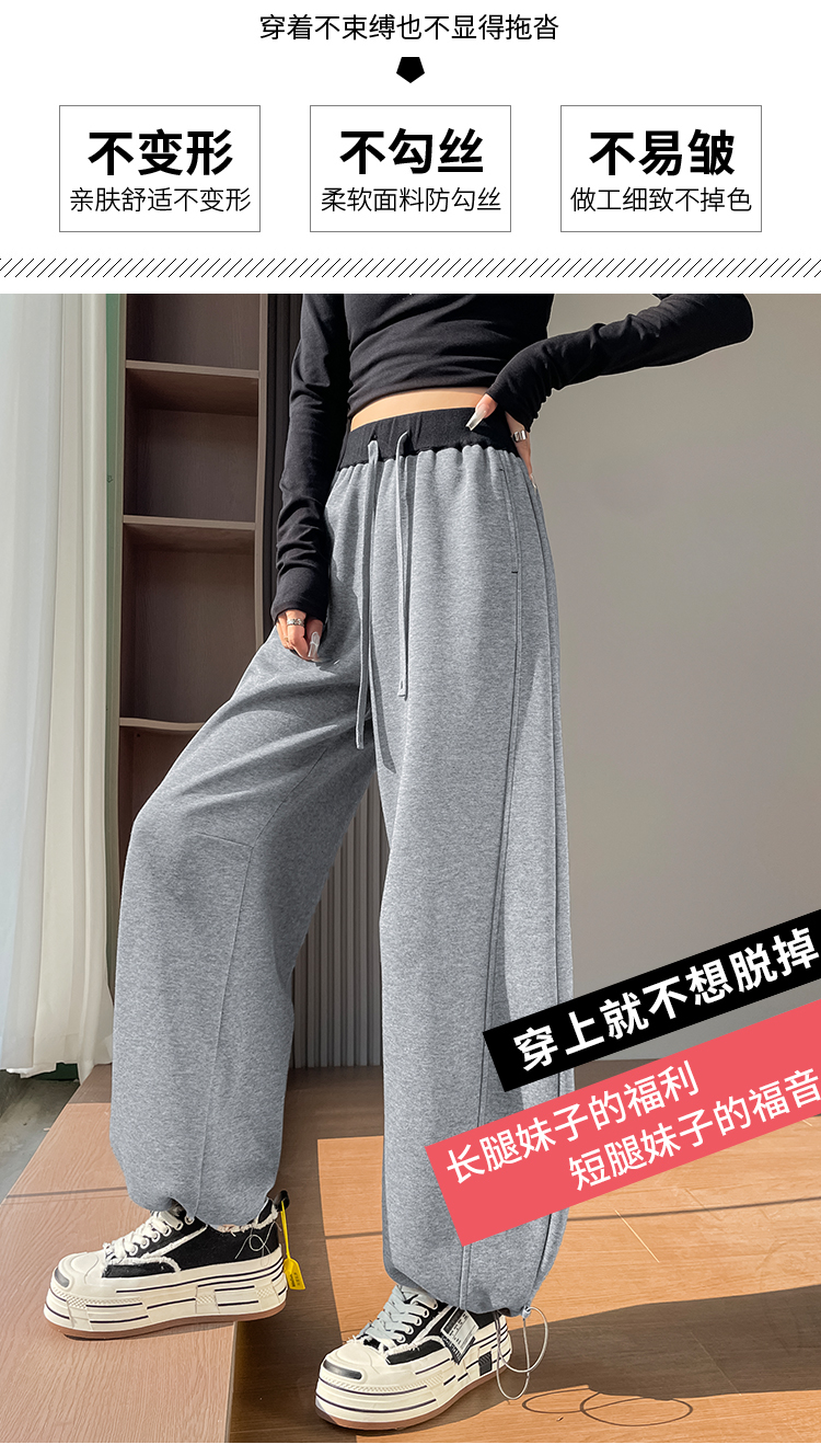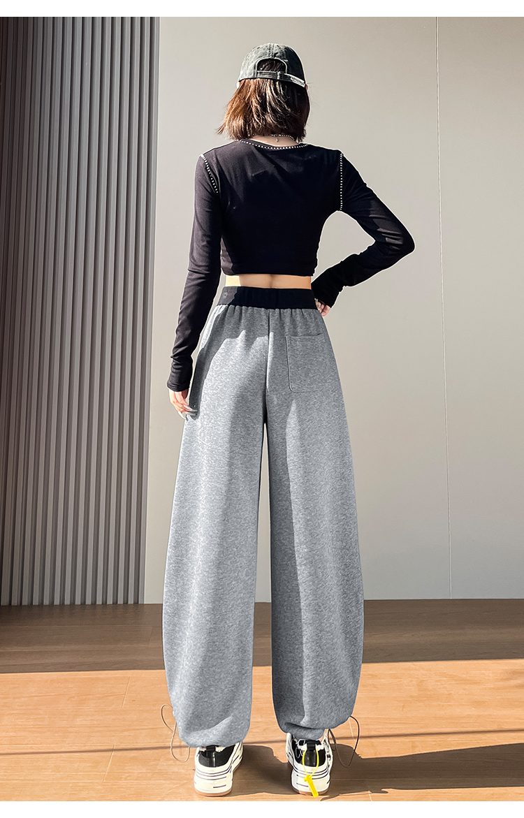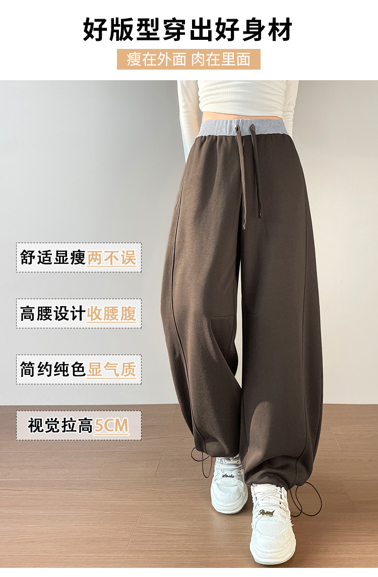 MY13603# 时尚高腰拼接阔腿束脚两穿弯刀裤百搭休闲运动卫裤女裝貨源服裝批發