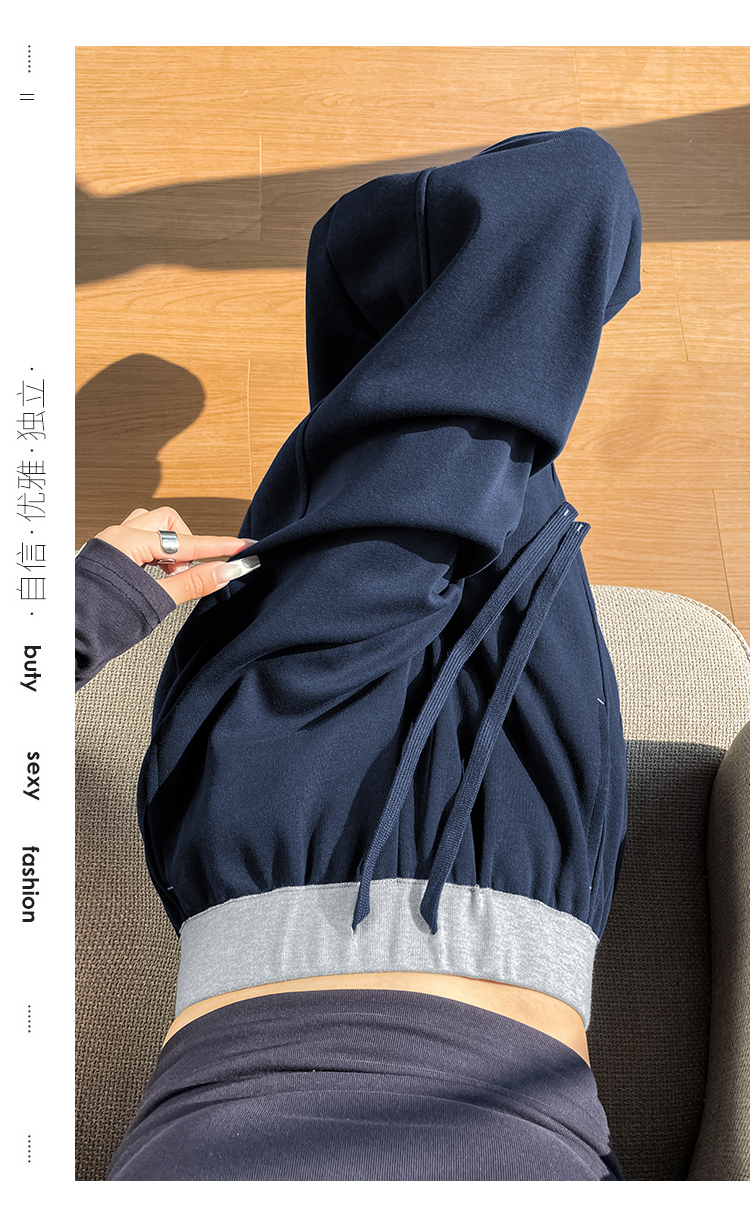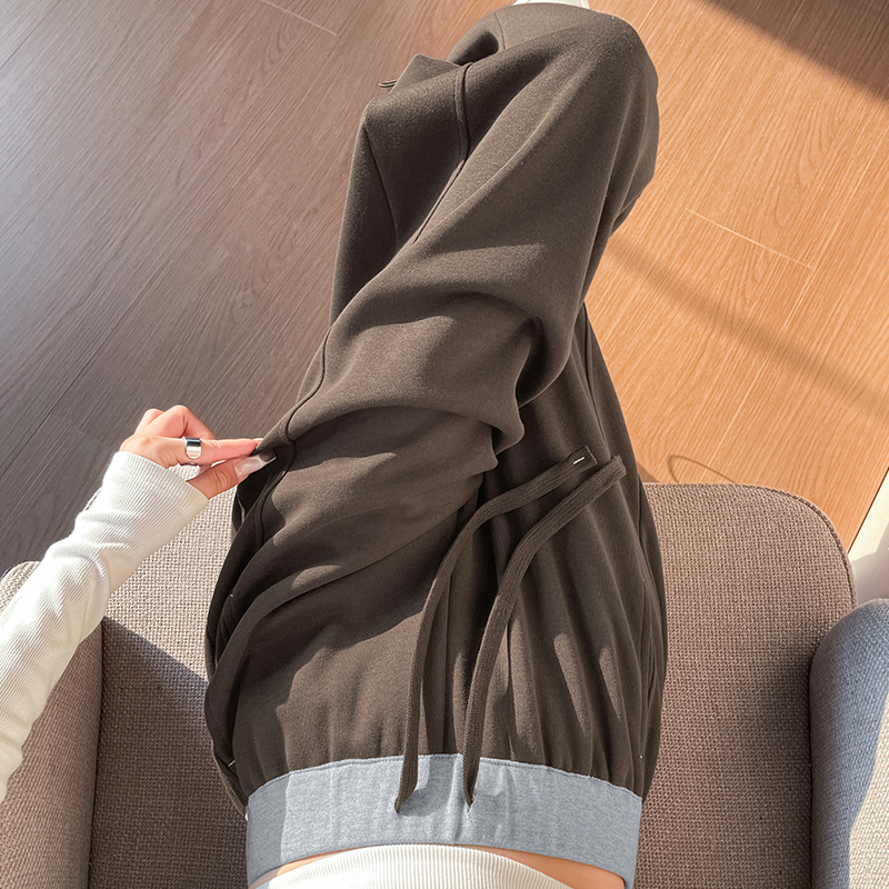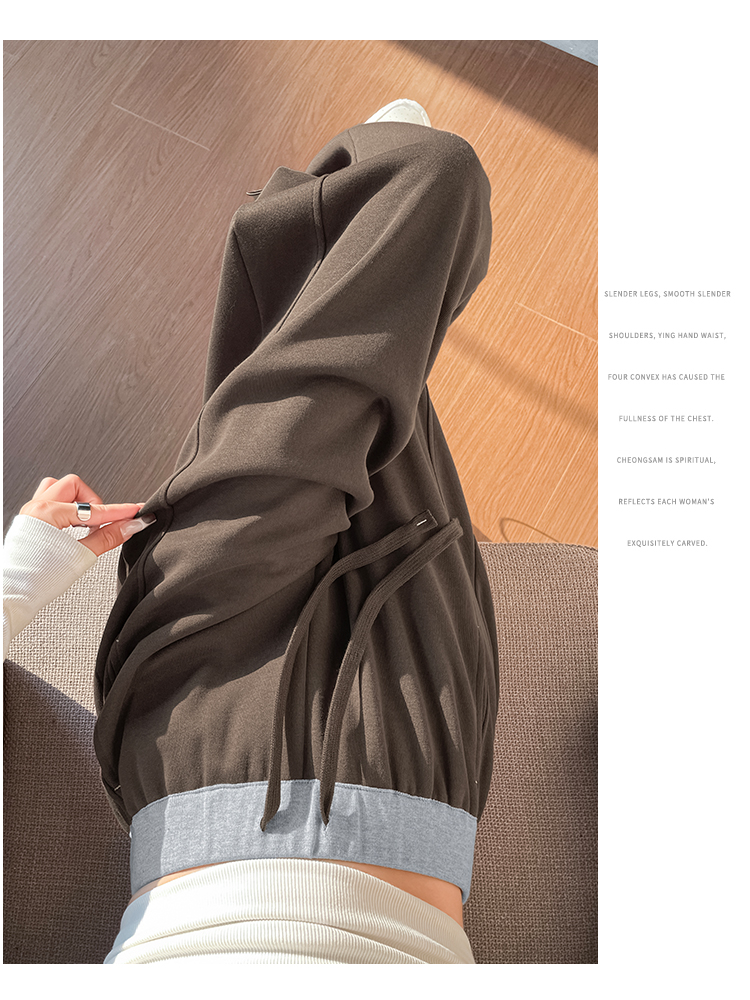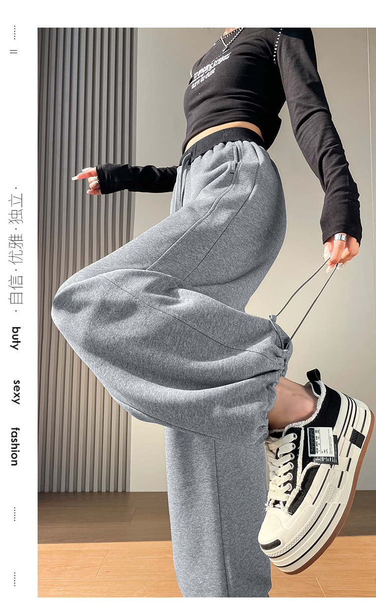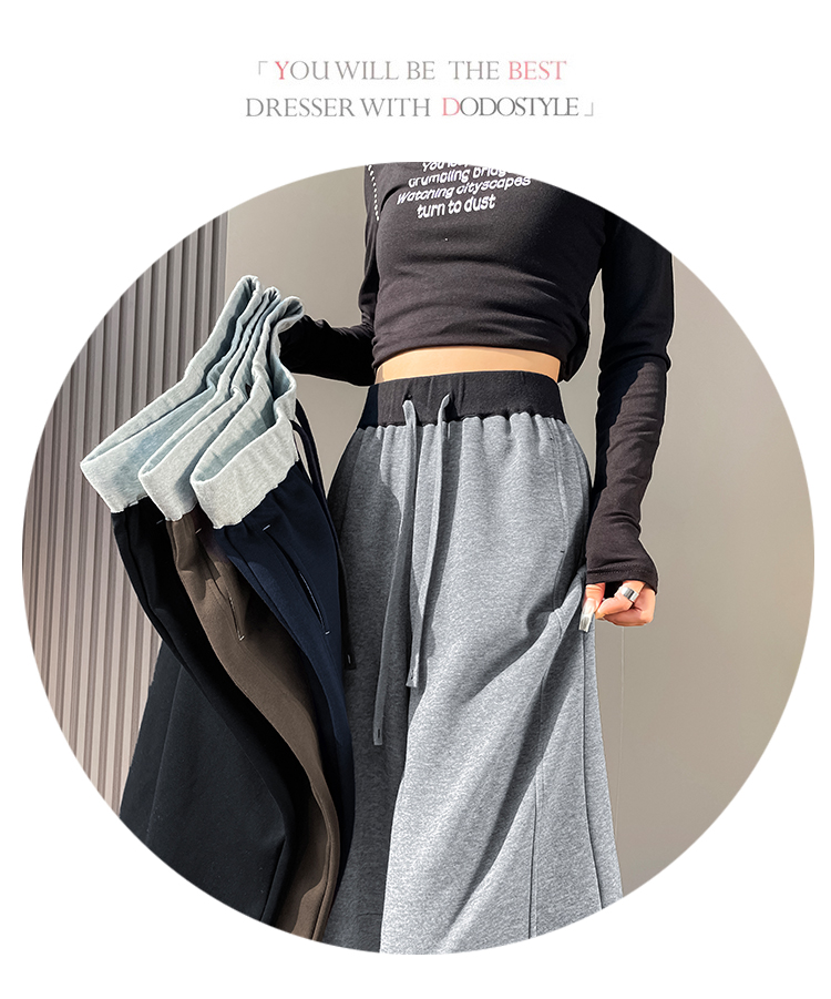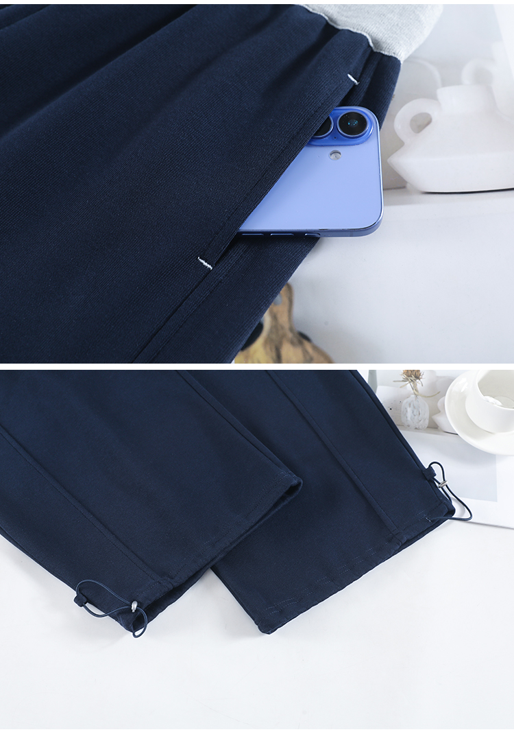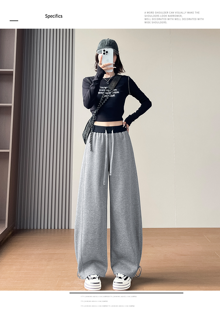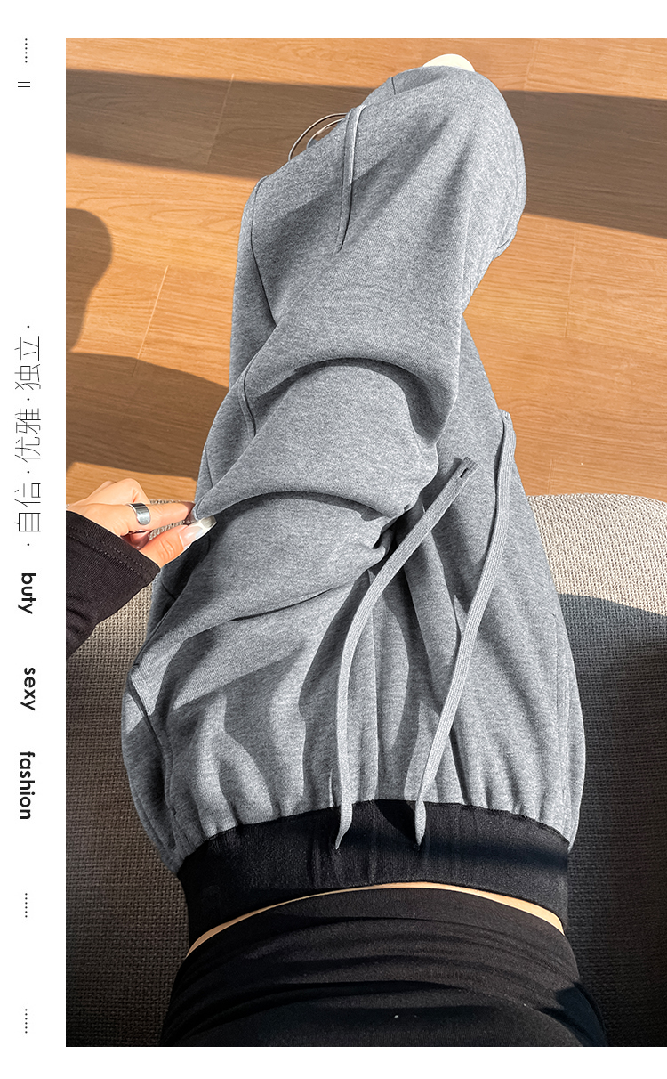 MY13603# 时尚高腰拼接阔腿束脚两穿弯刀裤百搭休闲运动卫裤女裝貨源服裝批發