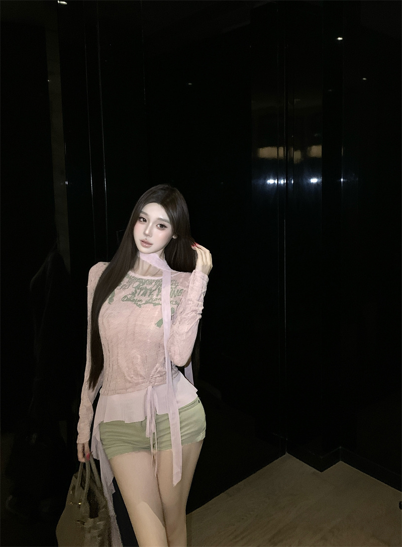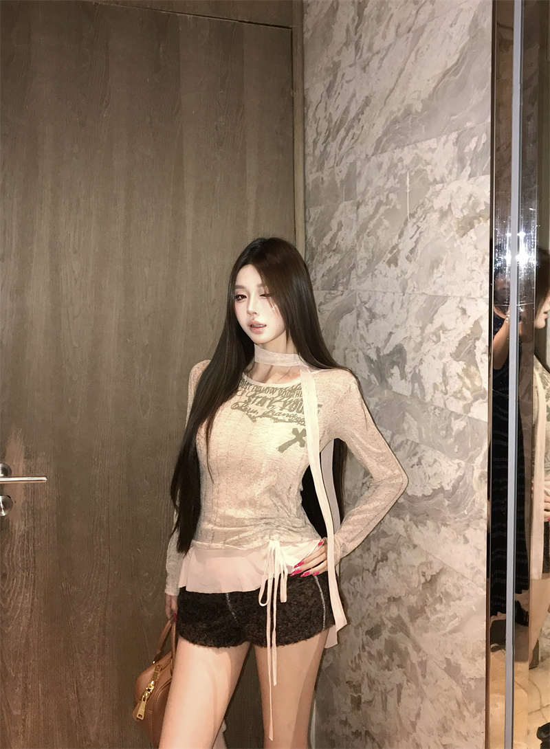 MY13661# 维斯小姐香草甜酒精致甜系少女收腰针织法蕾打底上衣女女裝貨...