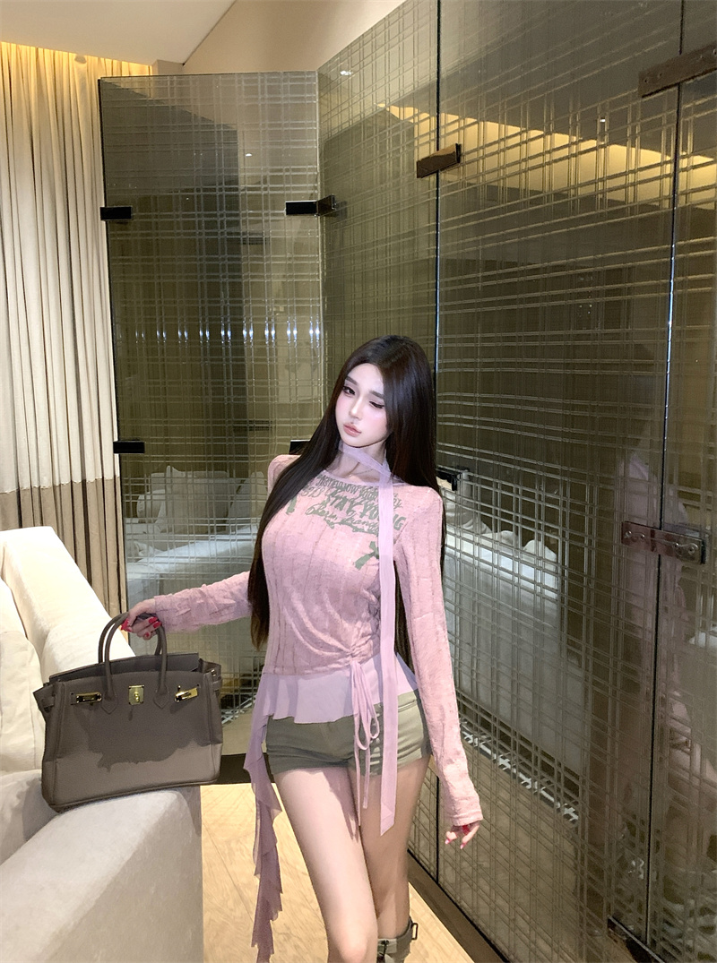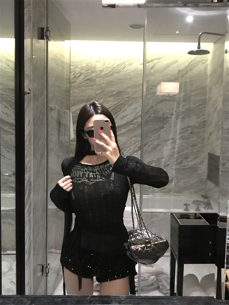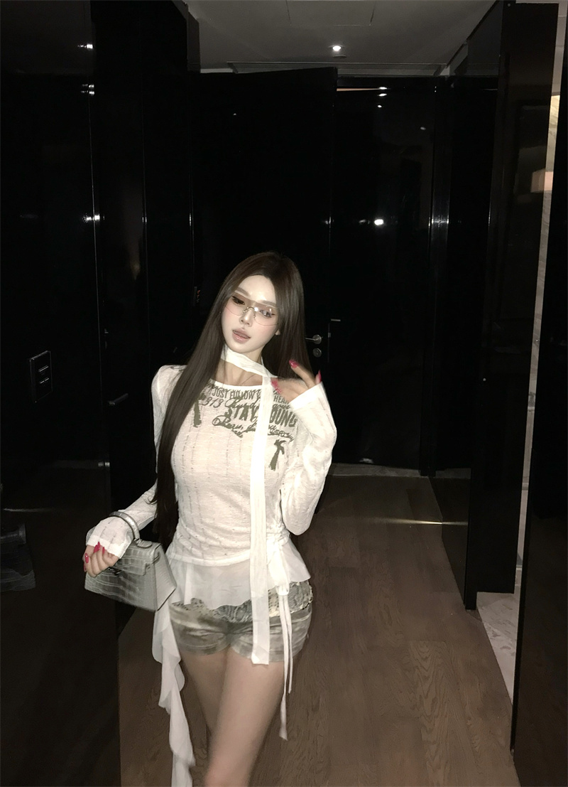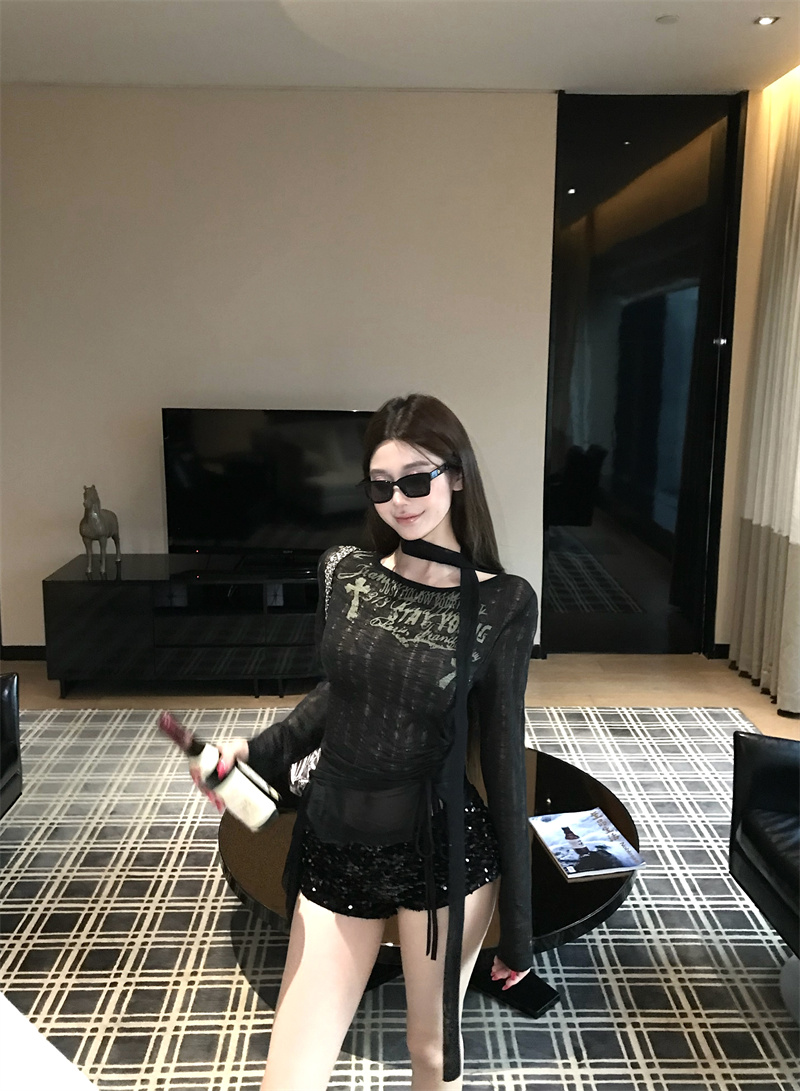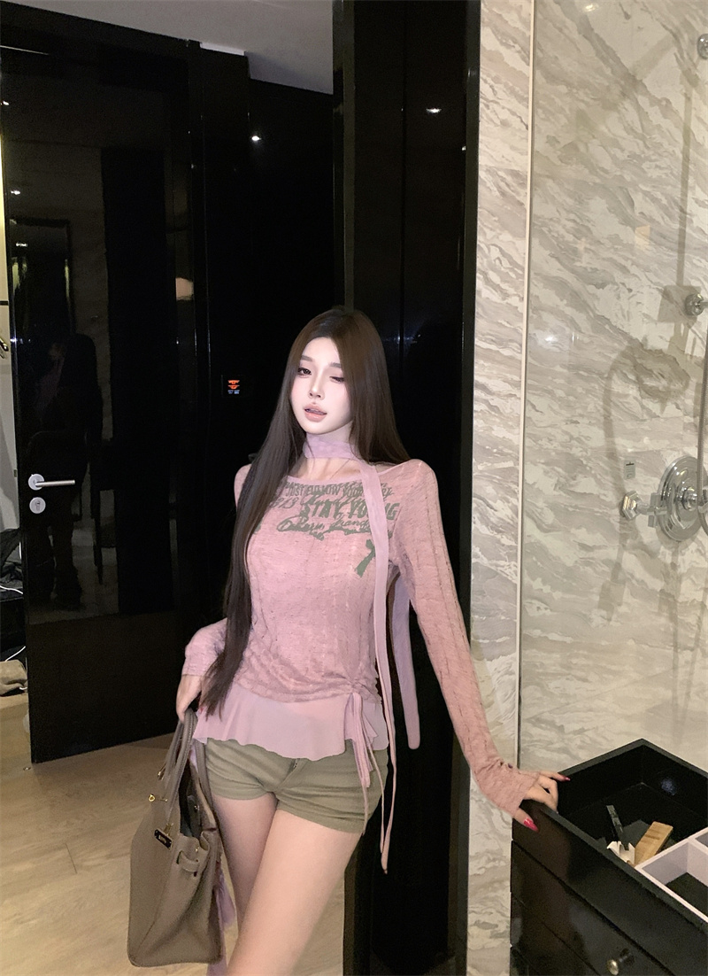 MY13669# 新款美式设计感辣妹针织衫一字肩长袖T恤衫显瘦上衣女裝貨源服裝批發