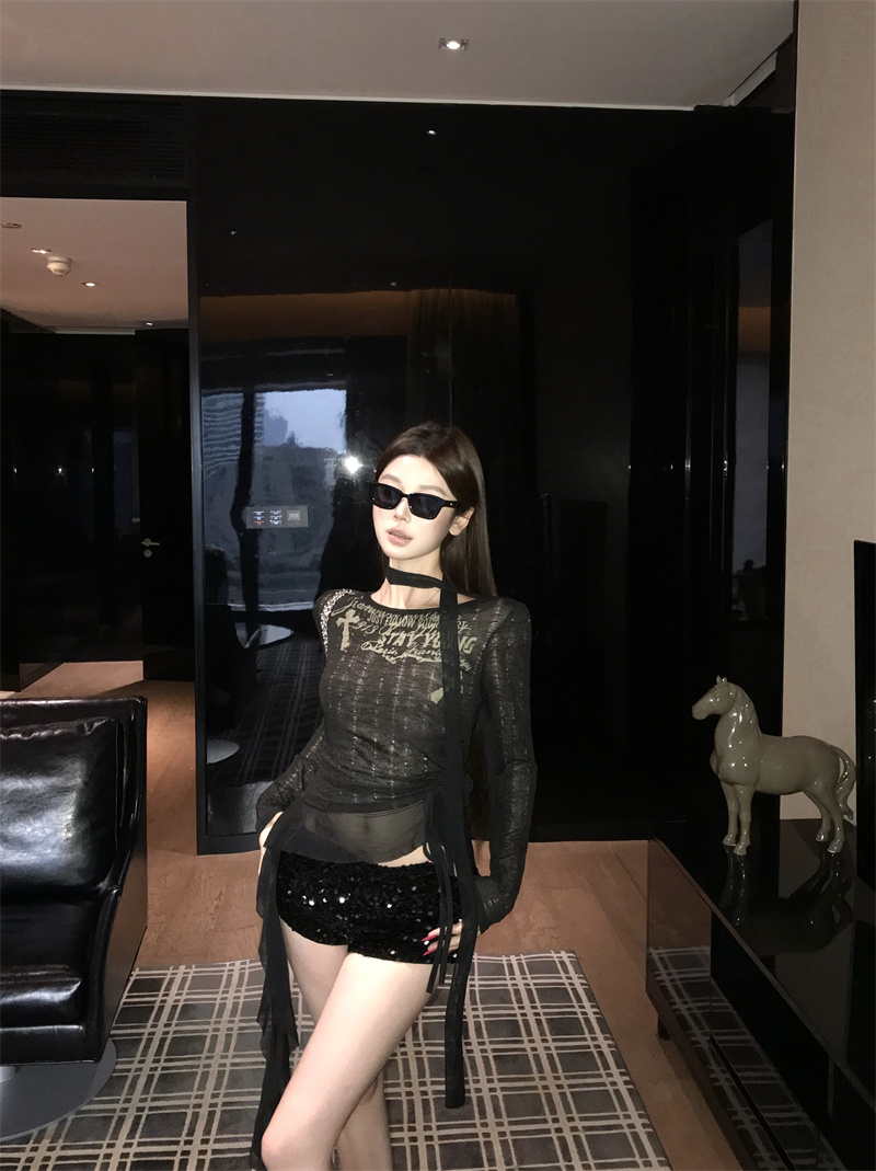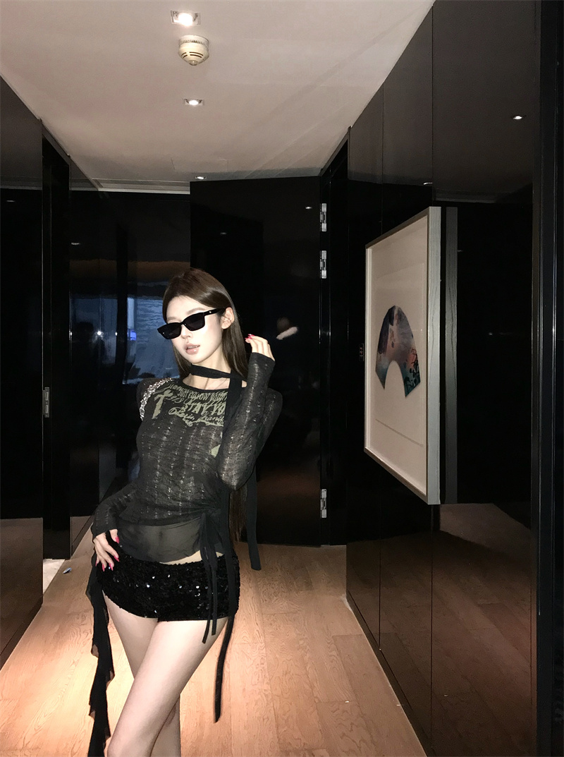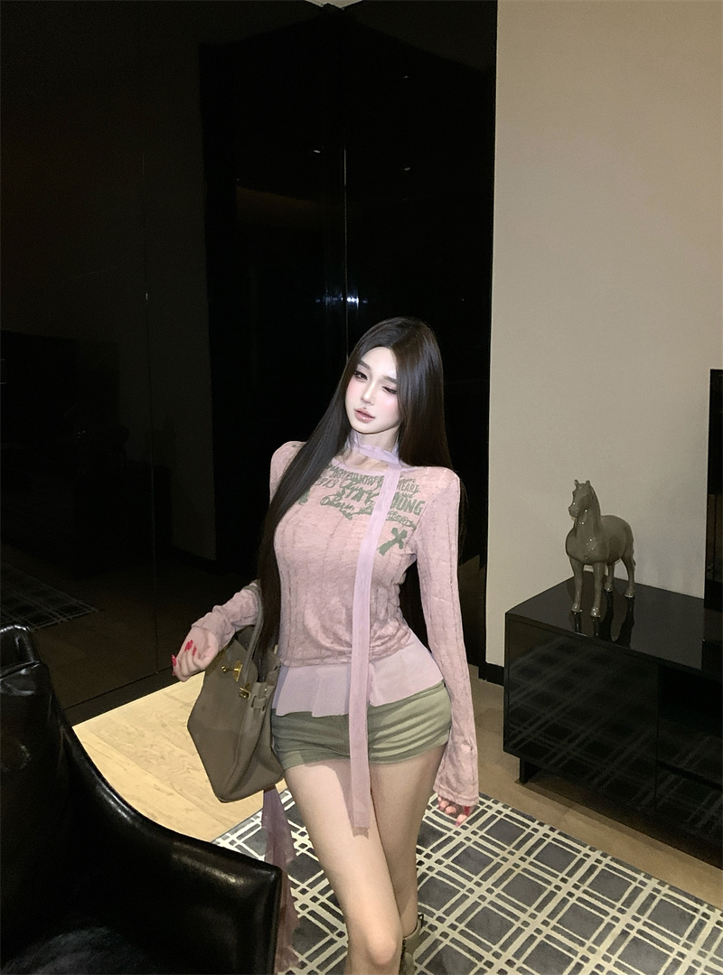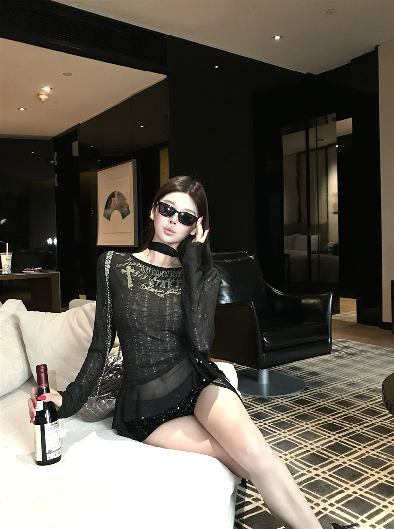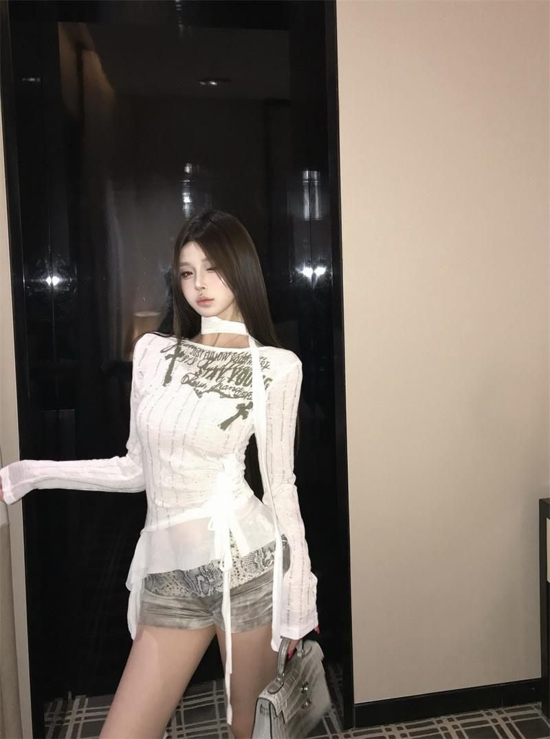 MY13669# 新款美式设计感辣妹针织衫一字肩长袖T恤衫显瘦上衣女裝貨源服裝批發