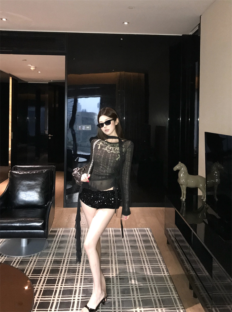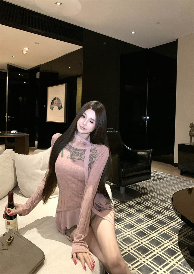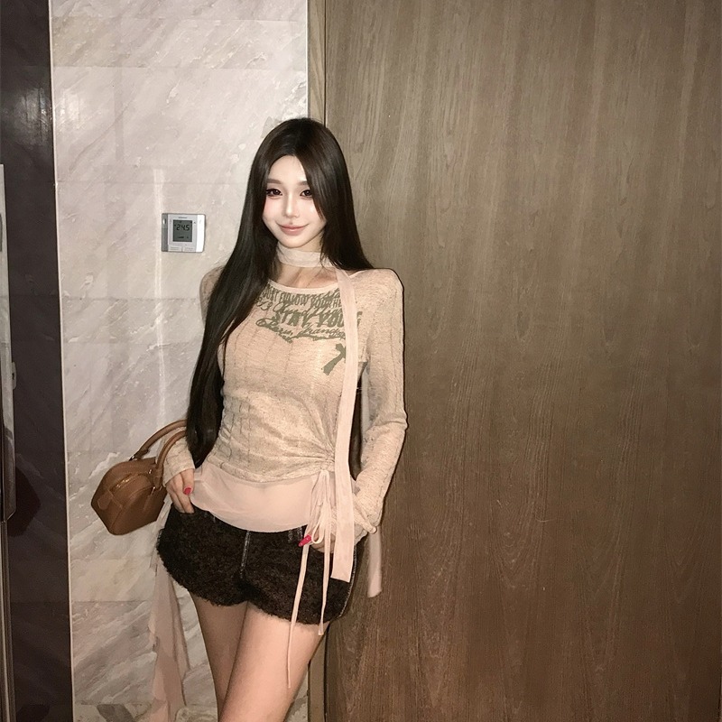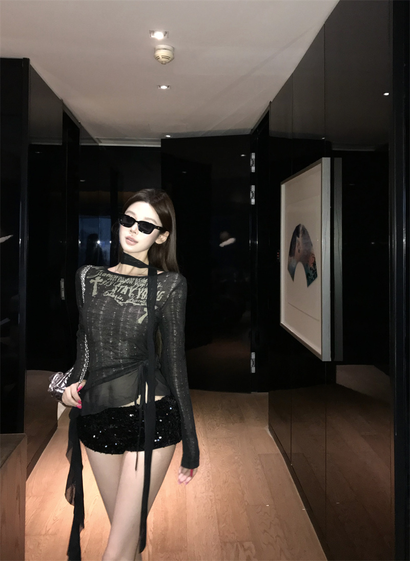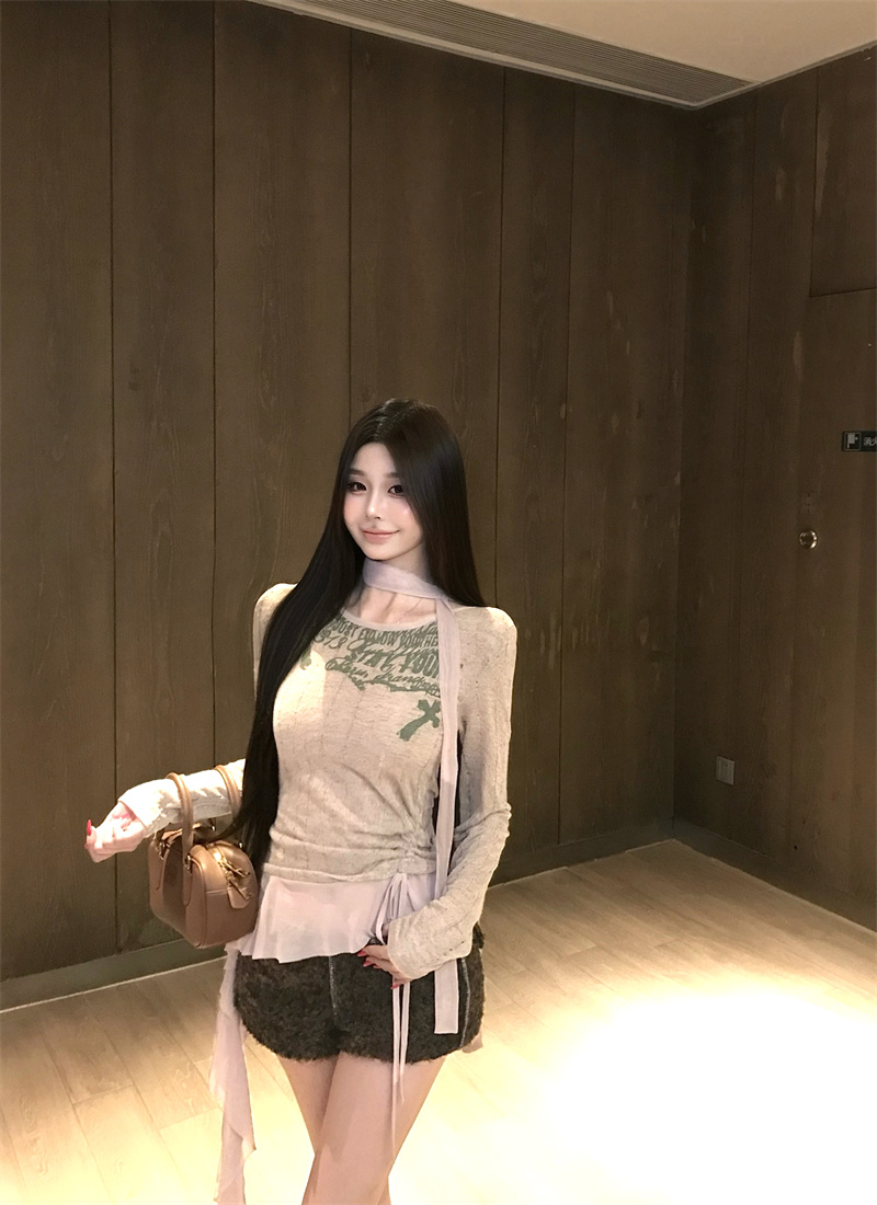 MY13669# 新款美式设计感辣妹针织衫一字肩长袖T恤衫显瘦上衣女裝貨源服裝批發