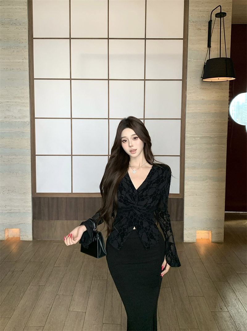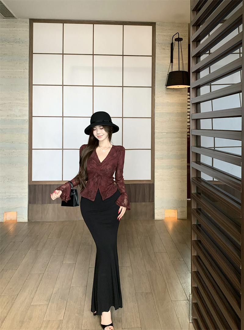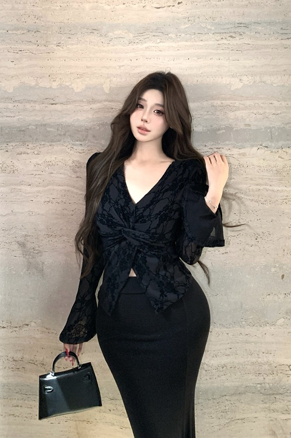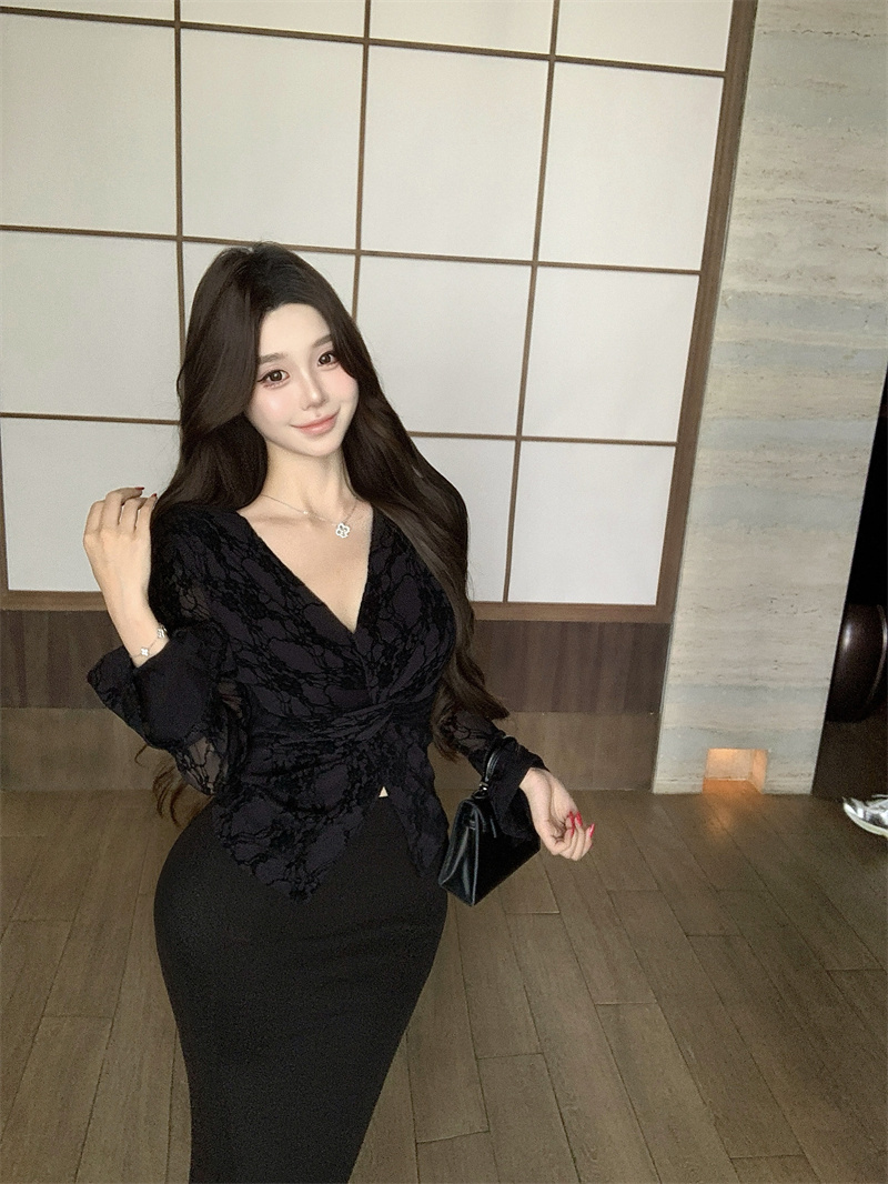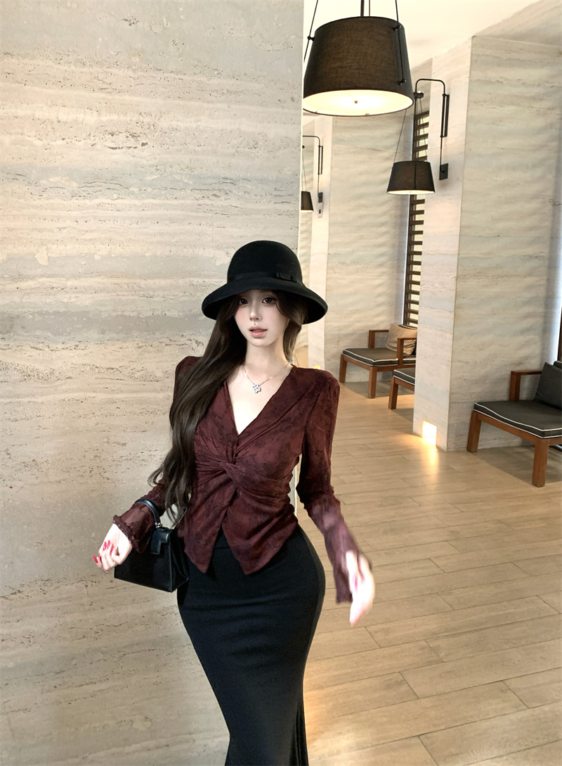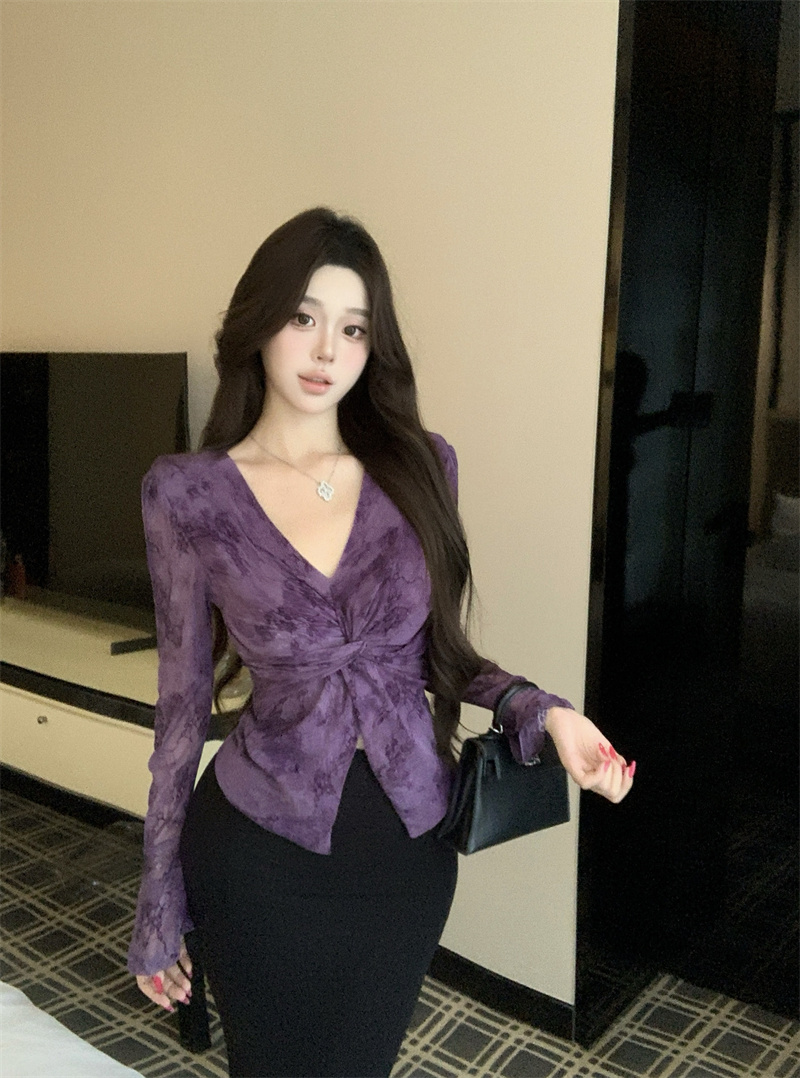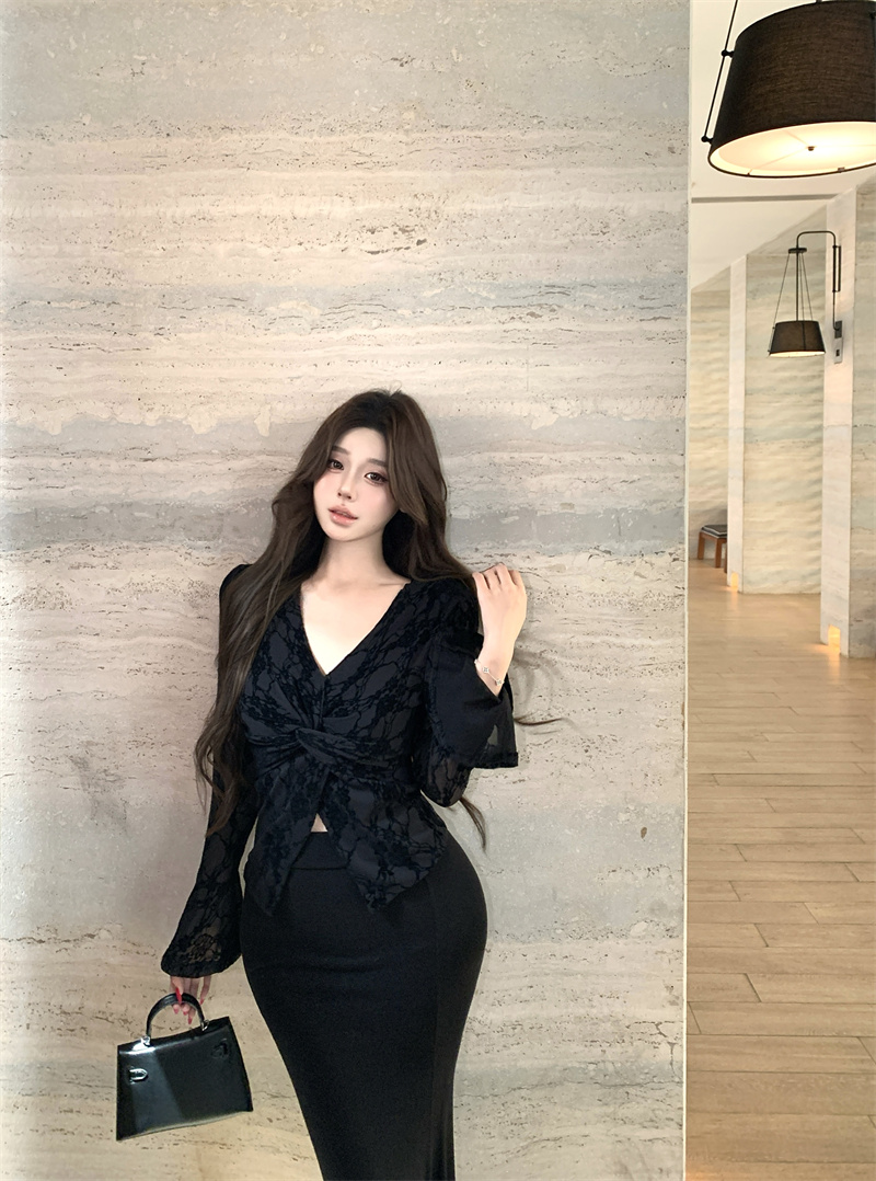 MY13678# 法式轻奢高级感喇叭袖衬衫秋季新款气质收腰纽结上衣女女裝貨源服裝批發
