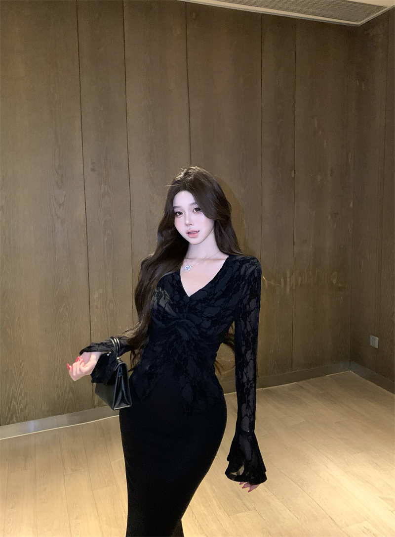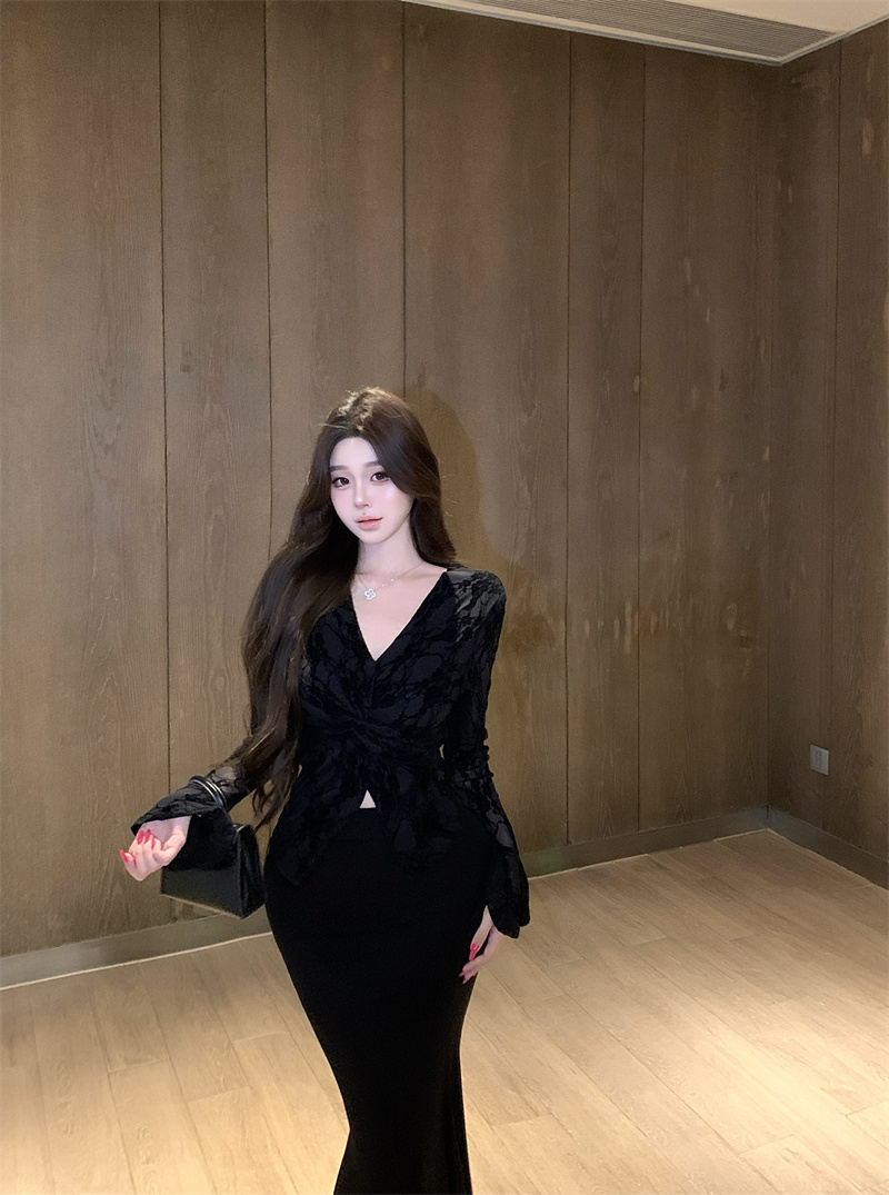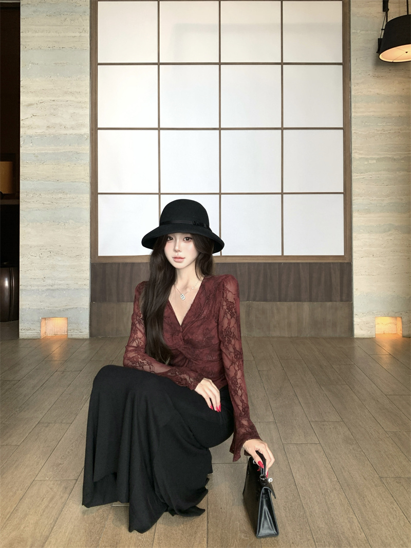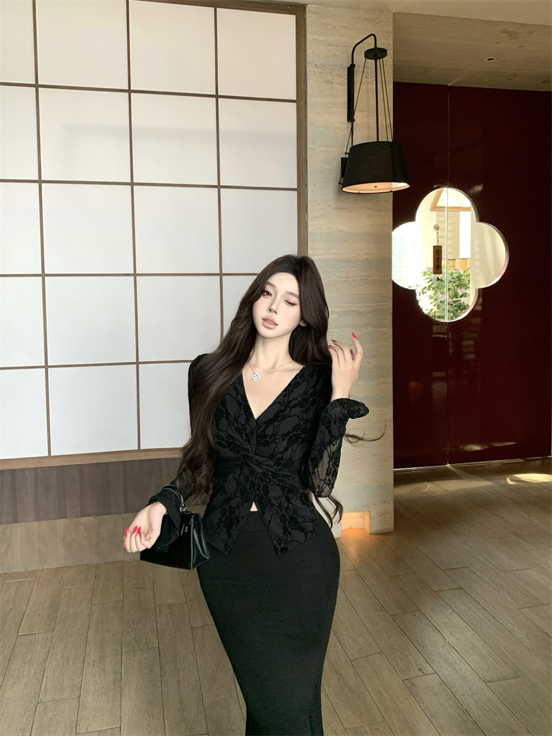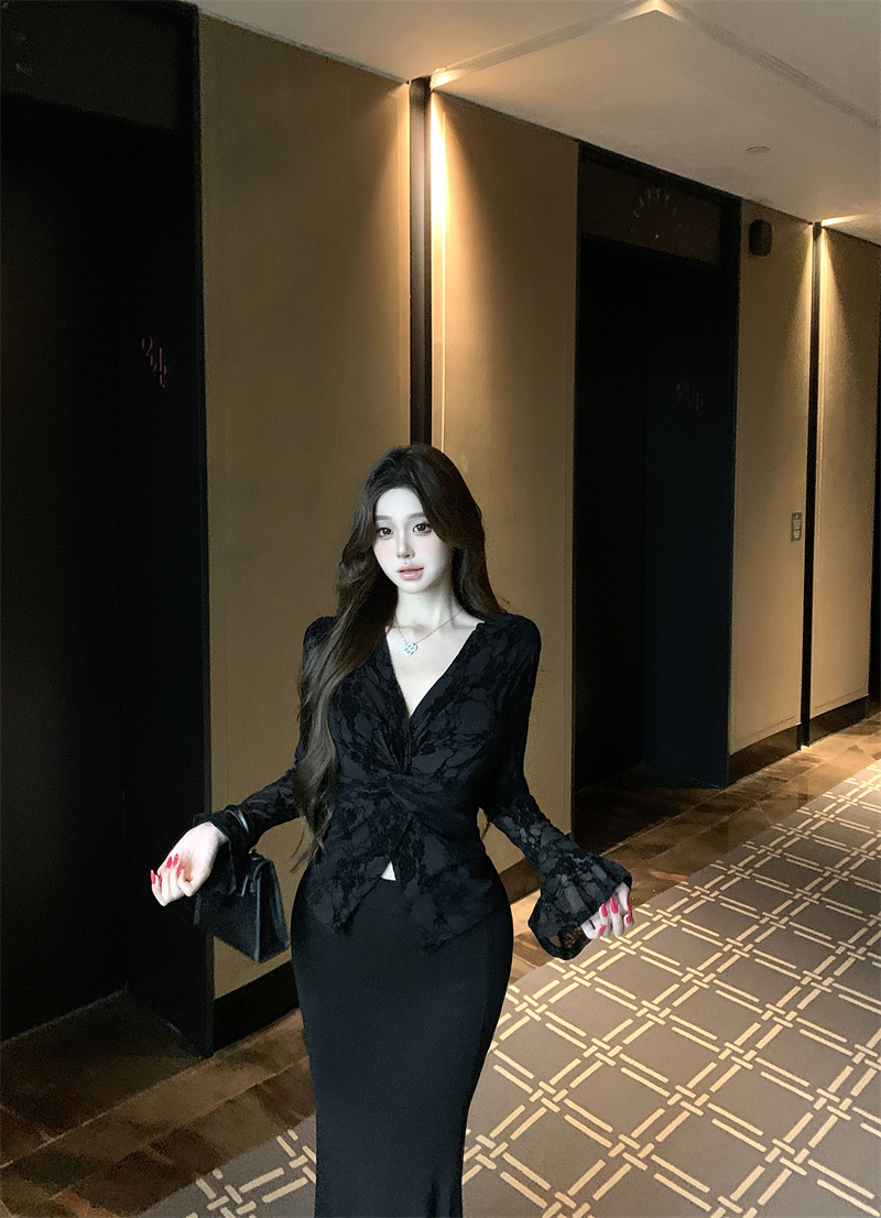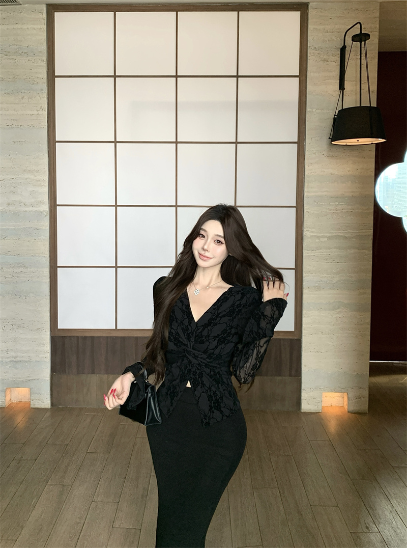 MY13678# 法式轻奢高级感喇叭袖衬衫秋季新款气质收腰纽结上衣女女裝貨源服裝批發