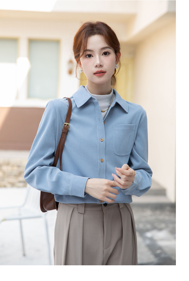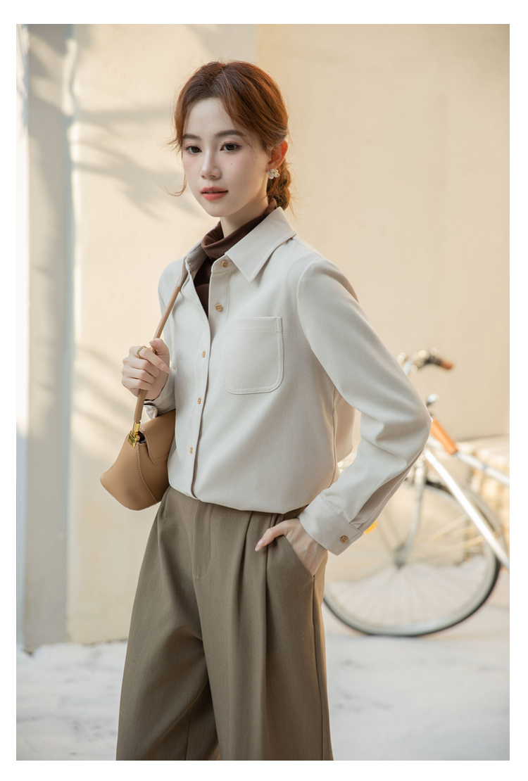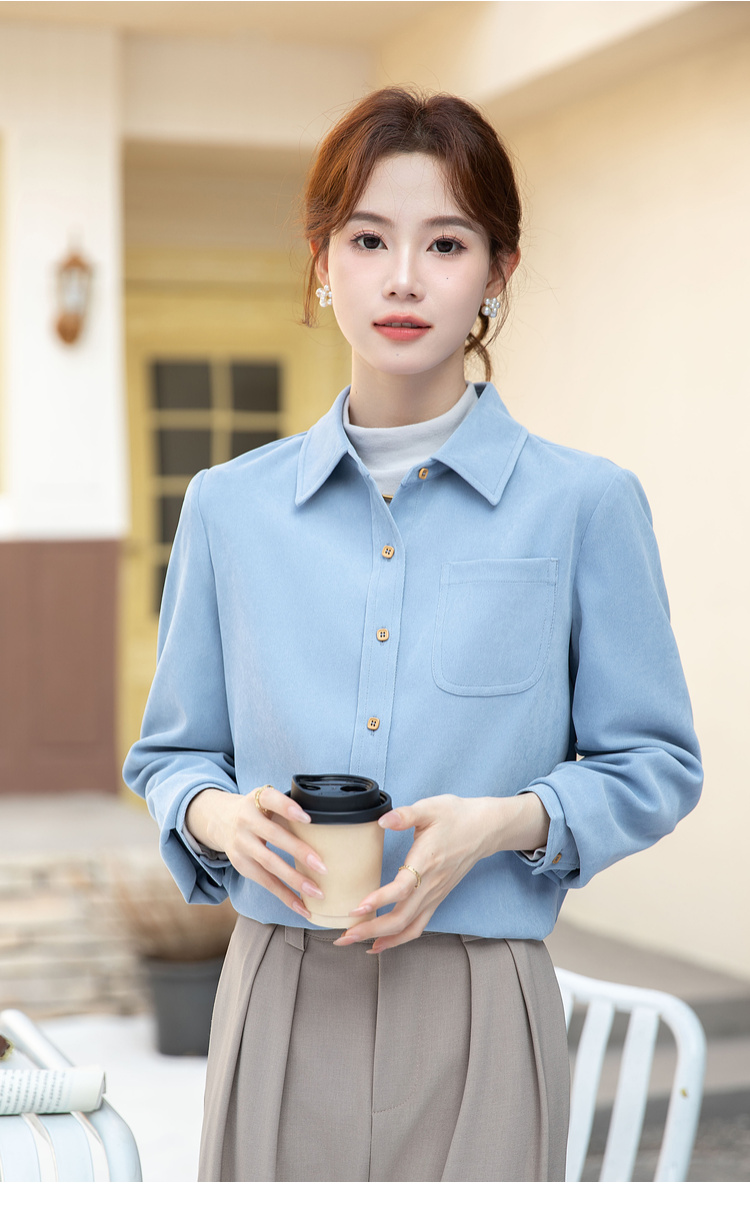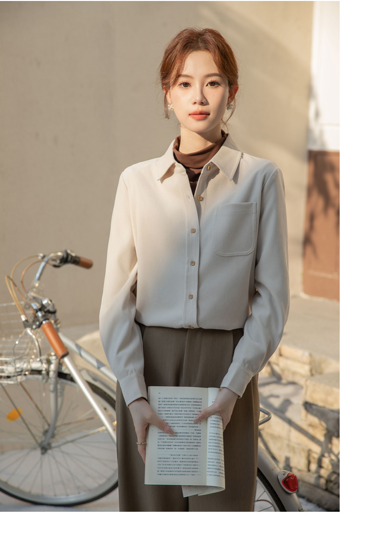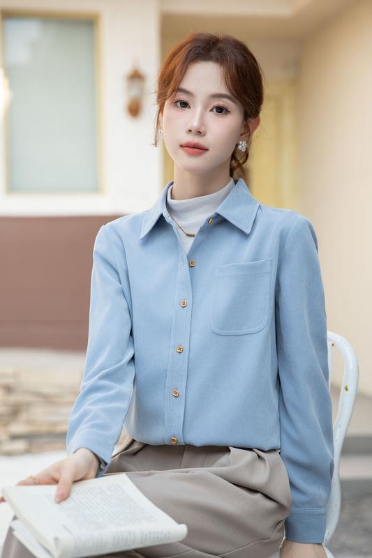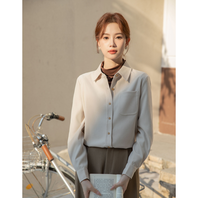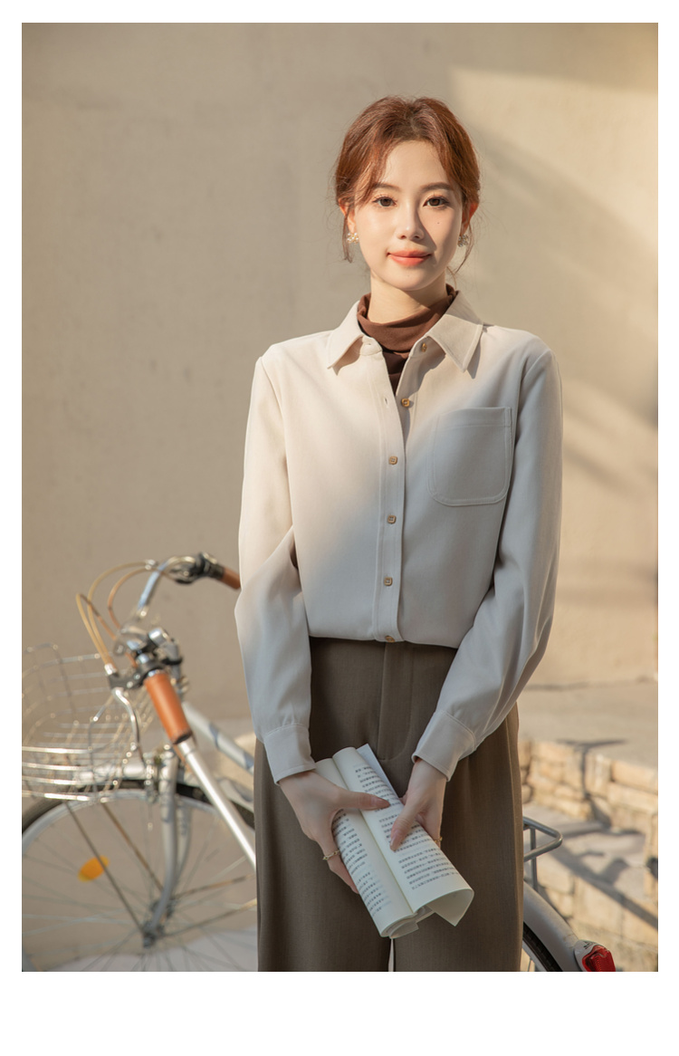 MY13689# 长袖法式衬衫复古职业女装纯色气质通勤衬衣漂亮上衣女裝貨源服裝批發