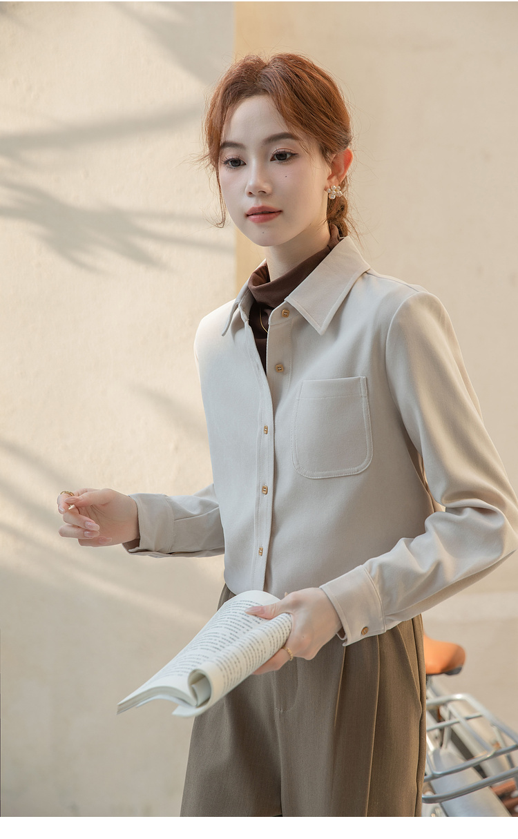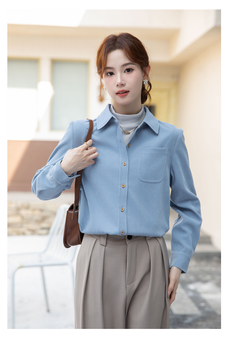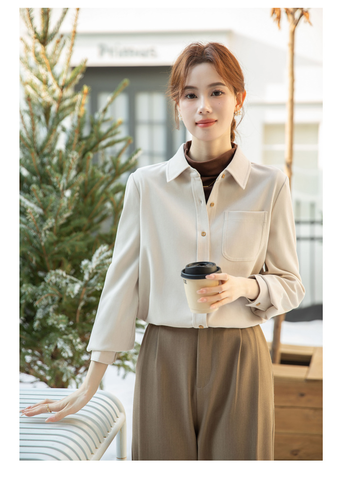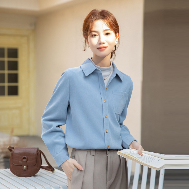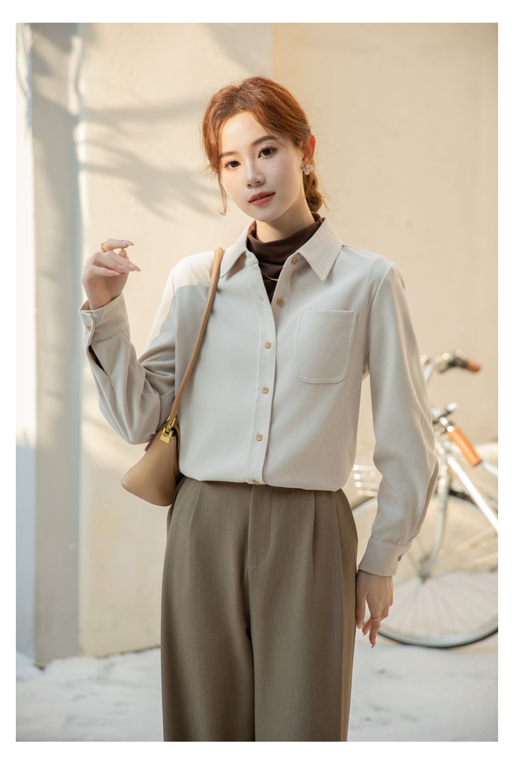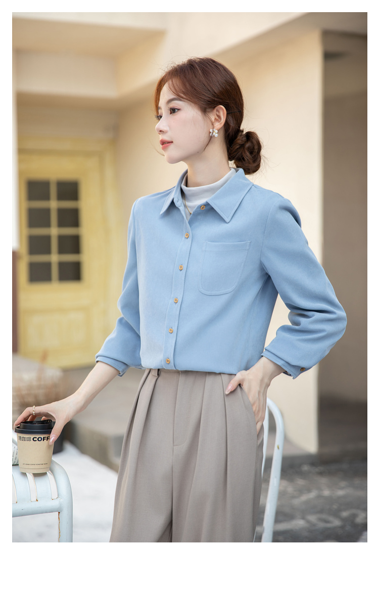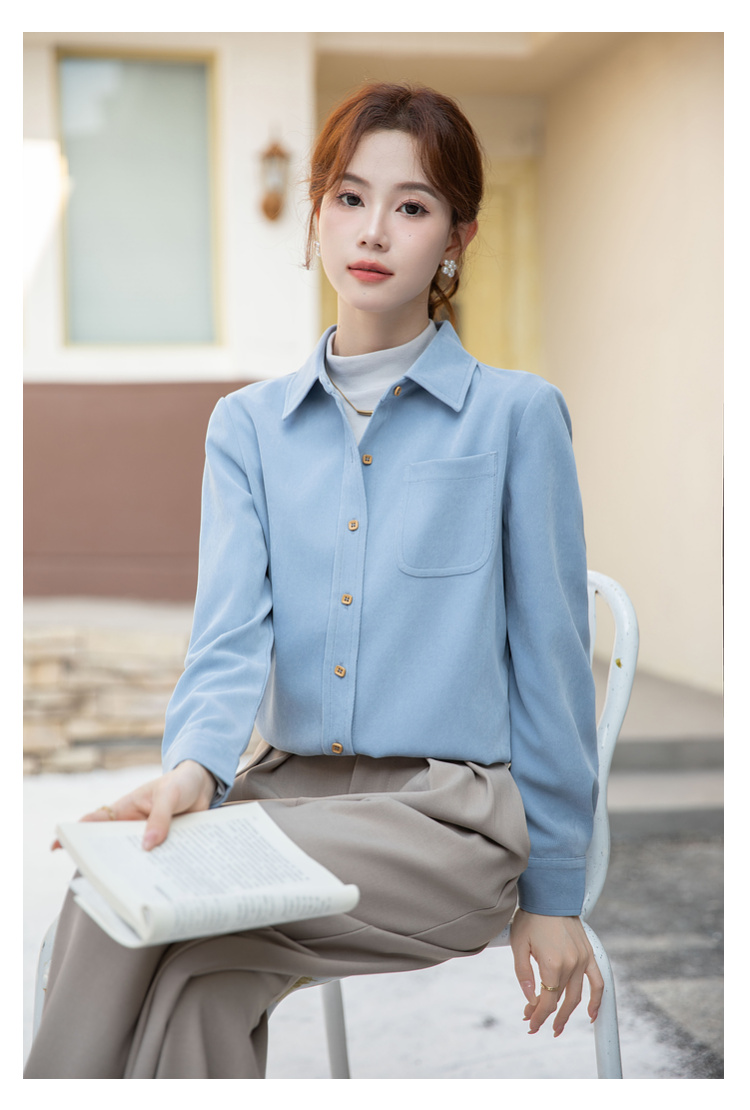 MY13689# 长袖法式衬衫复古职业女装纯色气质通勤衬衣漂亮上衣女裝貨源服裝批發