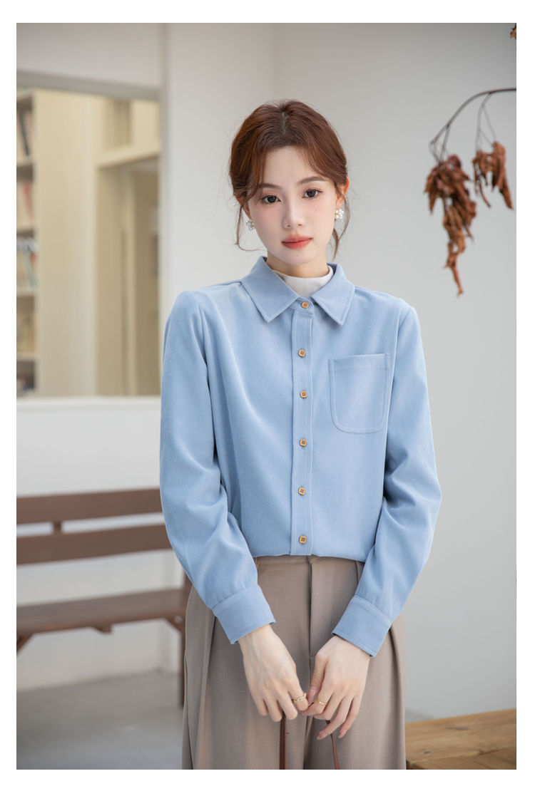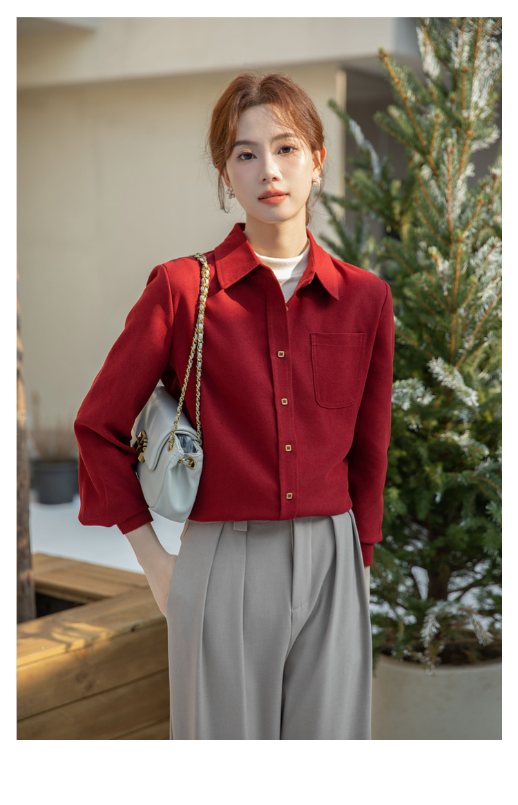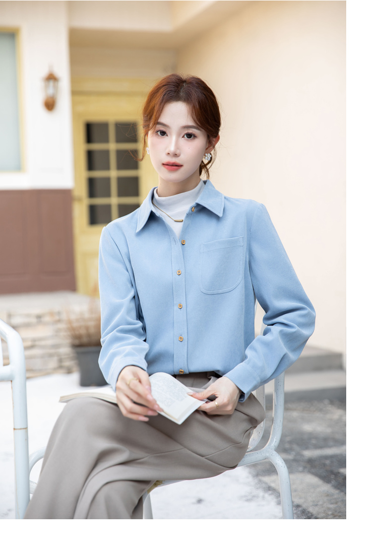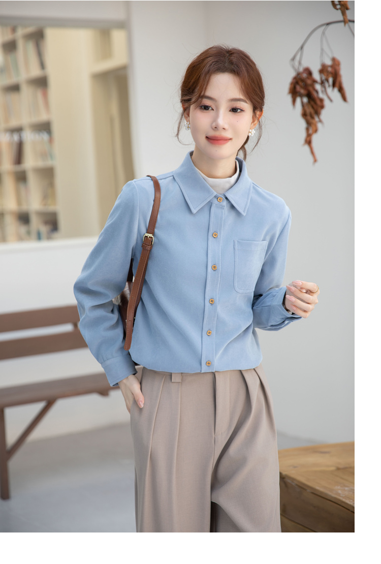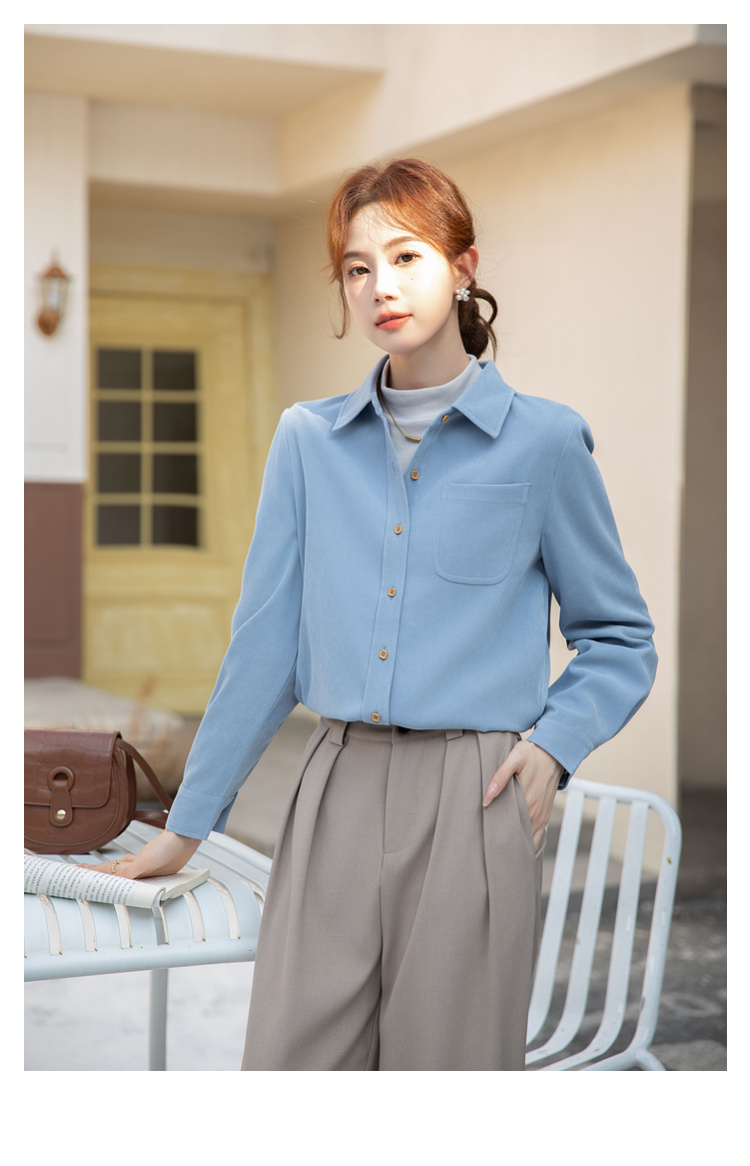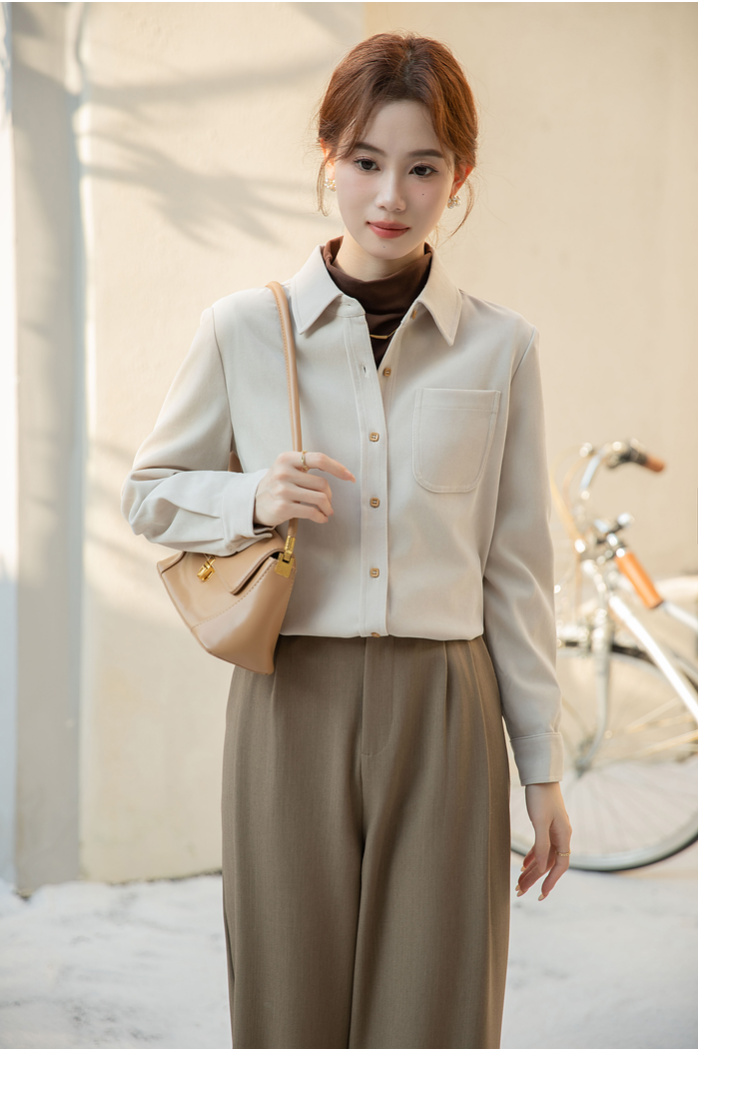 MY13689# 长袖法式衬衫复古职业女装纯色气质通勤衬衣漂亮上衣女裝貨源服裝批發