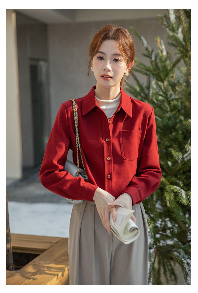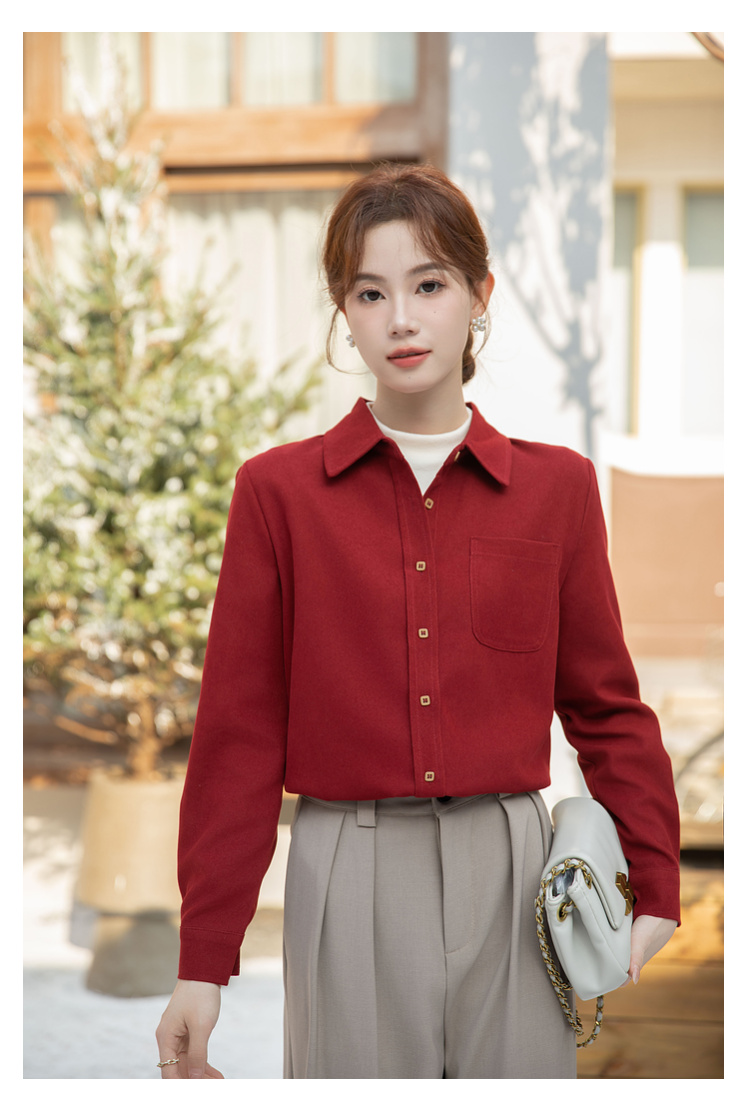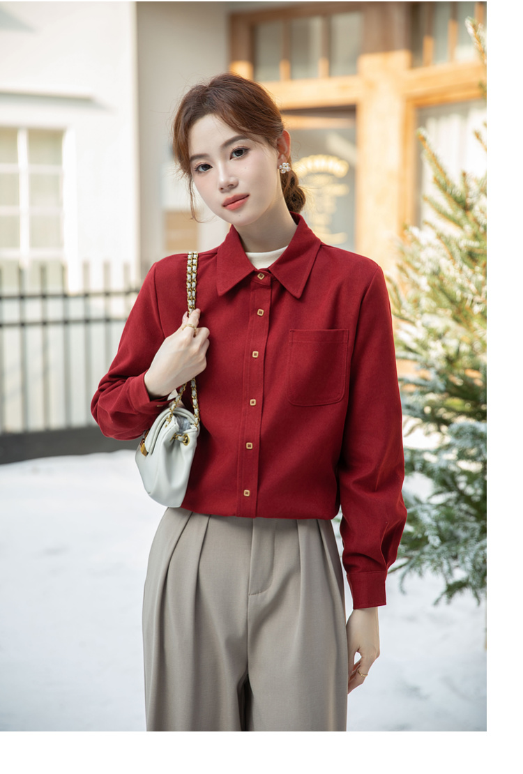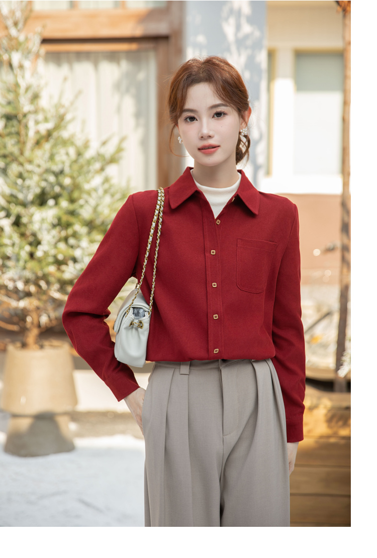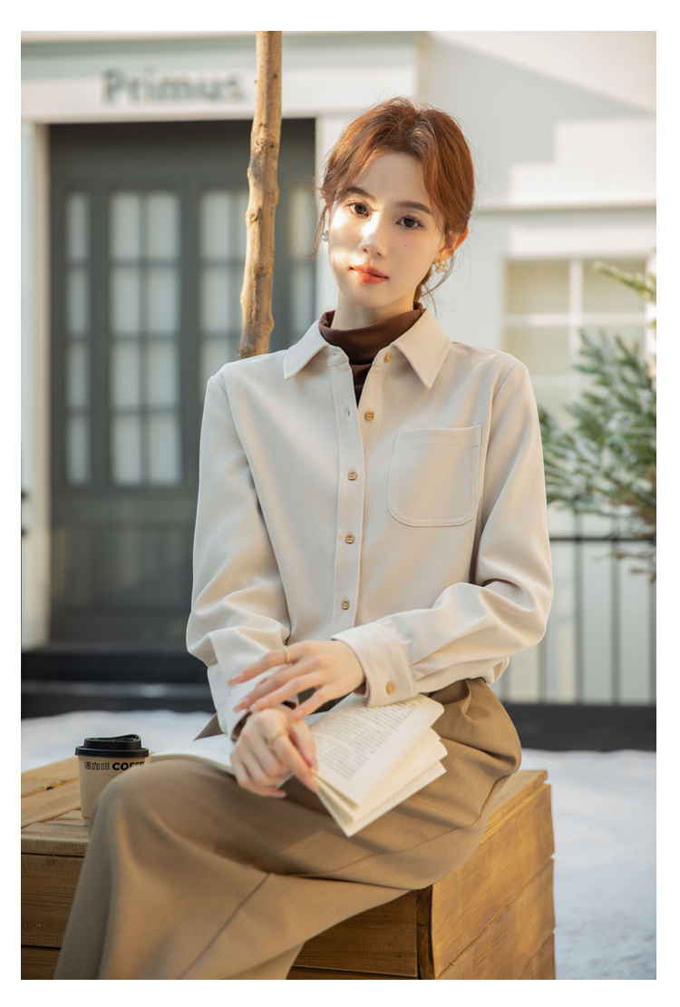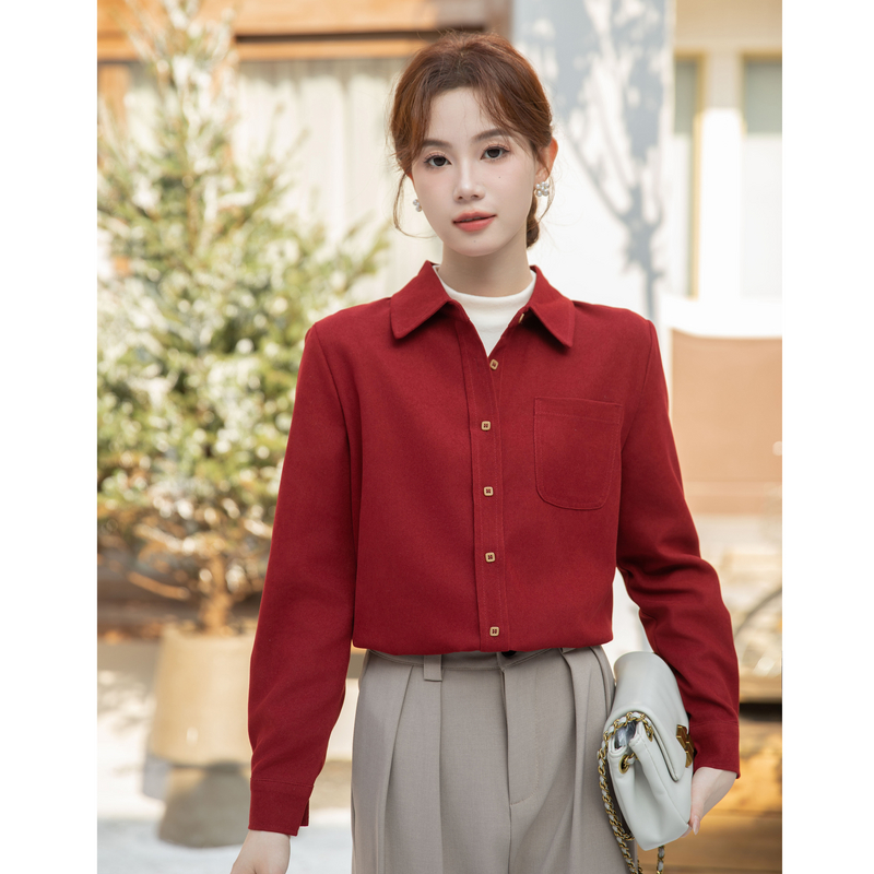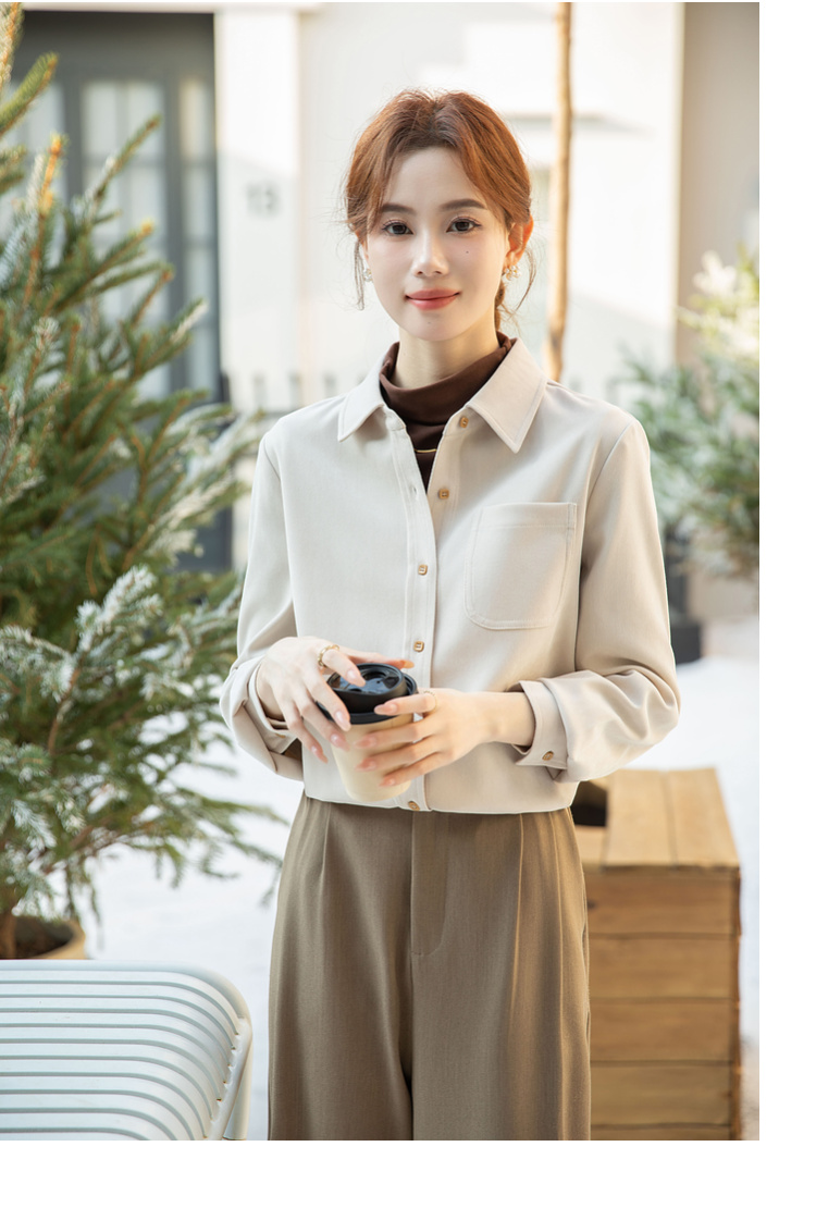 MY13689# 长袖法式衬衫复古职业女装纯色气质通勤衬衣漂亮上衣女裝貨源服裝批發