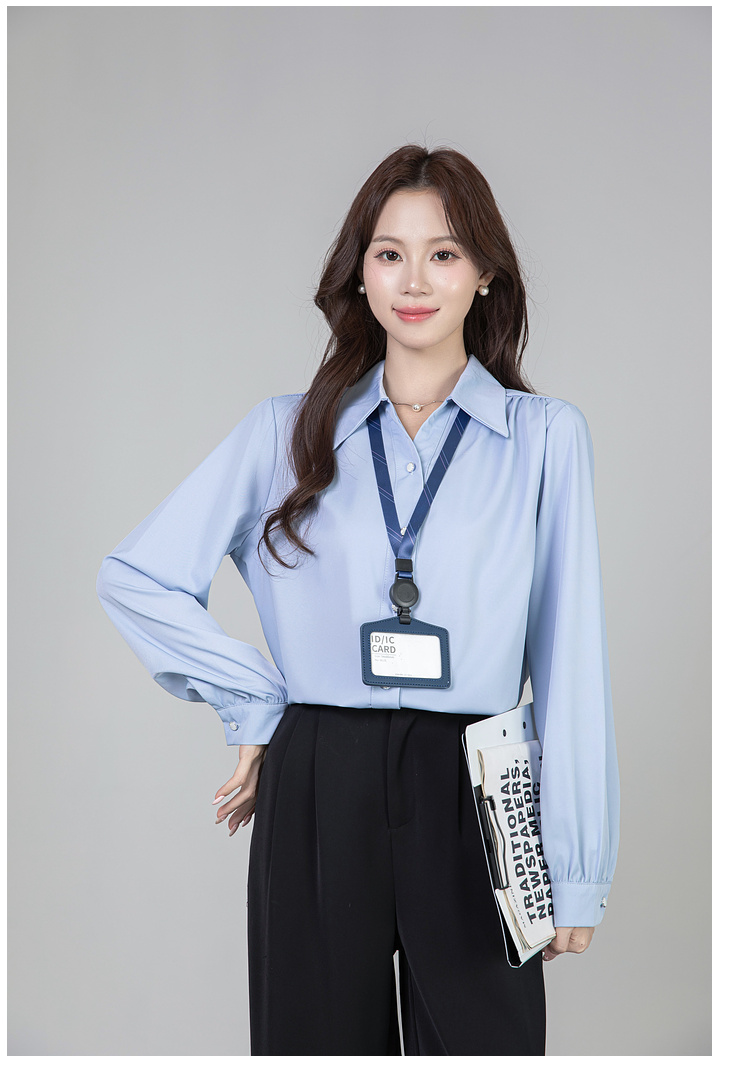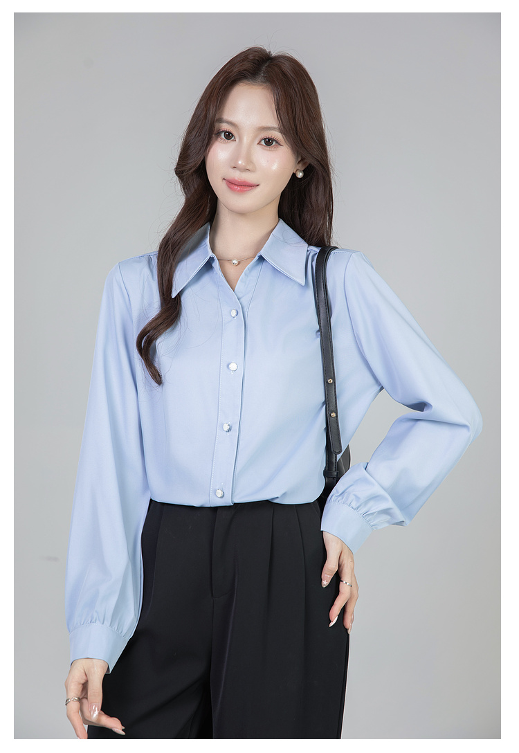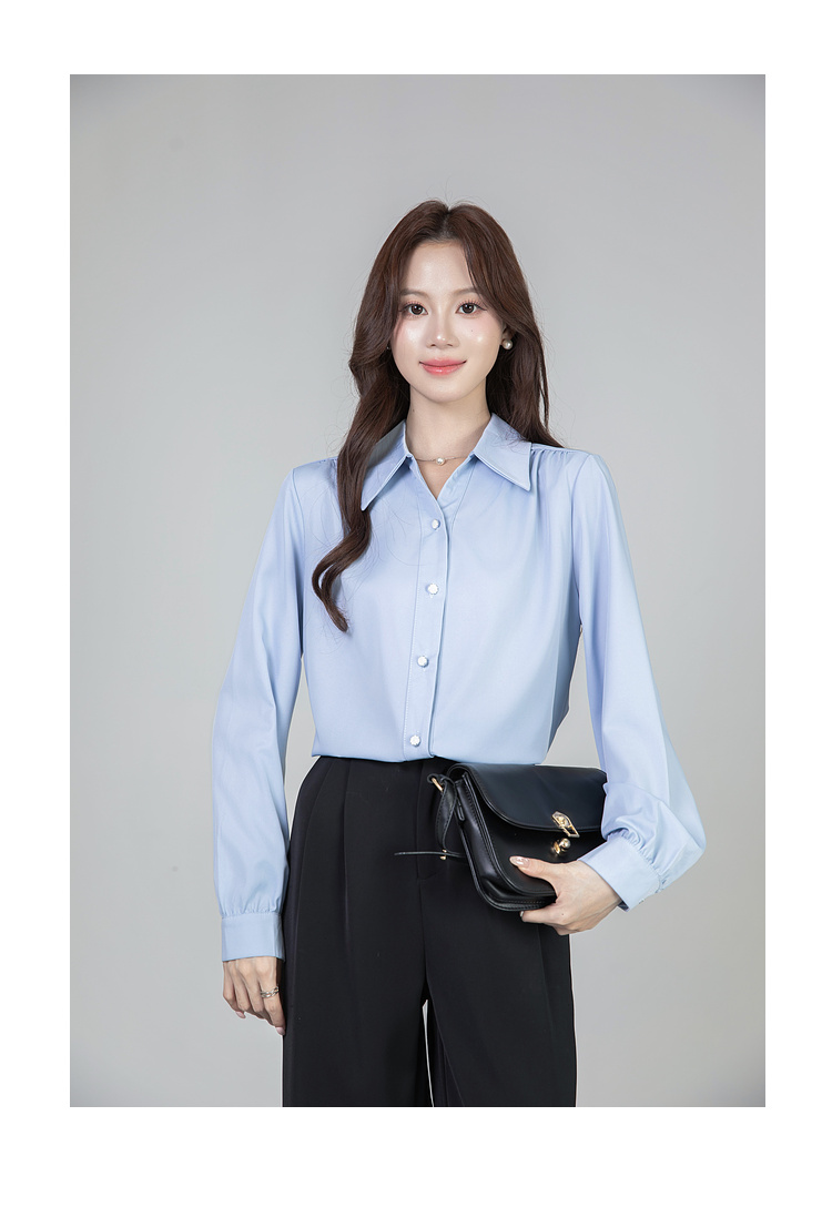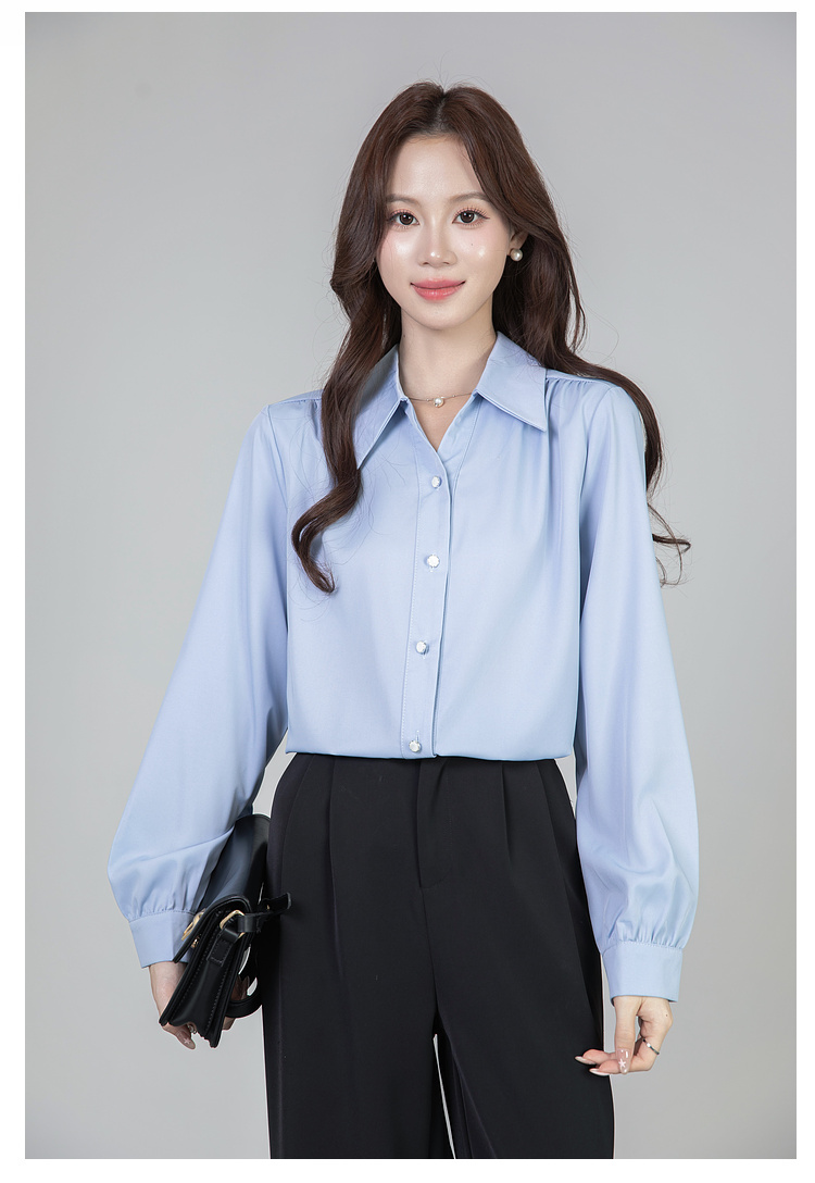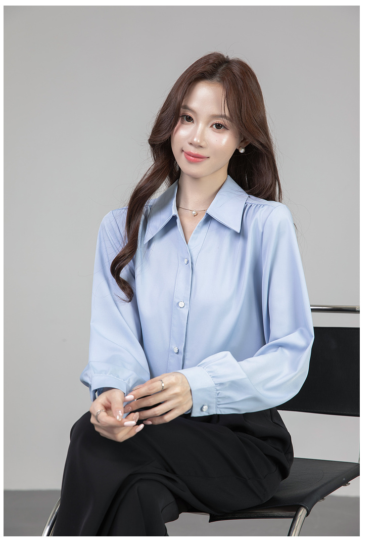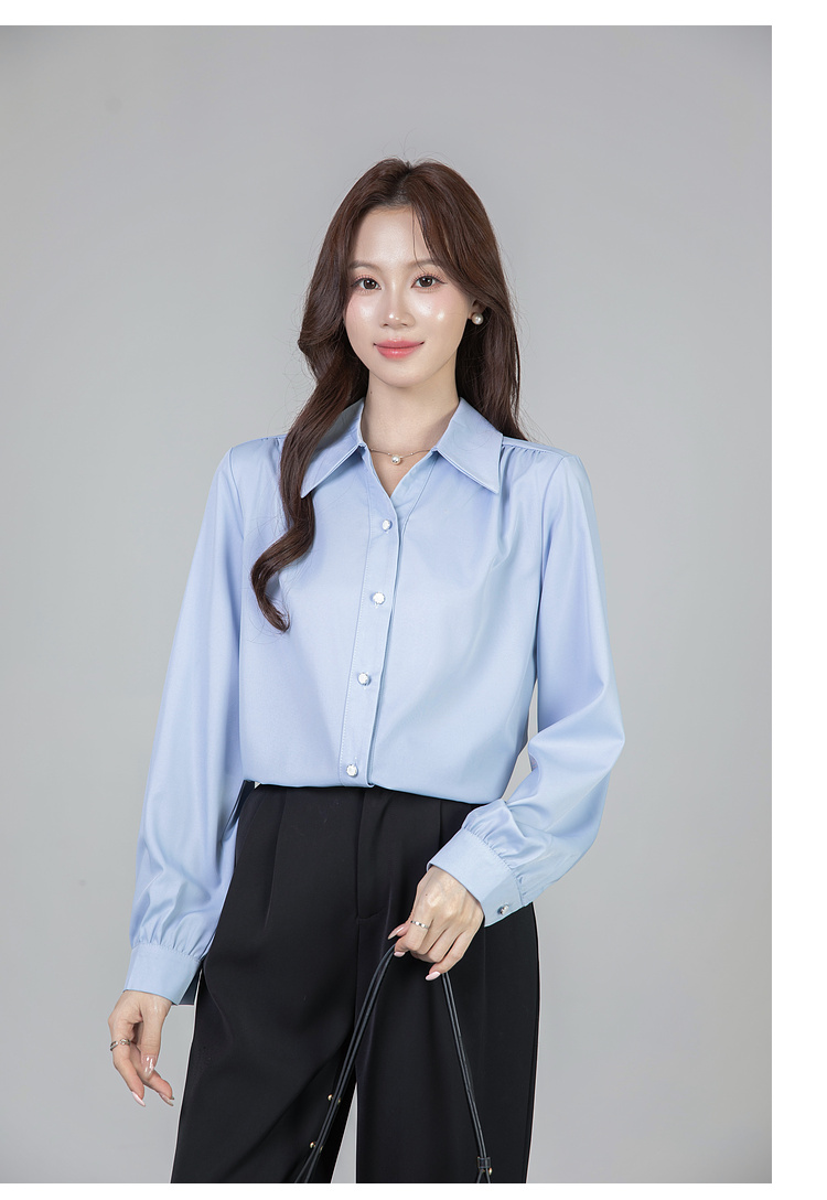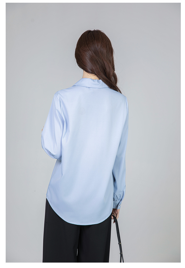 MY13690# 蓝色雪纺衫新款长袖韩版纯色OL职业通勤气质纯色上衣女女裝貨源服裝批發