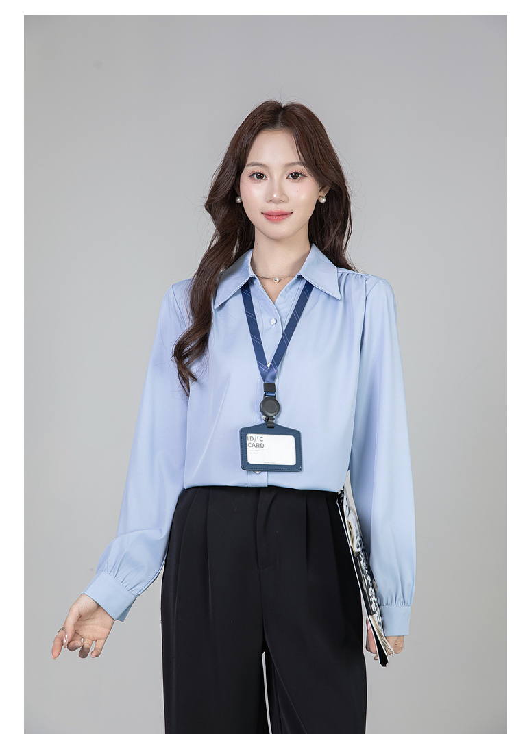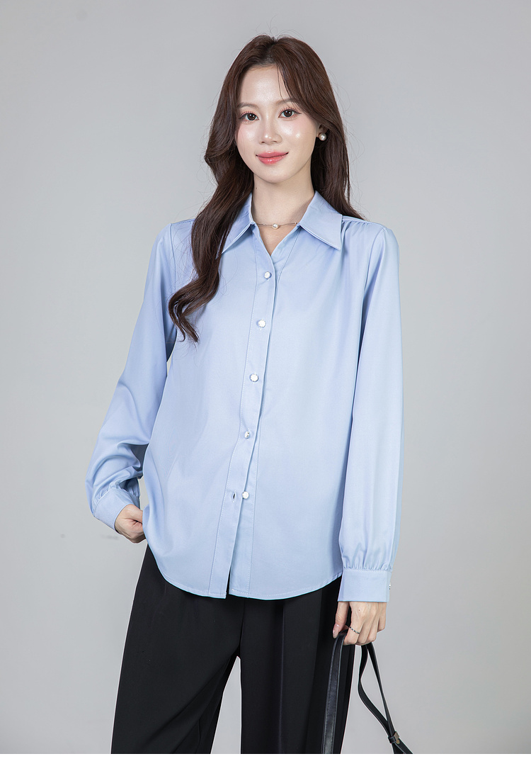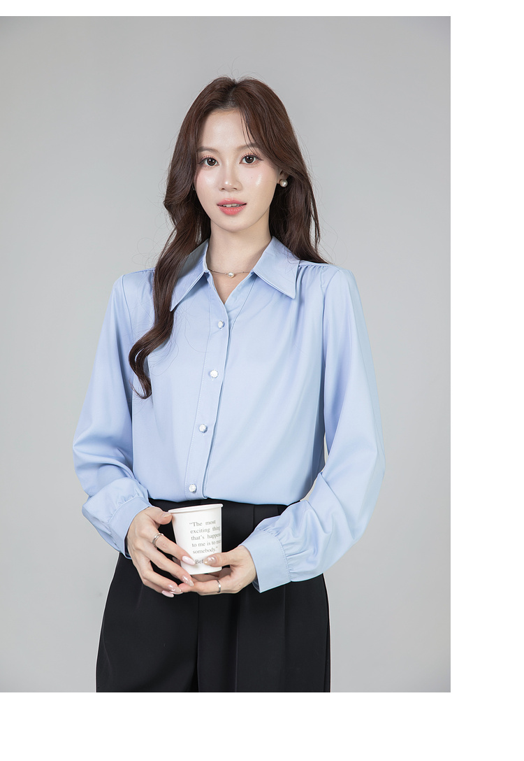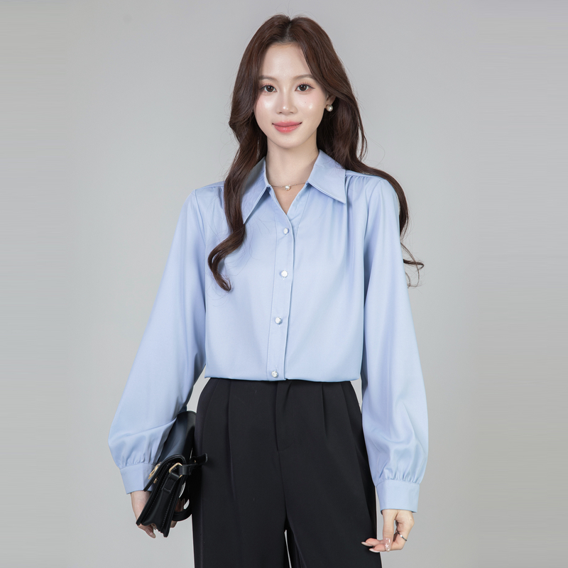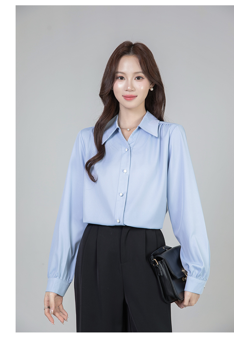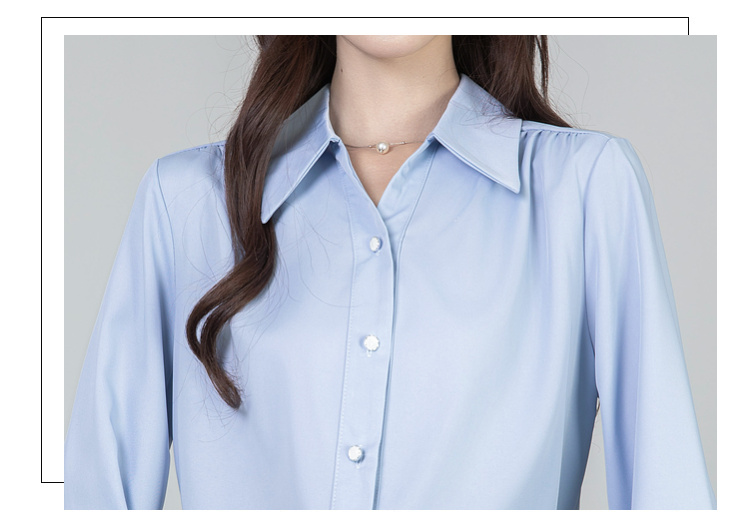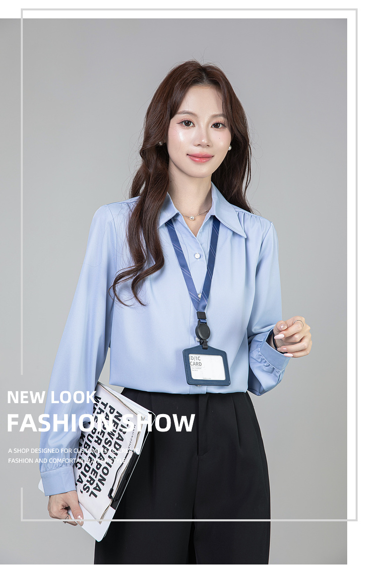 MY13690# 蓝色雪纺衫新款长袖韩版纯色OL职业通勤气质纯色上衣女女裝貨源服裝批發