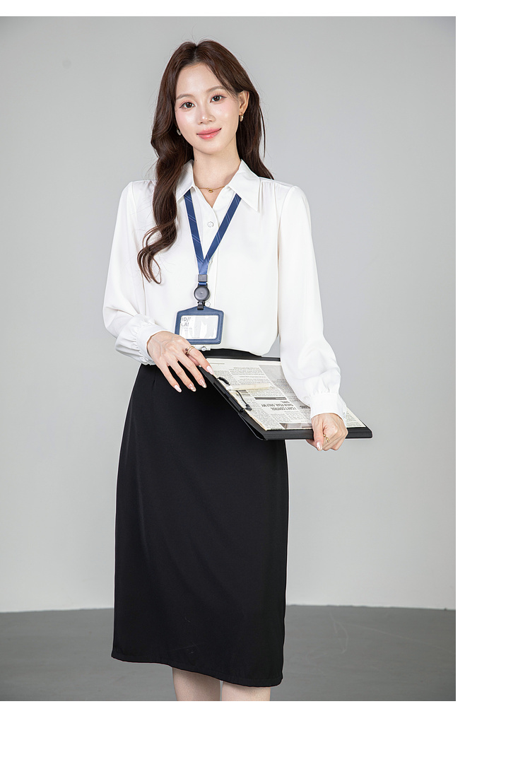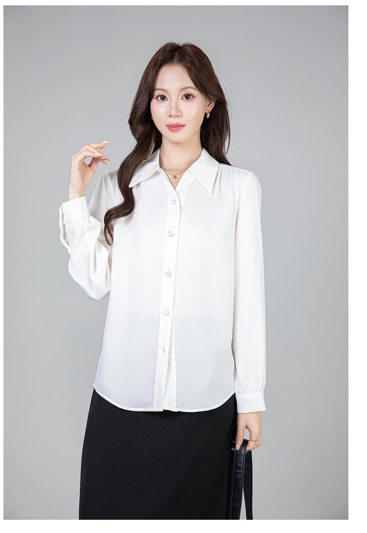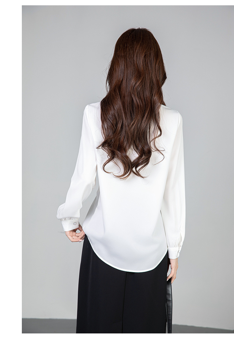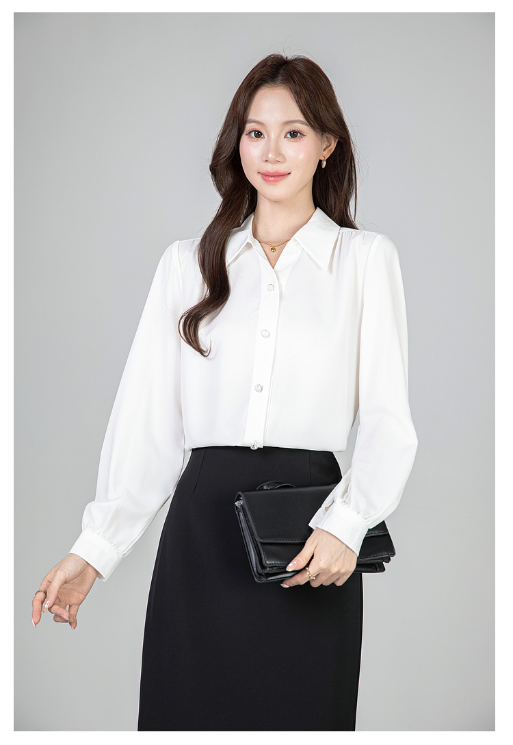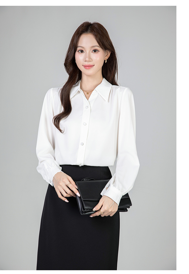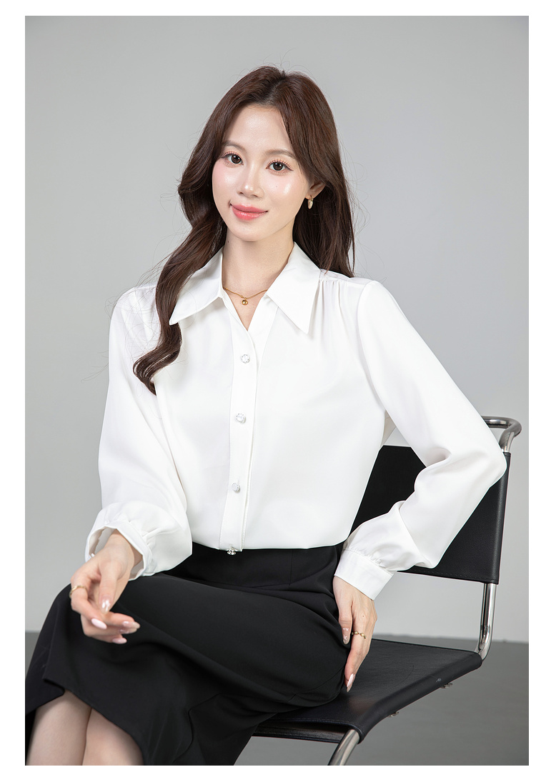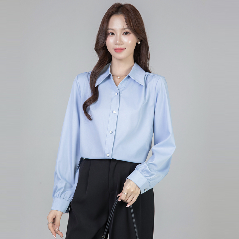MY13690# 蓝色雪纺衫新款长袖韩版纯色OL职业通勤气质纯色上衣女女裝貨源服裝批發