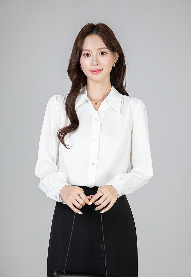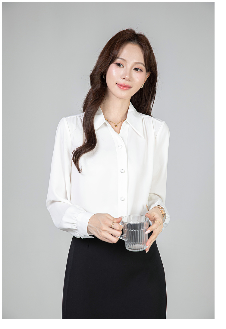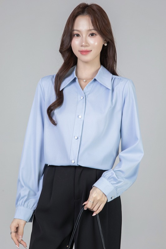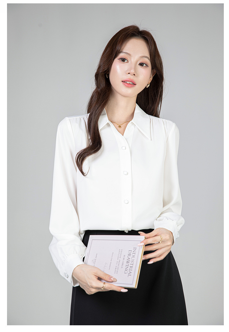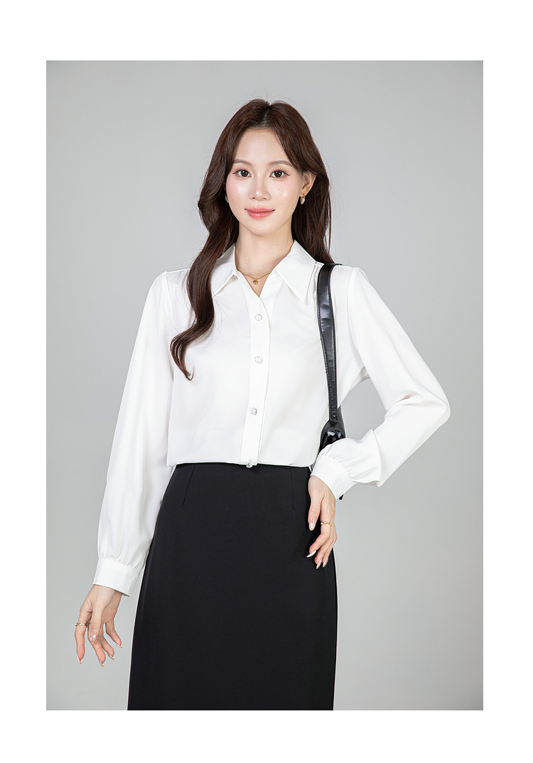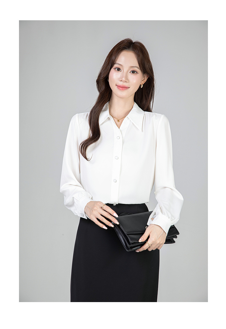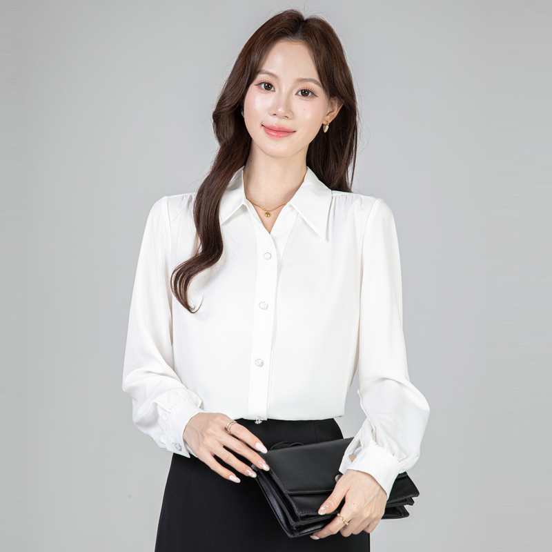 MY13690# 蓝色雪纺衫新款长袖韩版纯色OL职业通勤气质纯色上衣女女裝貨源服裝批發