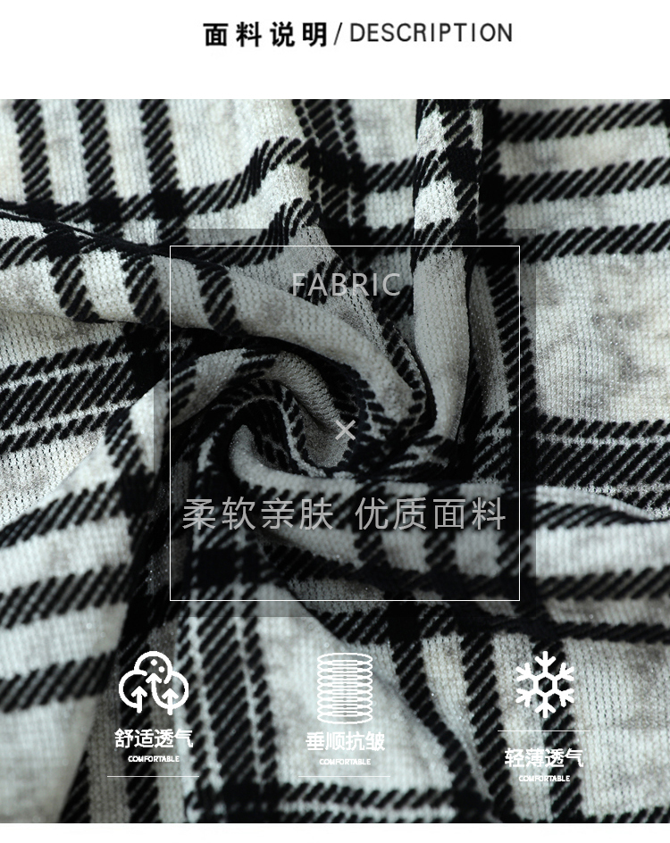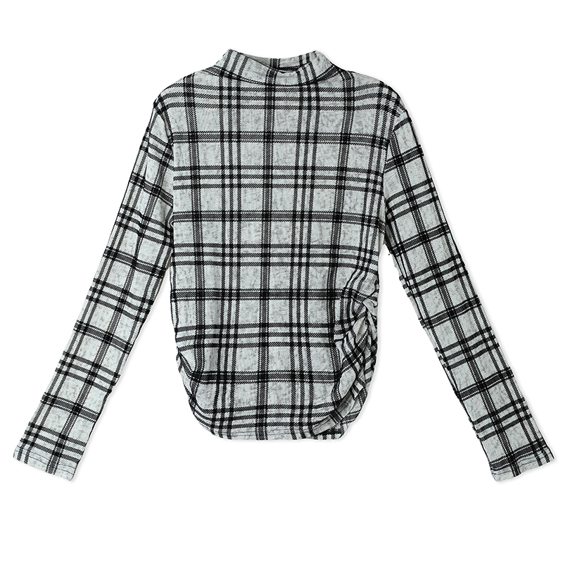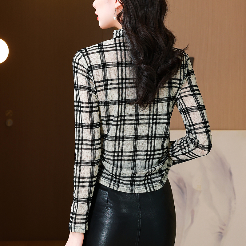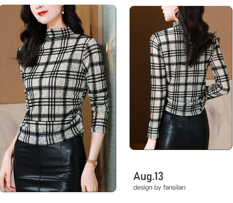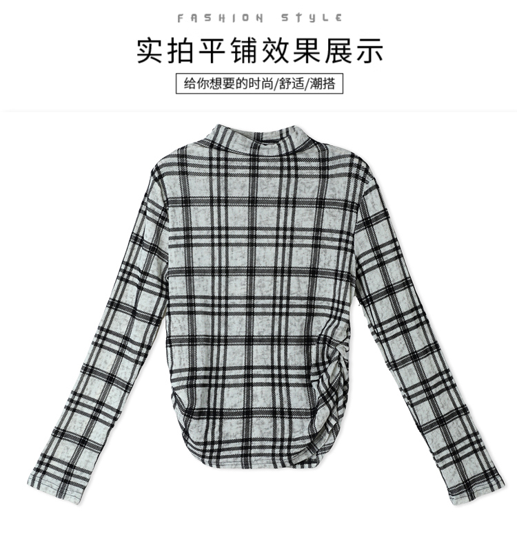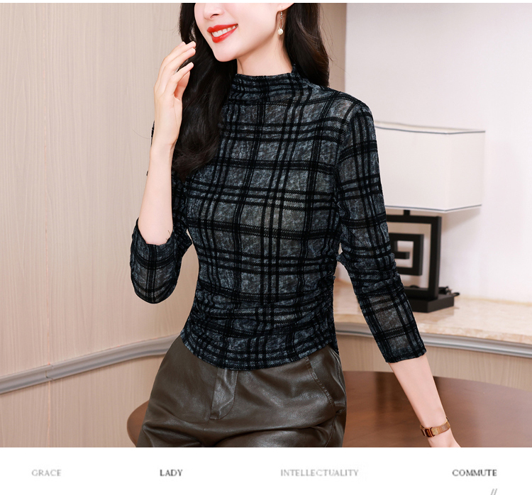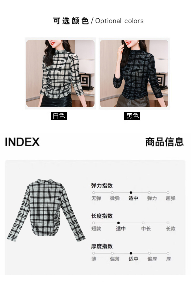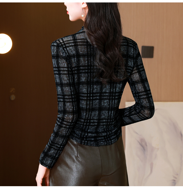 MY13698# 亮丝网纱格子植绒打底衫长袖女女裝貨源服裝批發