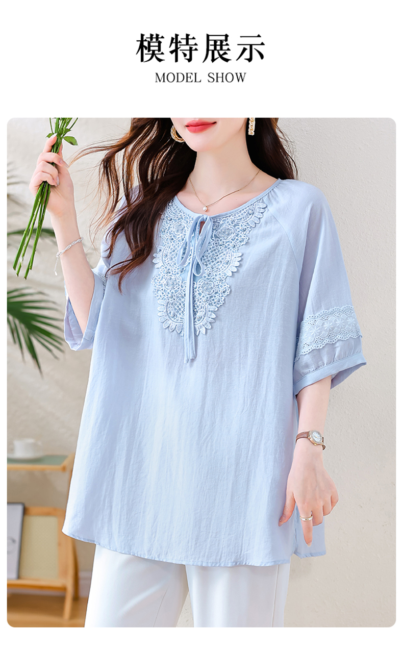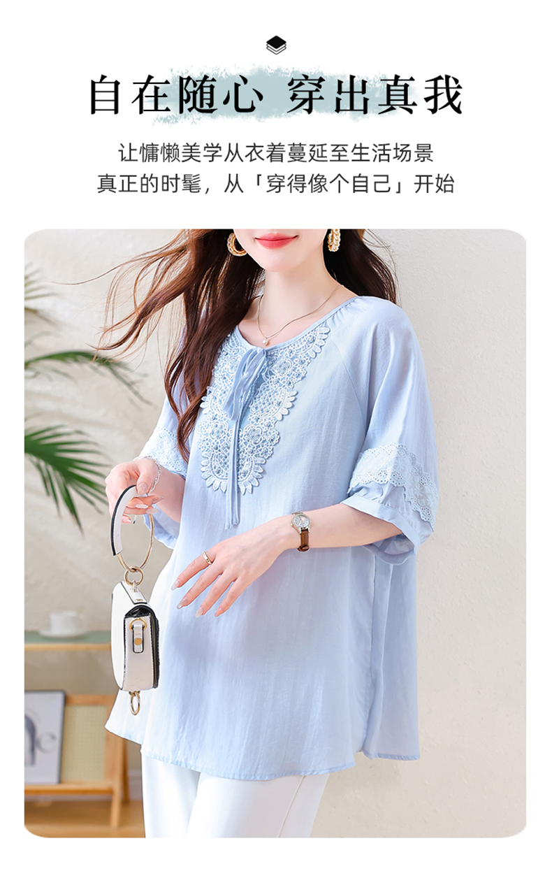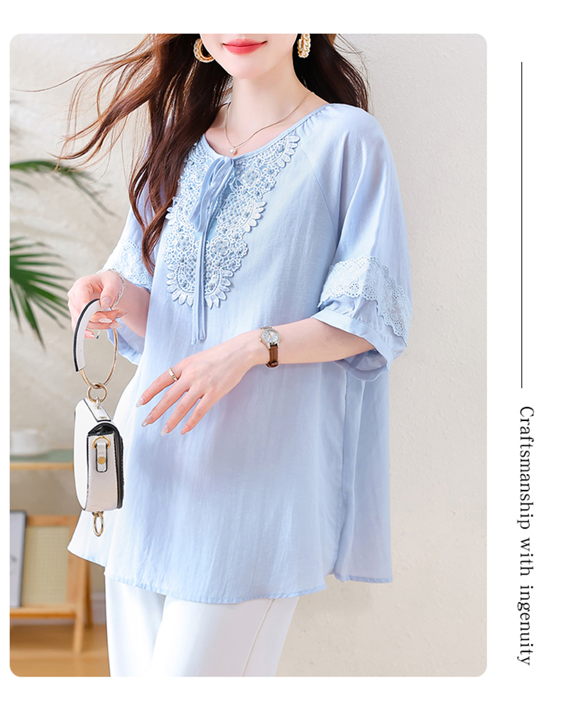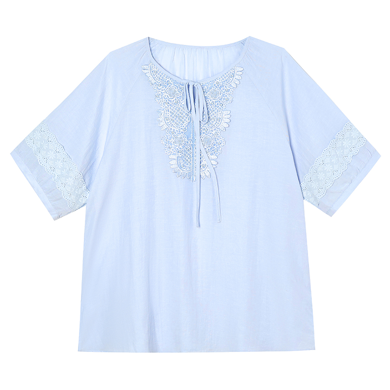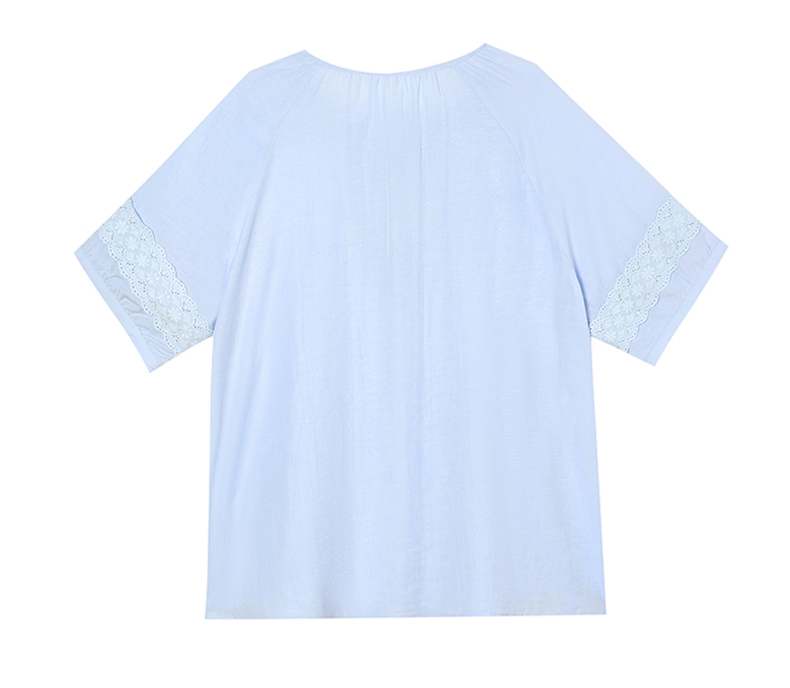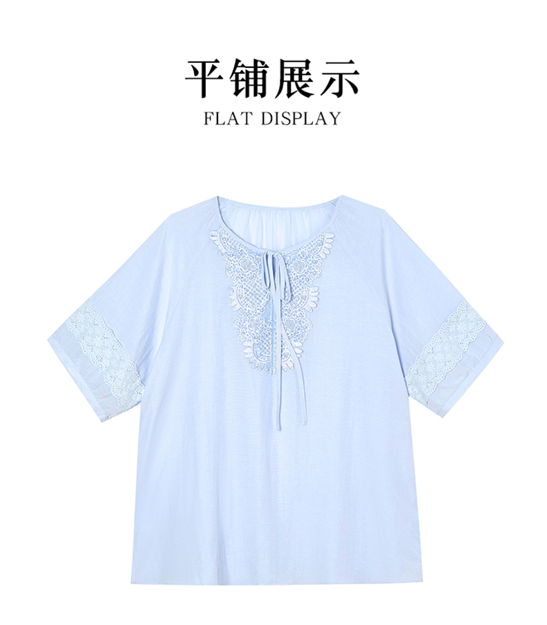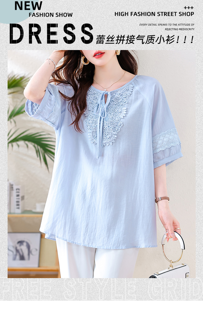 MY13769#时尚蕾丝雪纺衬衫女夏季新款短袖衬衣欧货大码女装上衣
