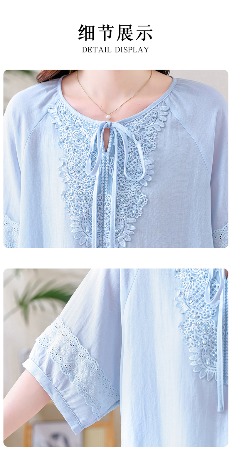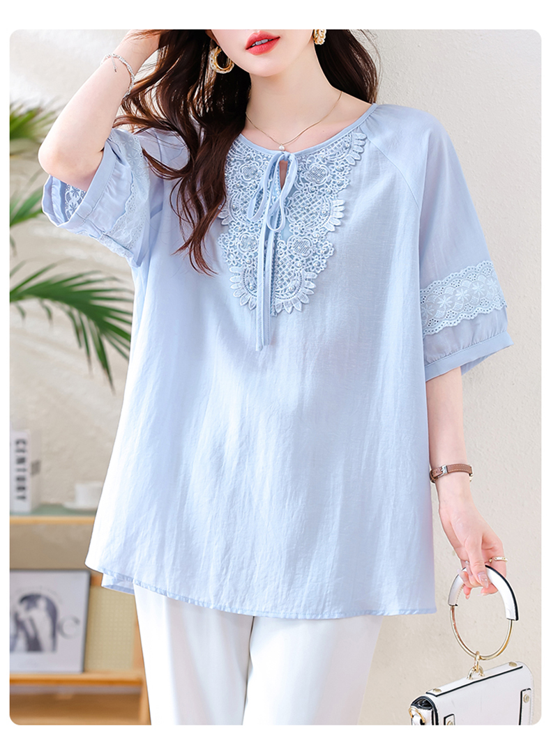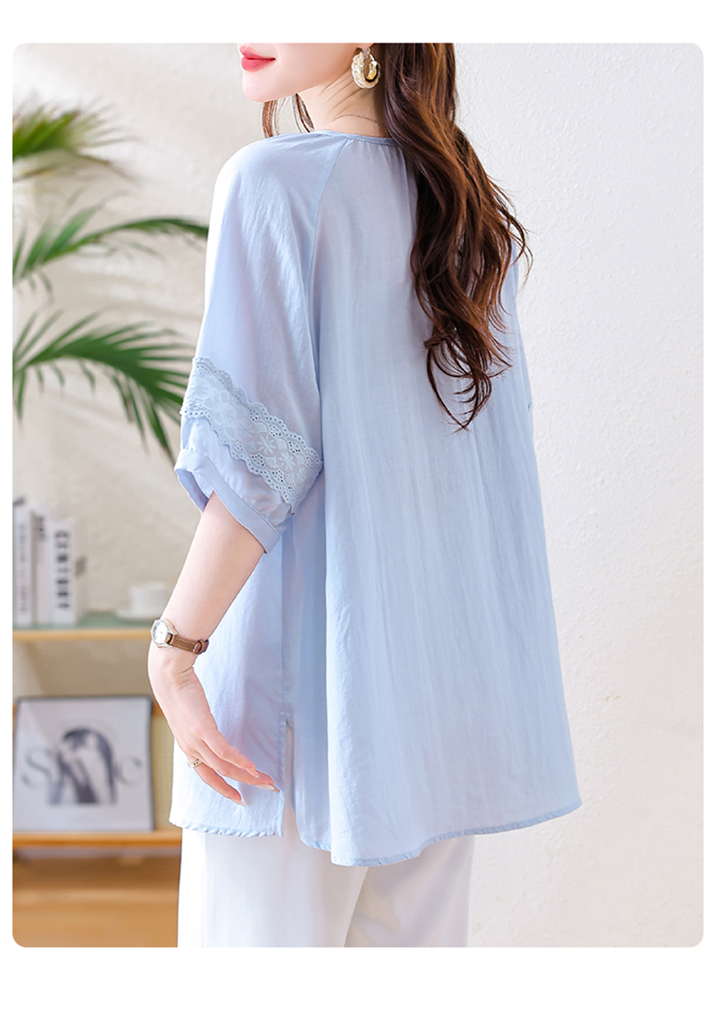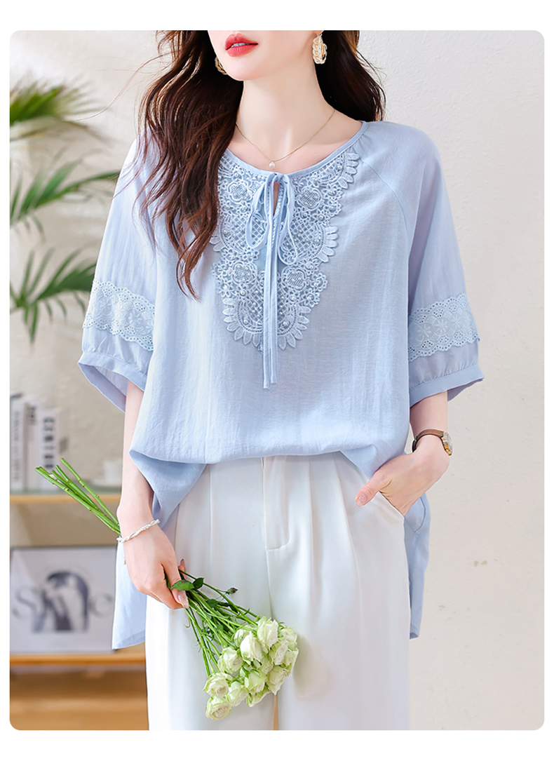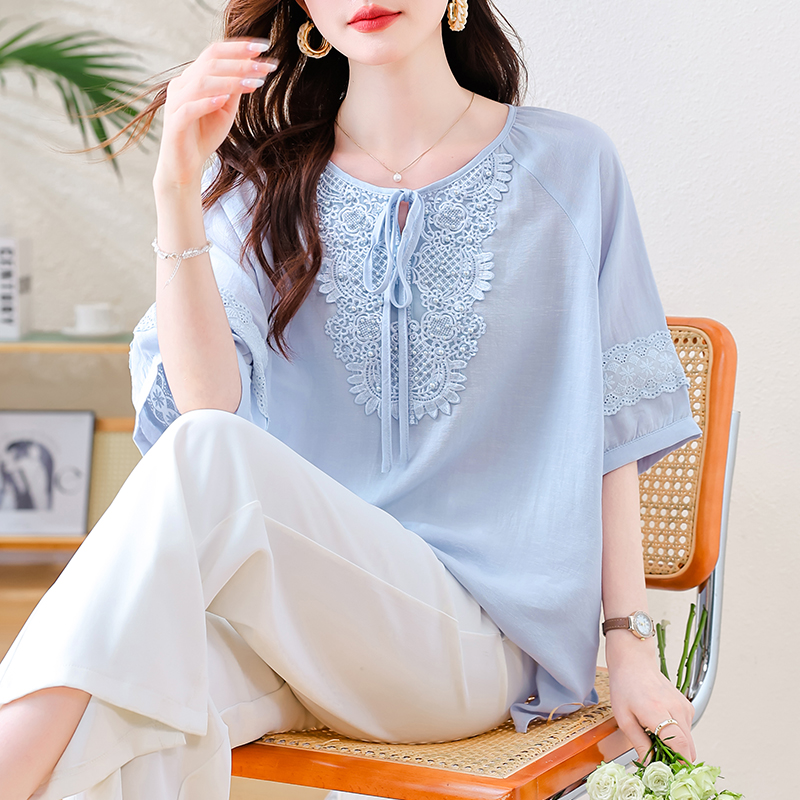 MY13769#时尚蕾丝雪纺衬衫女夏季新款短袖衬衣欧货大码女装上衣
