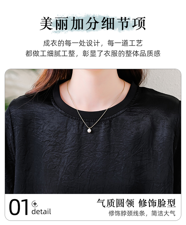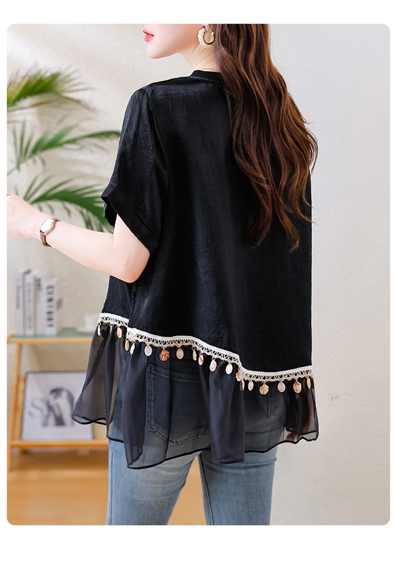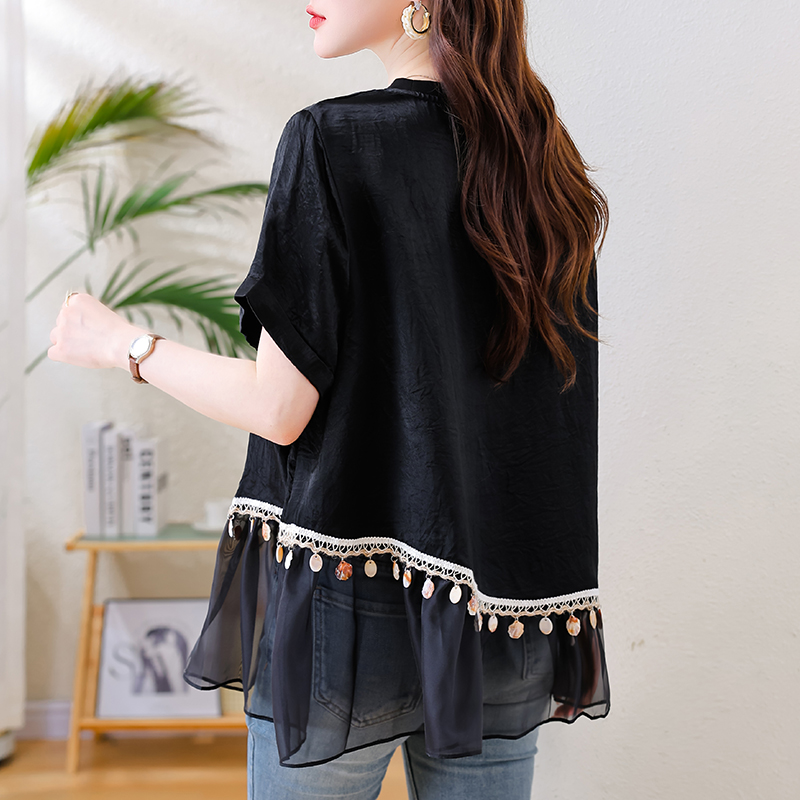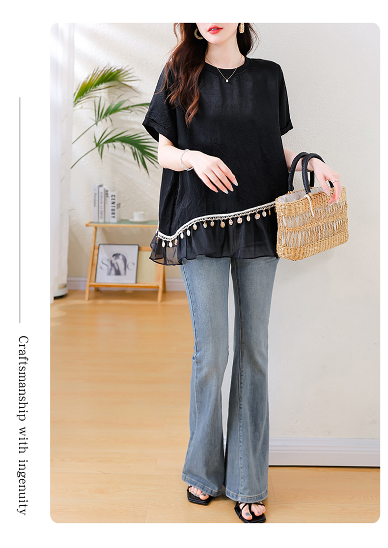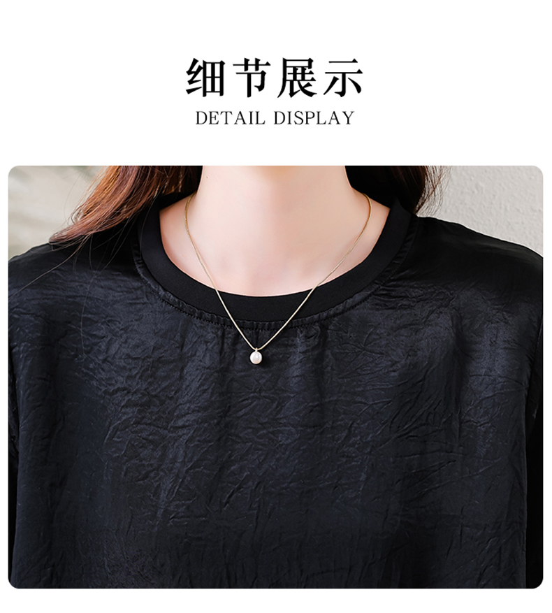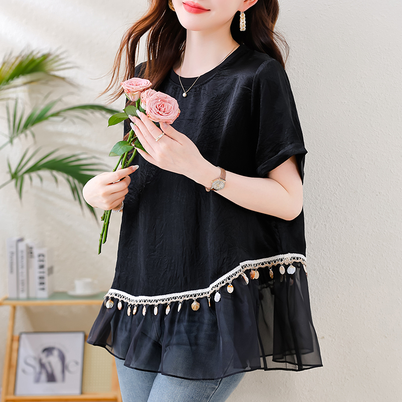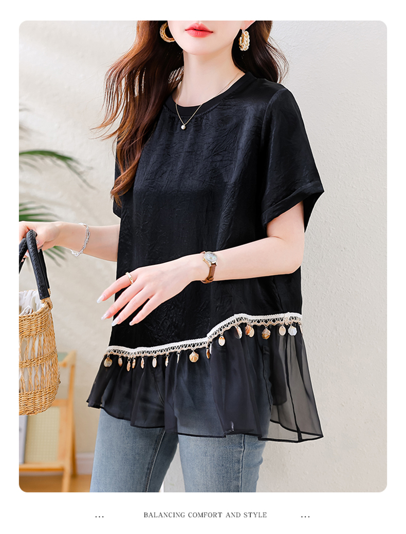 MY13770#圆领亮片拼接T恤女夏季新款短袖上衣欧洲站大码女装