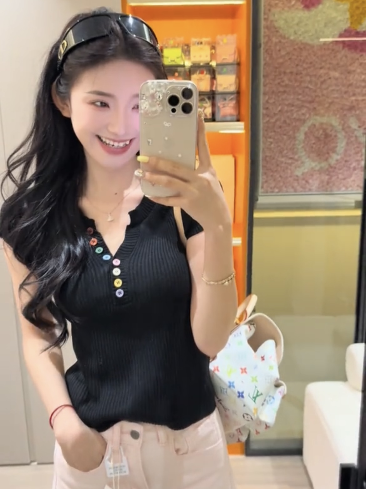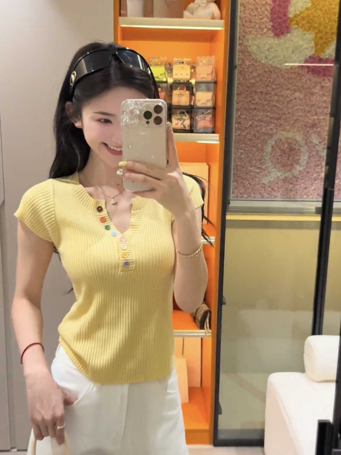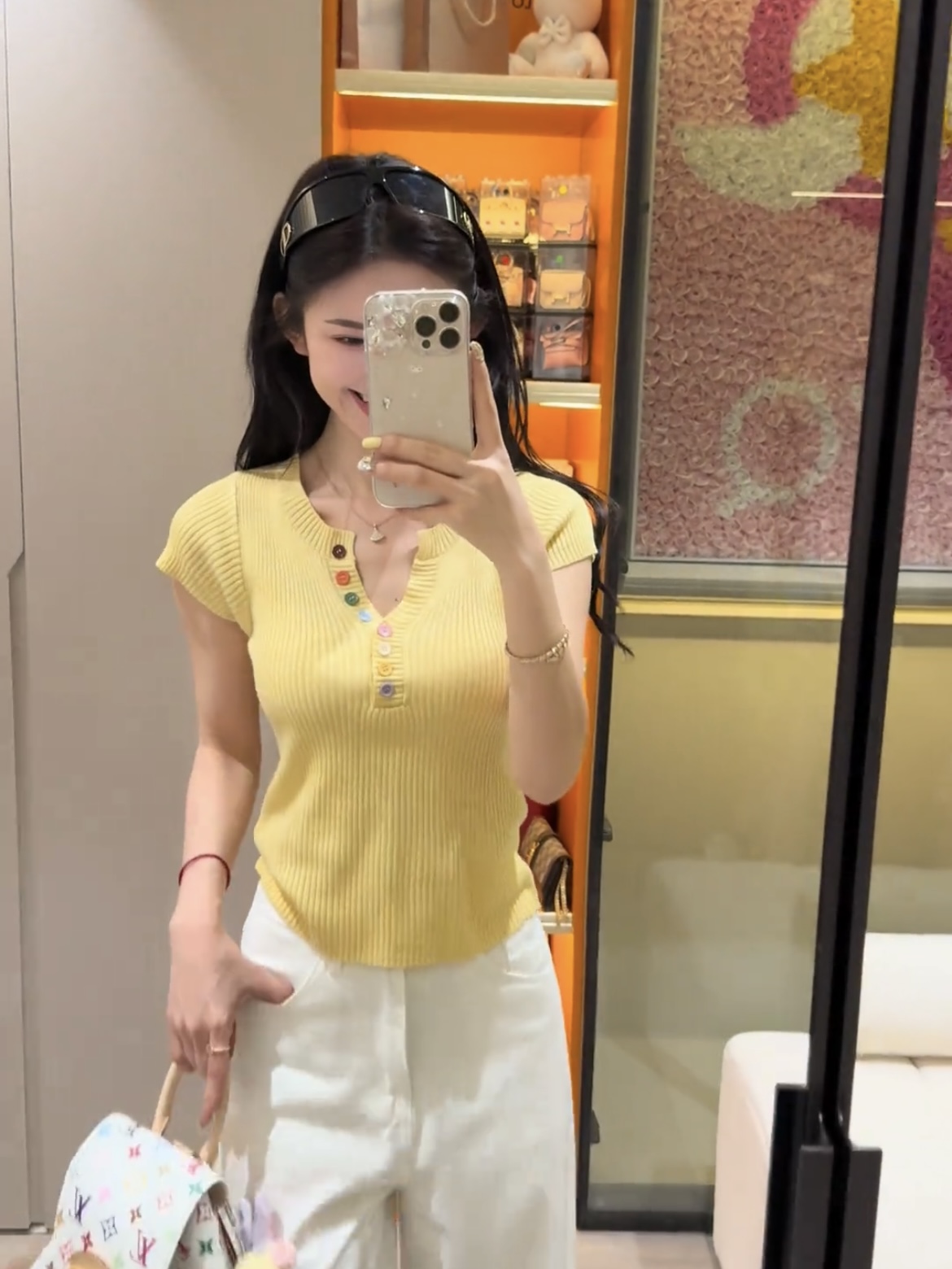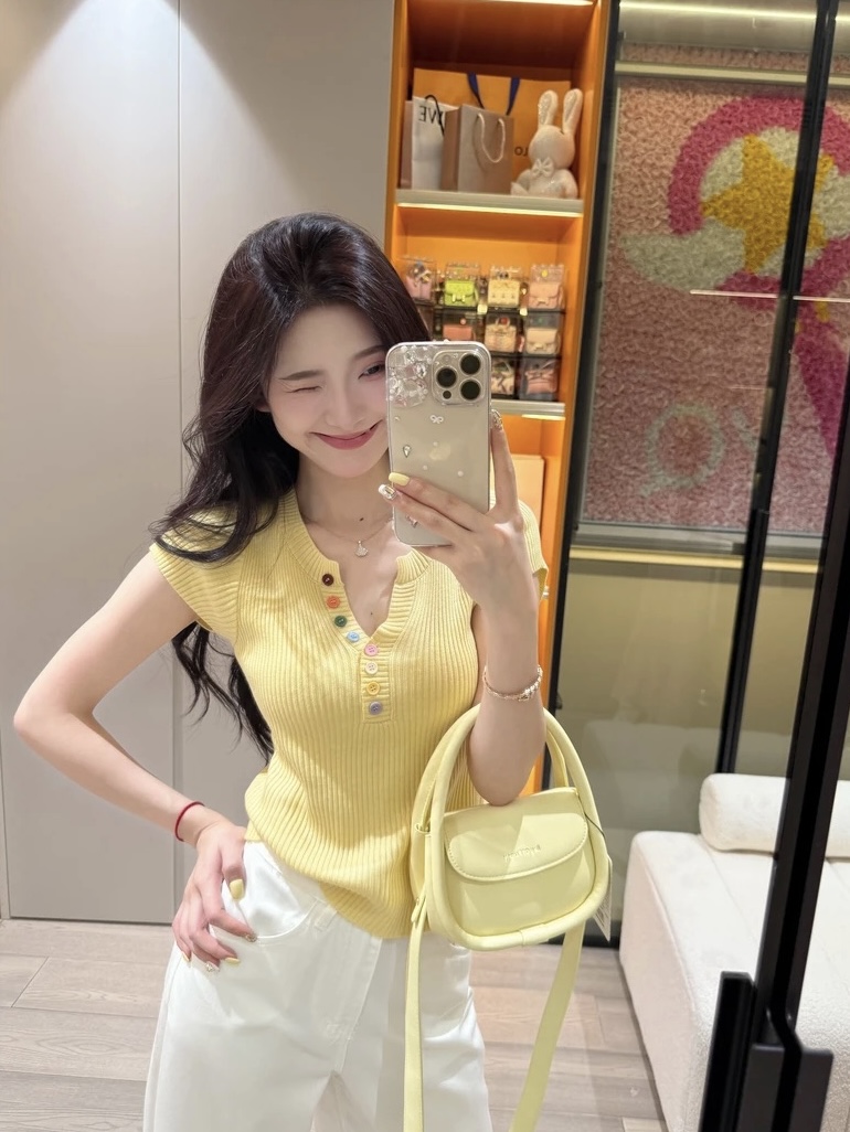 MY13782# 女裝貨源韩版彩色纽扣V领小香风针织衫夏新款减龄时尚别致显瘦上衣女裝貨源服裝批發服裝批發