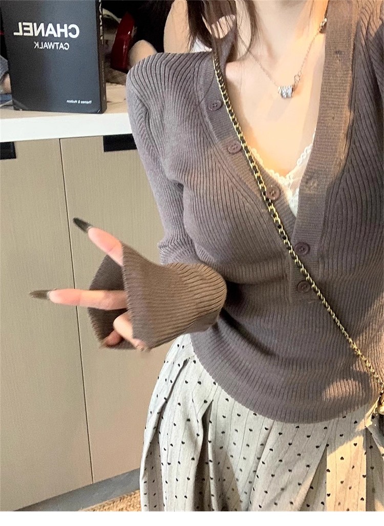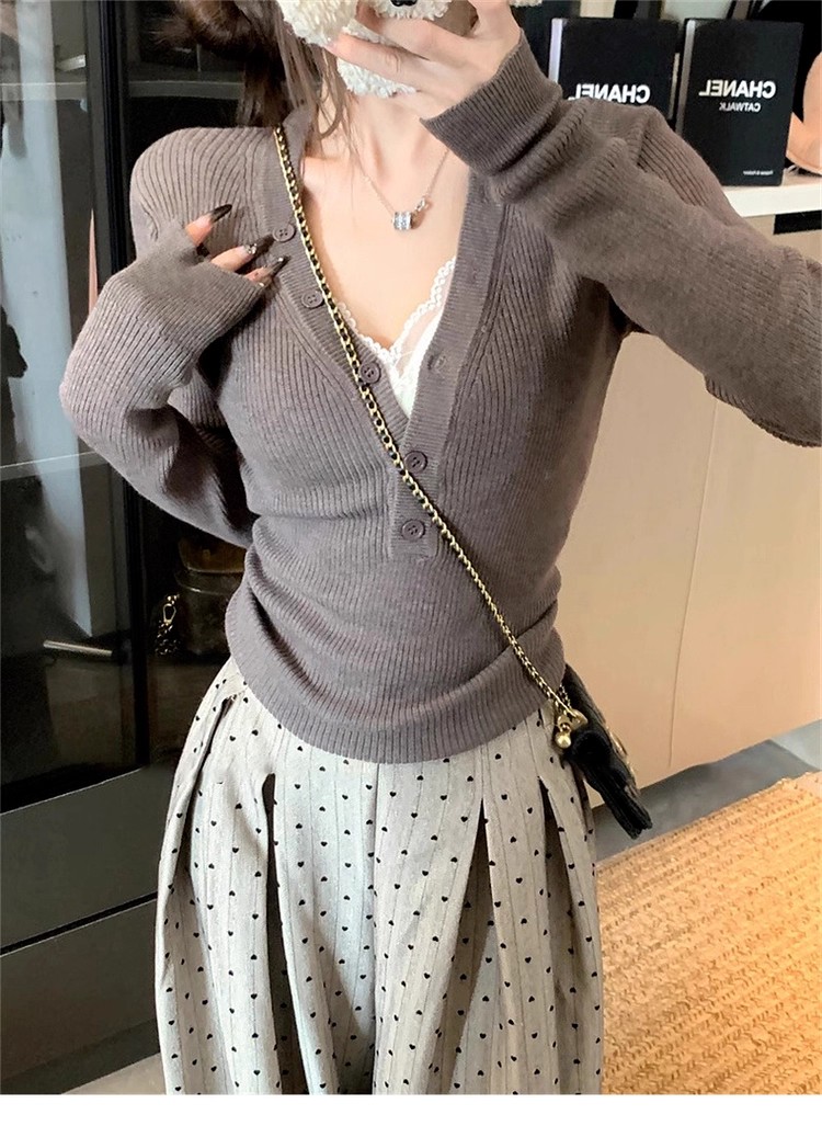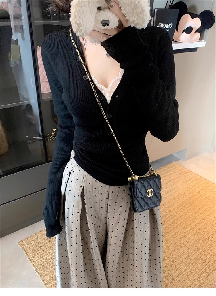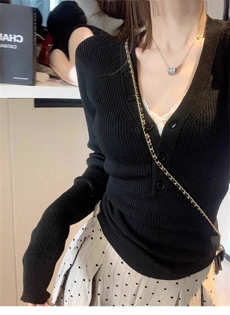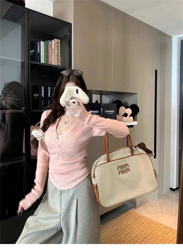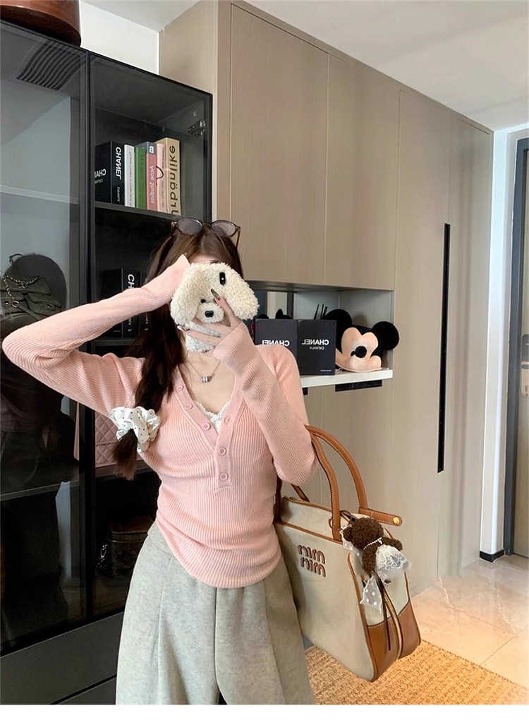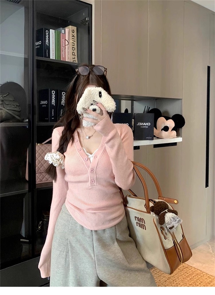 MY13803# 女裝貨源粉色v领紧身内搭针织衫韩系设计感纯欲修身显瘦打底上衣女裝貨源服裝批發服裝批發