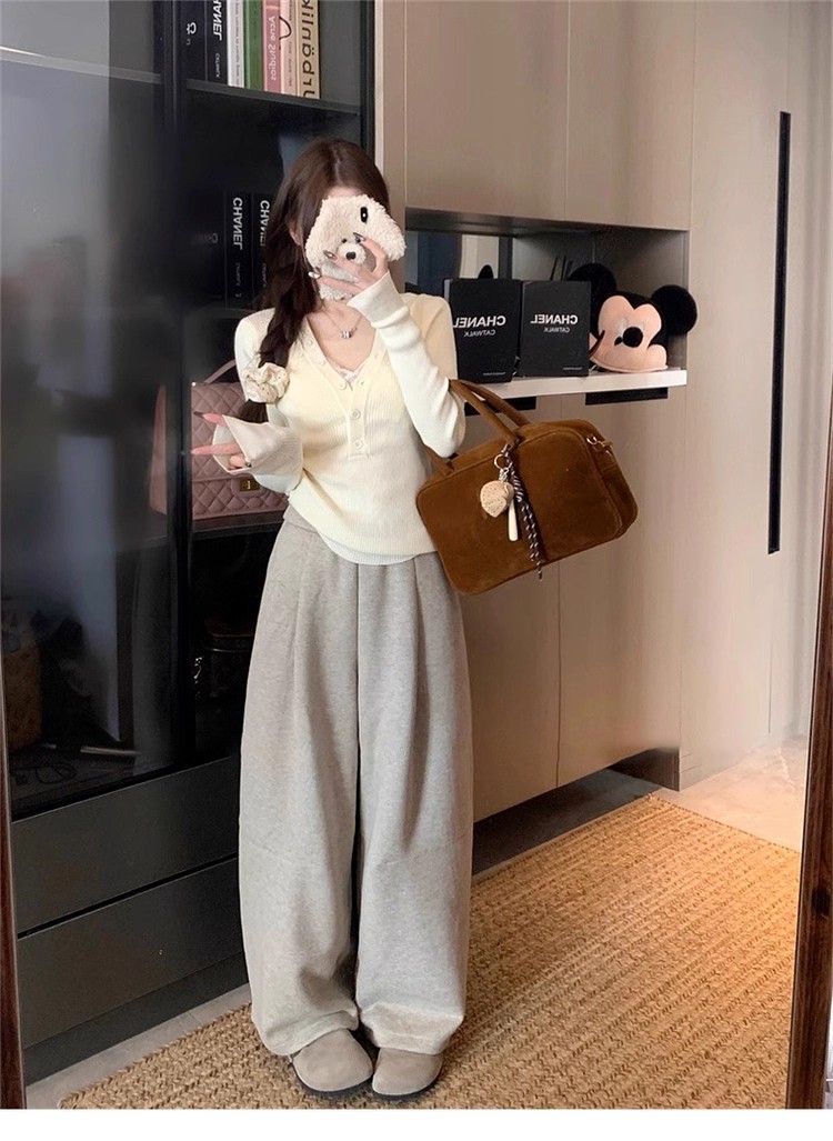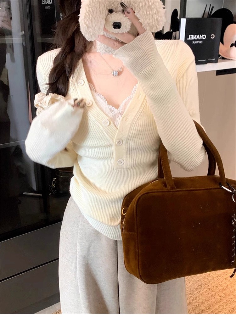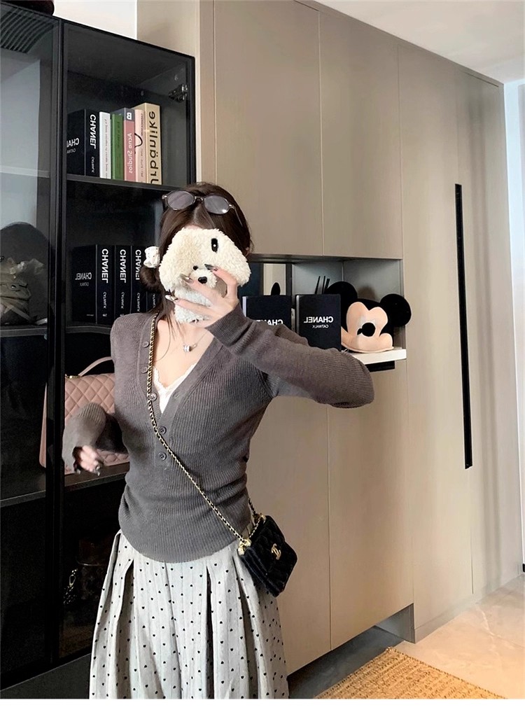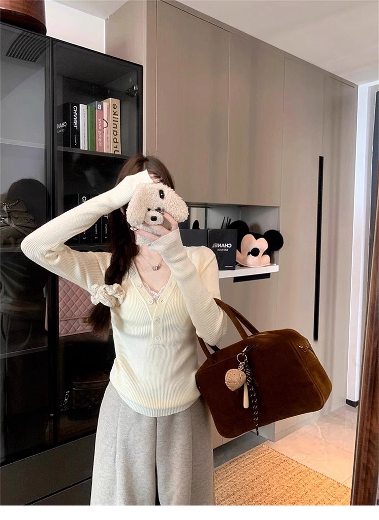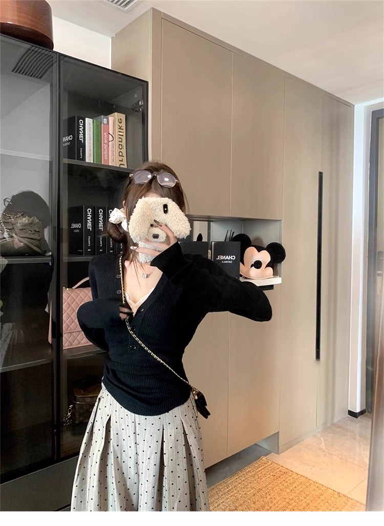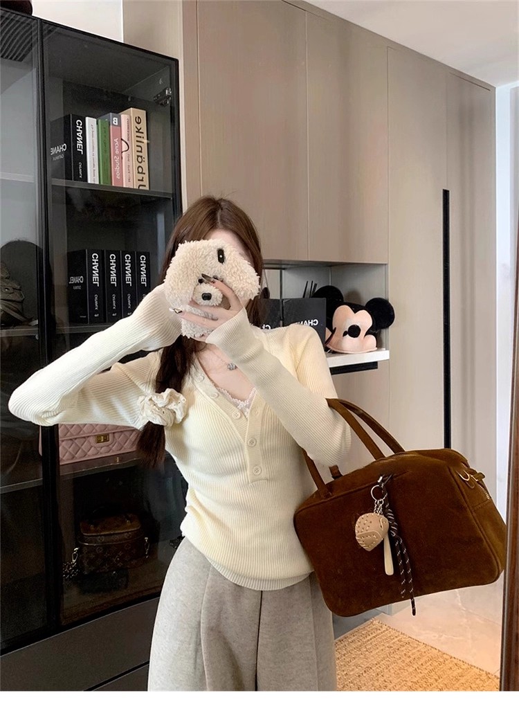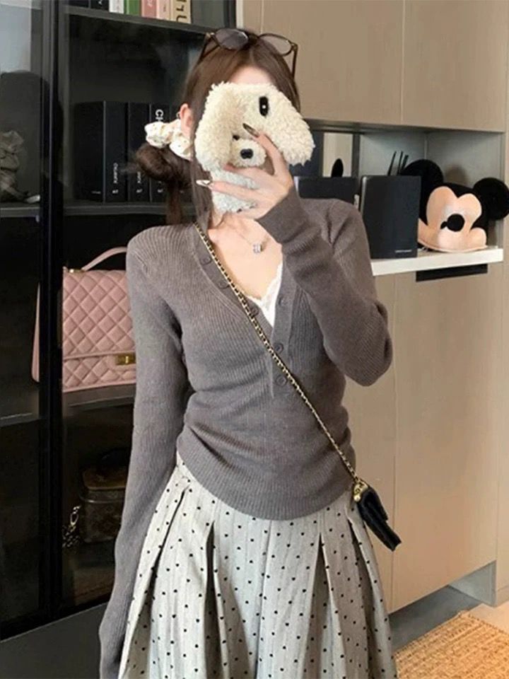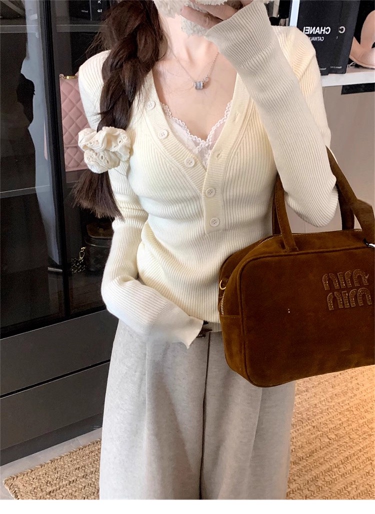 MY13803# 女裝貨源粉色v领紧身内搭针织衫韩系设计感纯欲修身显瘦打底上衣女裝貨源服裝批發服裝批發