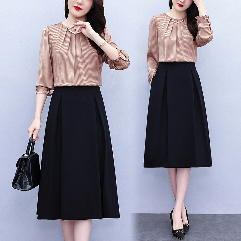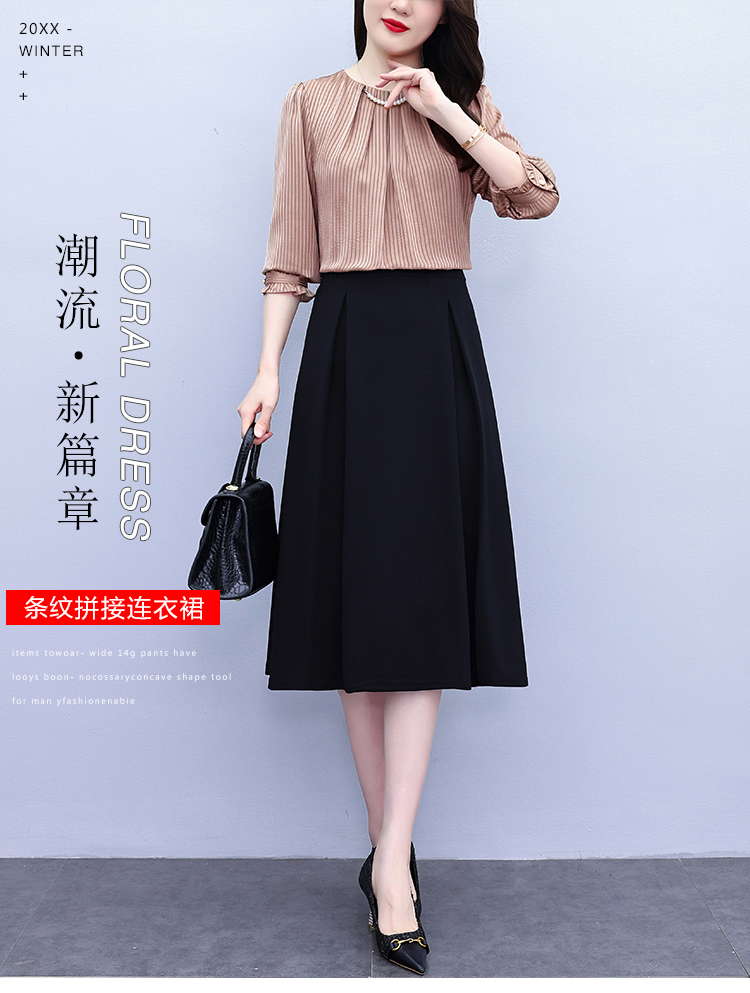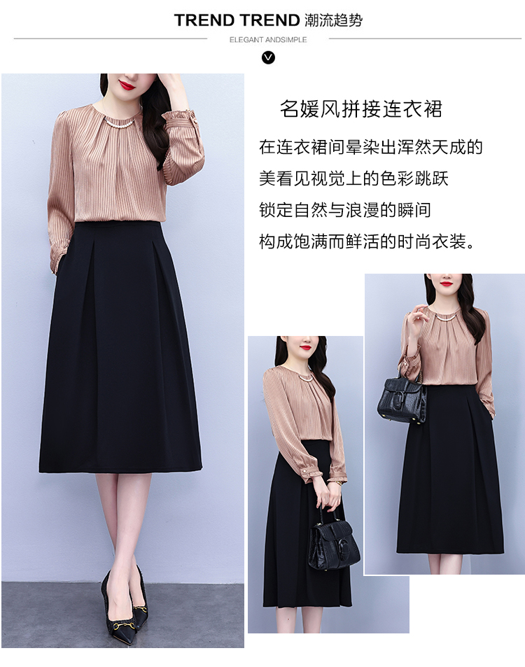 MY13814# 女裝貨源新款时尚气质假两件拼接裙大码女装显瘦连衣裙女裝貨源服裝批發服裝批發