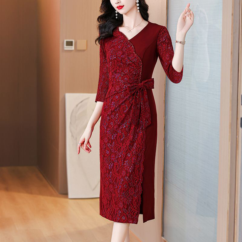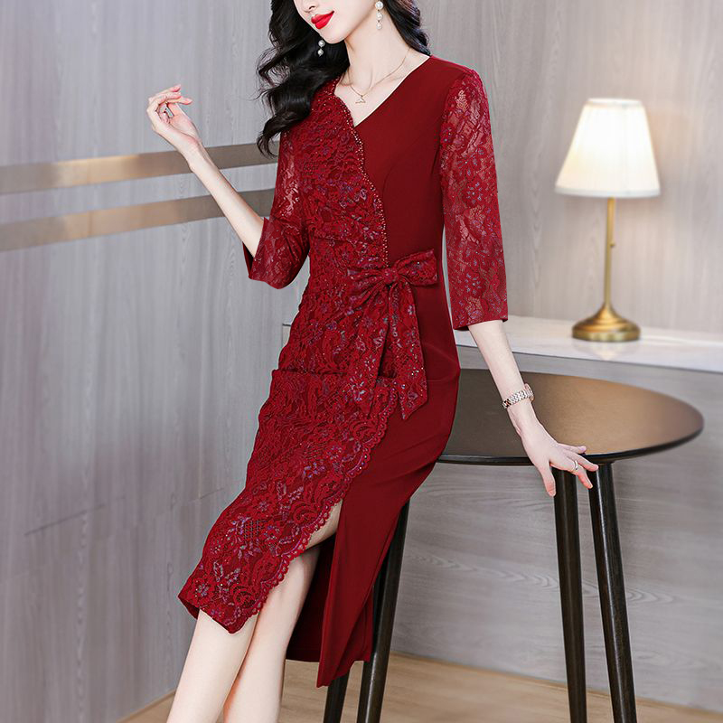 MY13847# 女裝貨源喜妈妈婚宴礼服新款喜婆婆高贵优雅显瘦气质连衣裙女女裝貨源服裝批發服裝批發