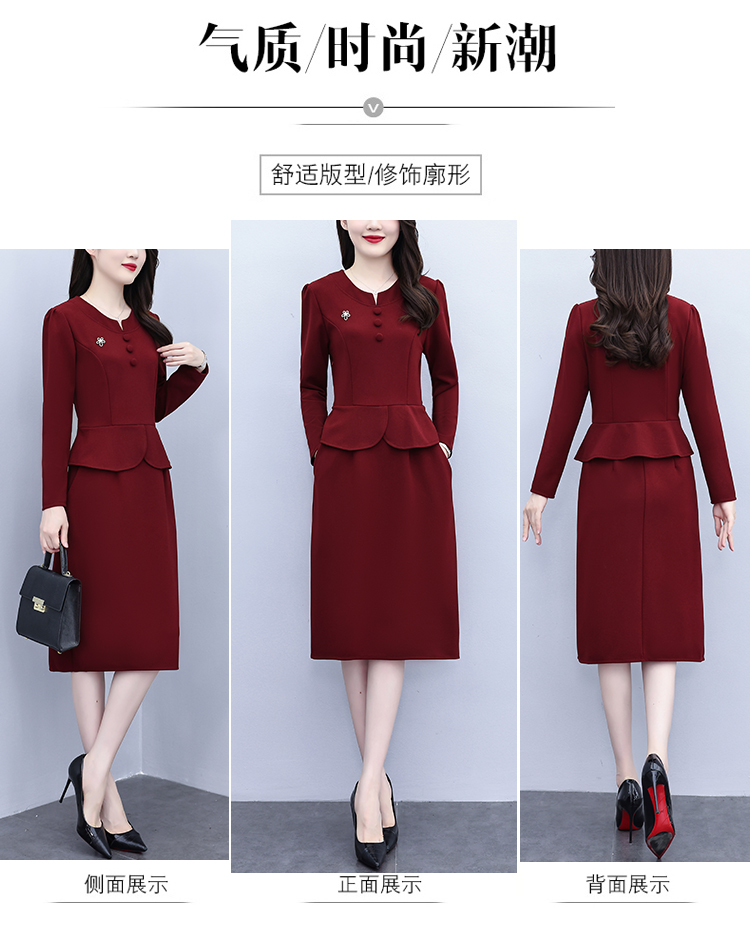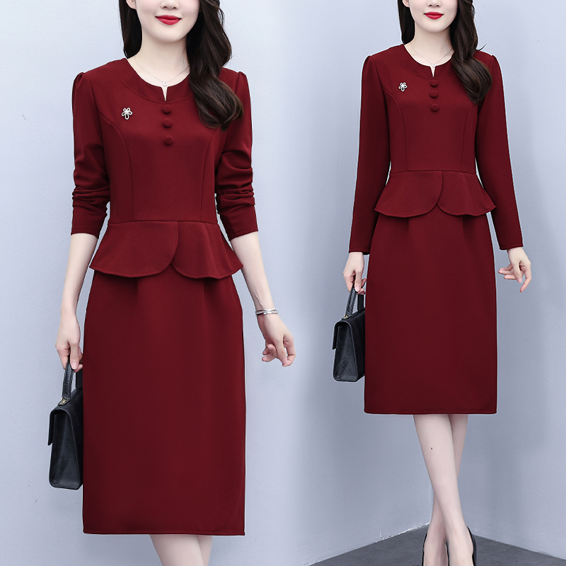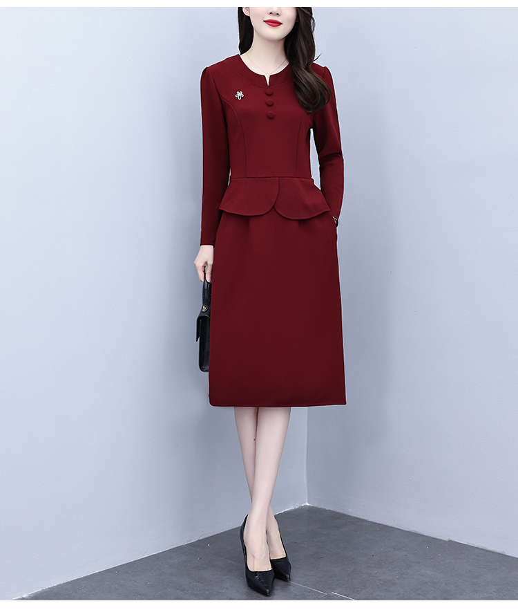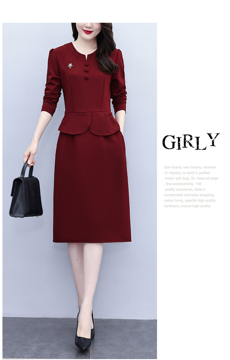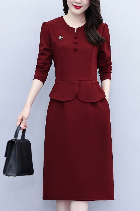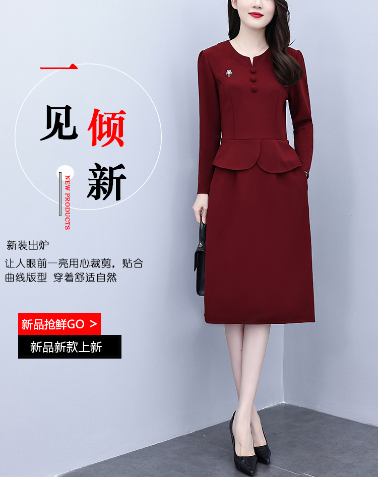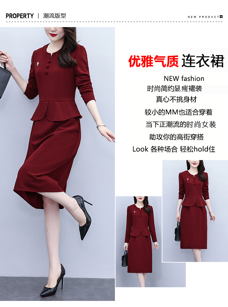 MY13852# 女裝貨源安哥拉红加厚裙子新款高级感气质收腰显瘦假两件连衣裙女女裝貨源服裝批發服裝批發