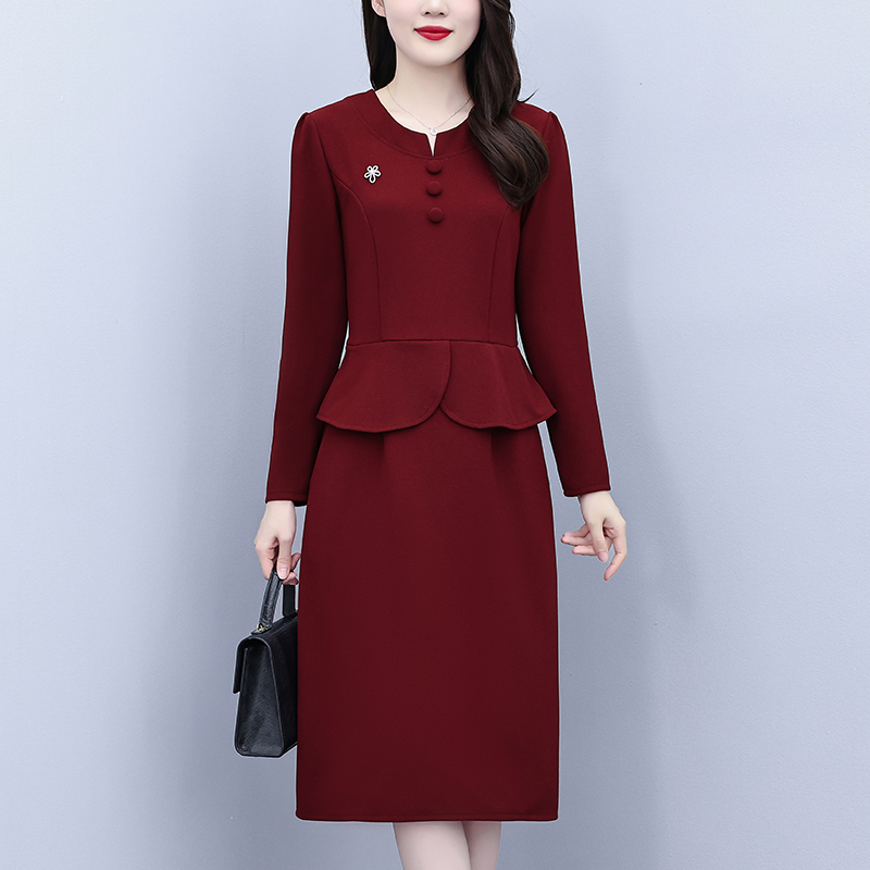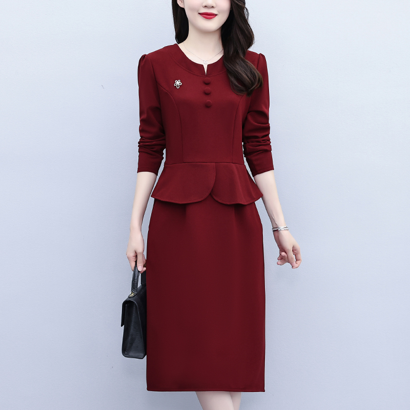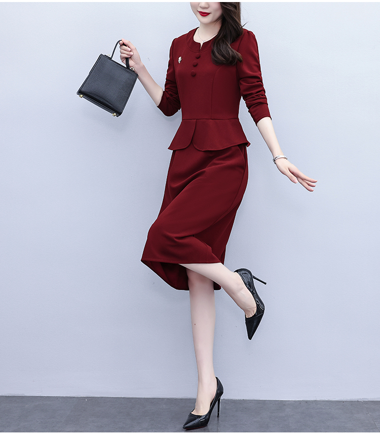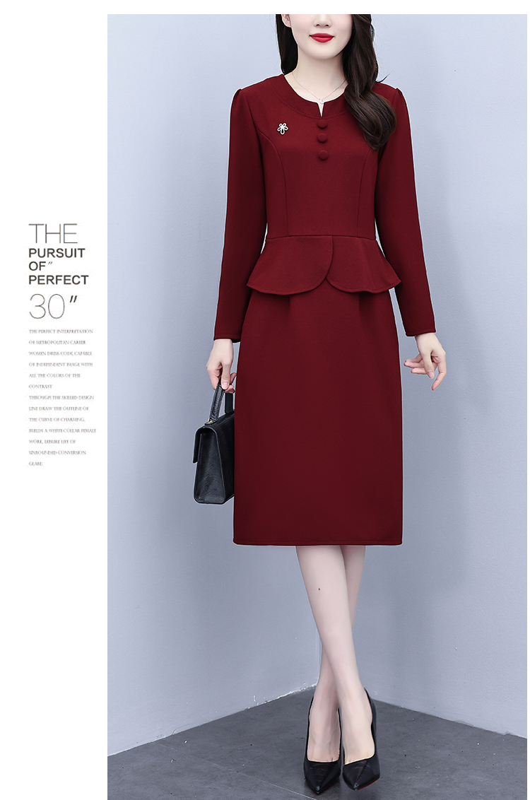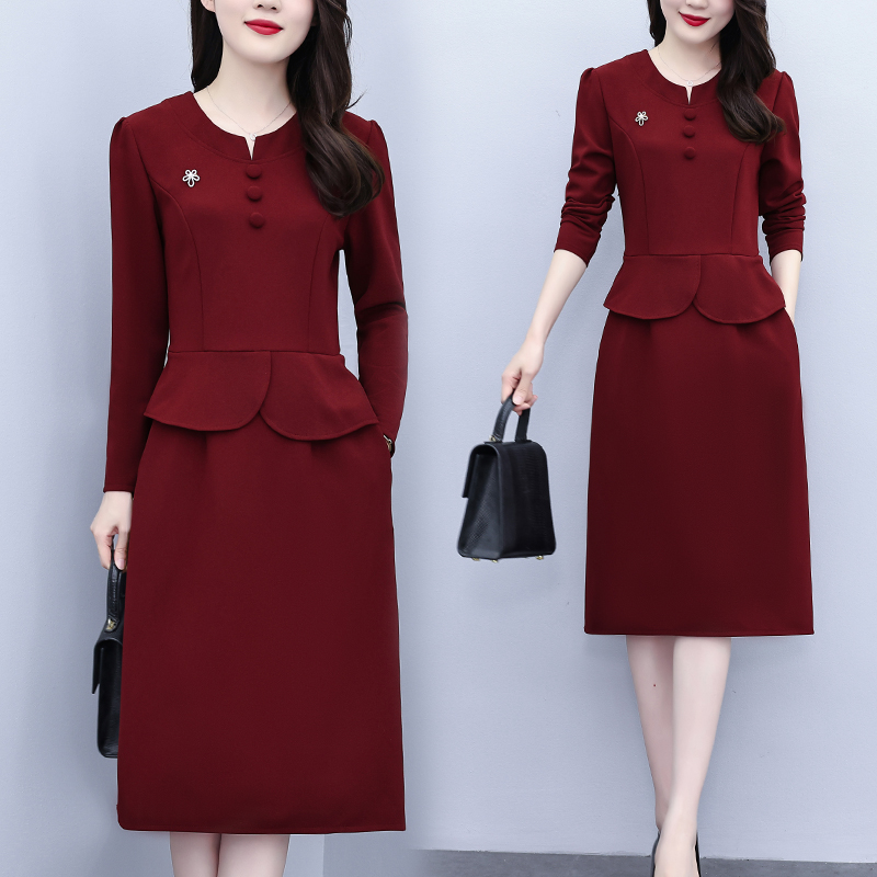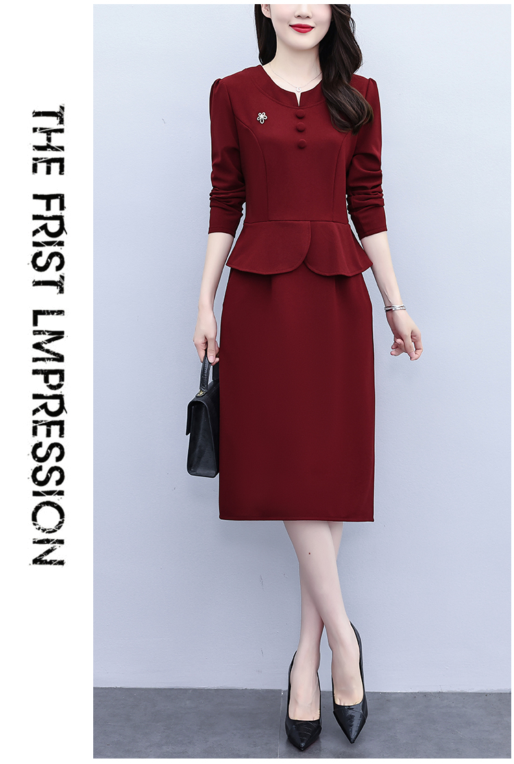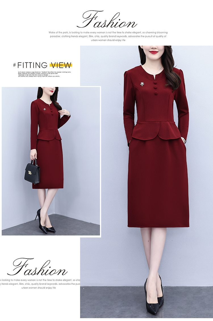 MY13852# 女裝貨源安哥拉红加厚裙子新款高级感气质收腰显瘦假两件连衣裙女女裝貨源服裝批發服裝批發