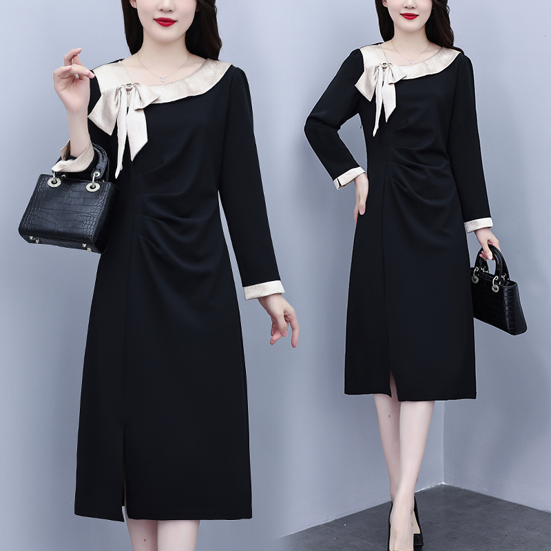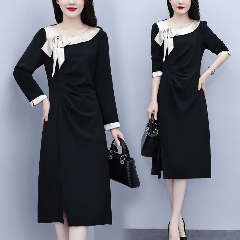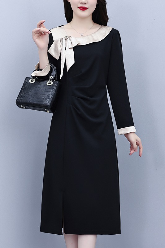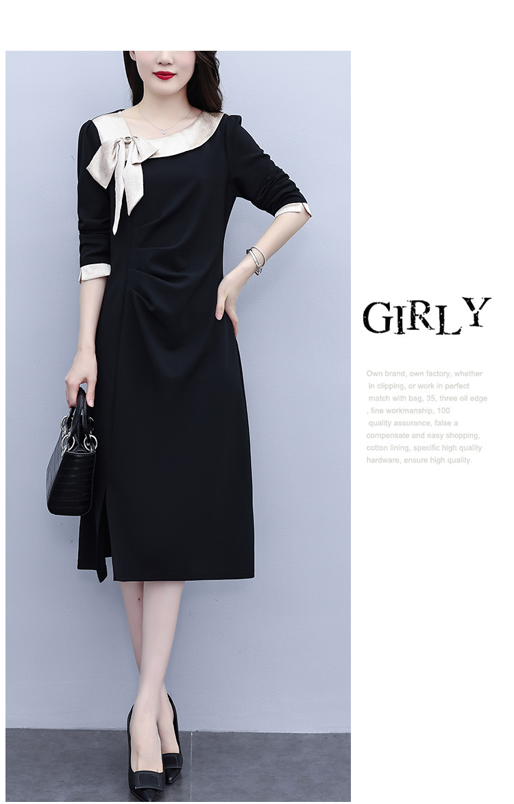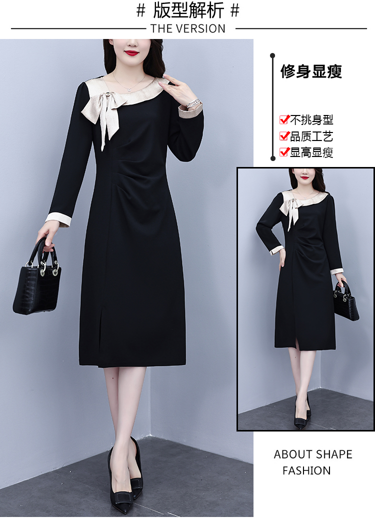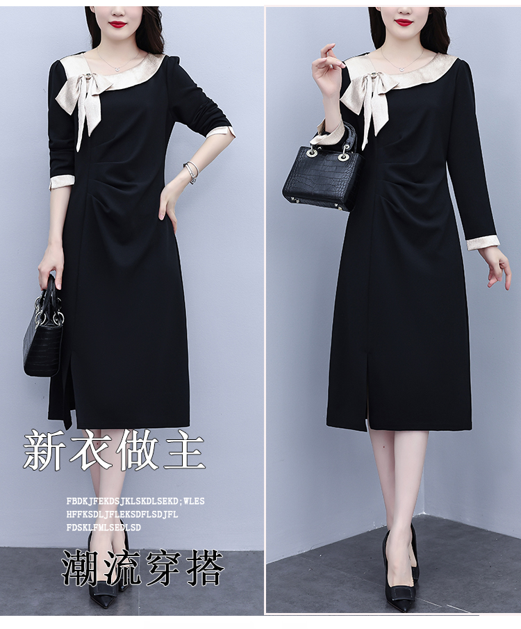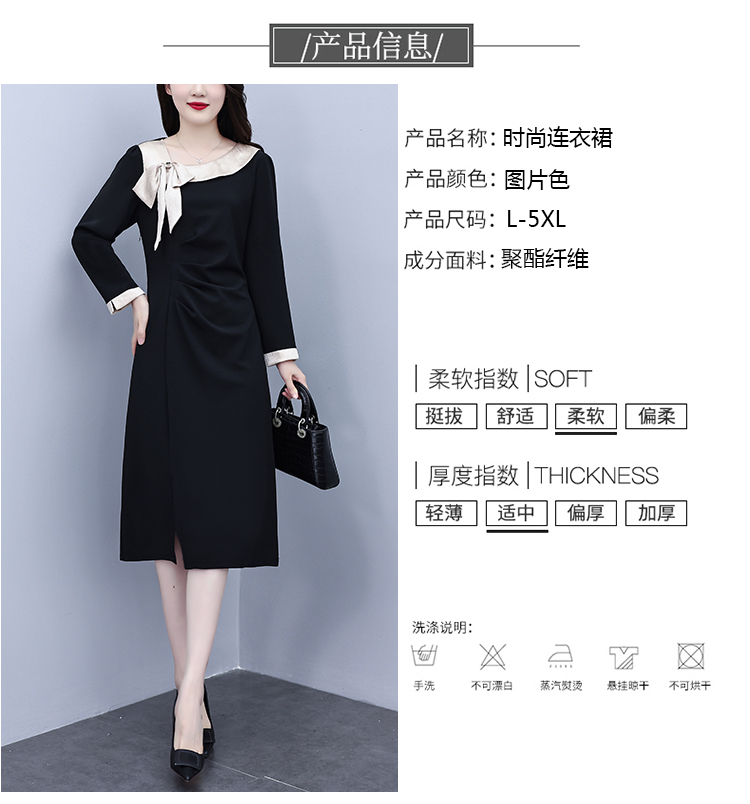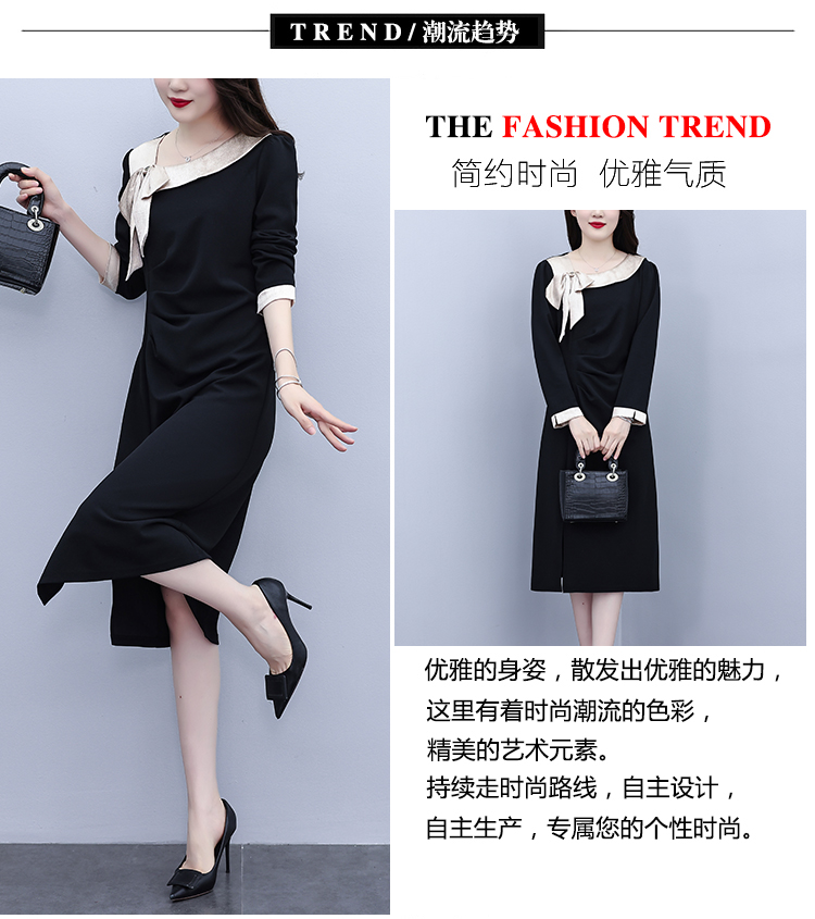 MY13853# 女裝貨源大码裙子新款法式洋气拼接显瘦御姐风气质减龄长袖连衣裙女裝貨源服裝批發服裝批發