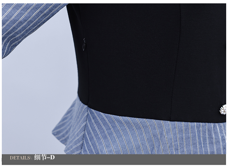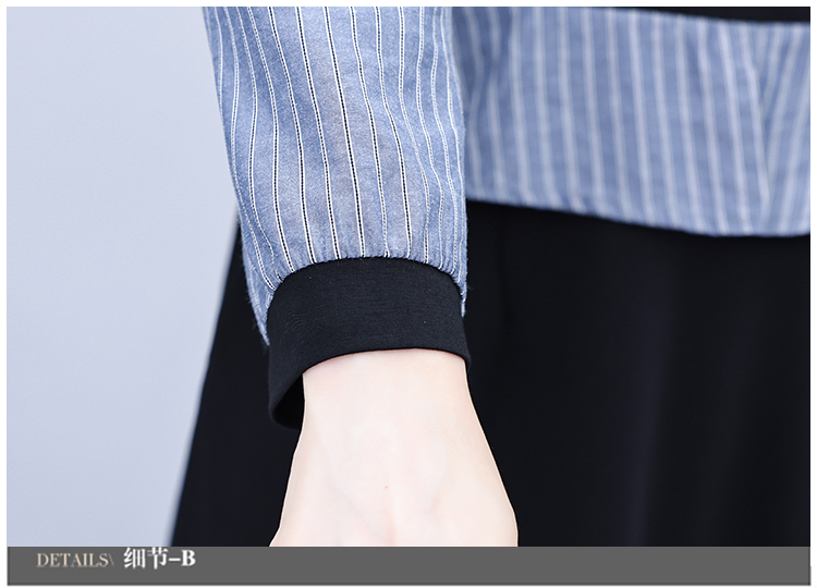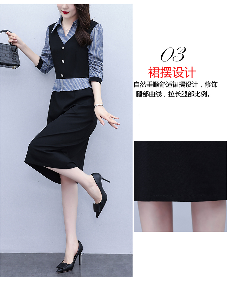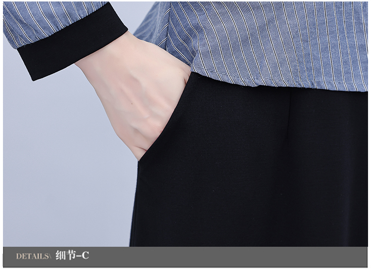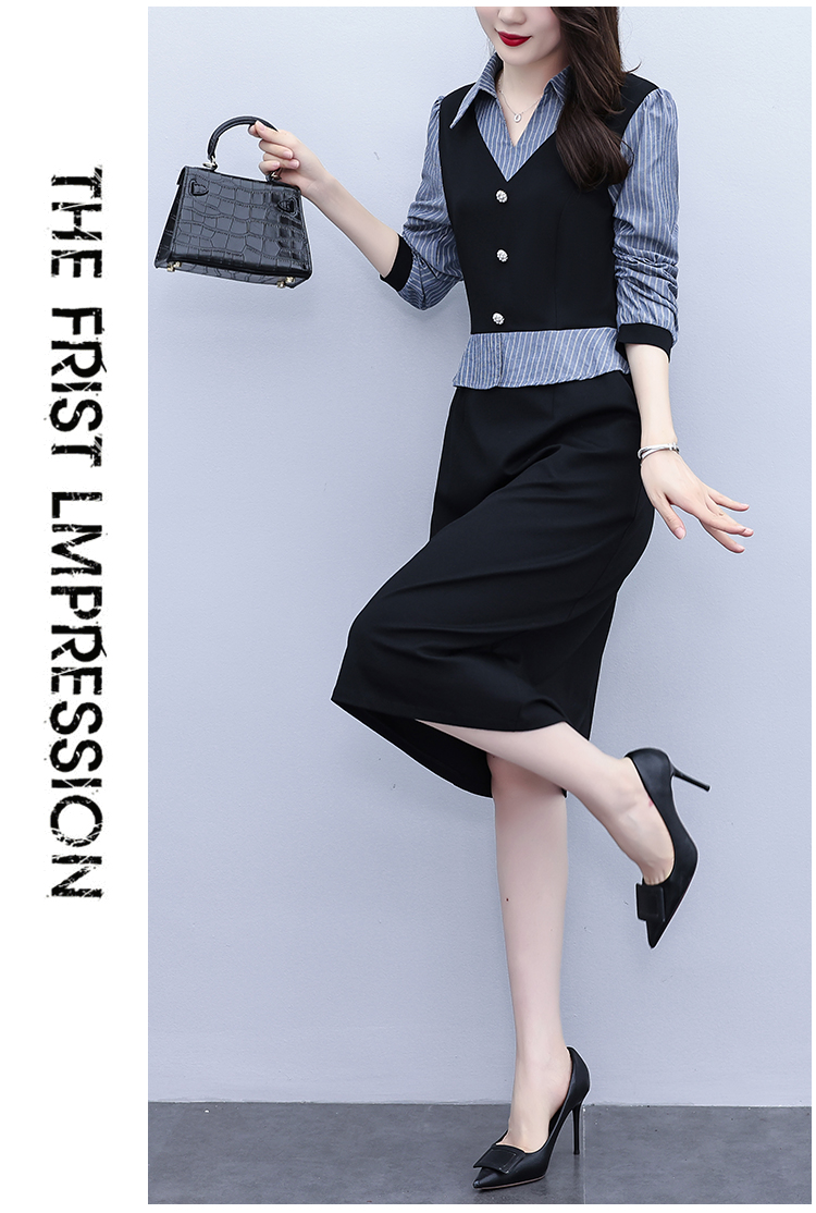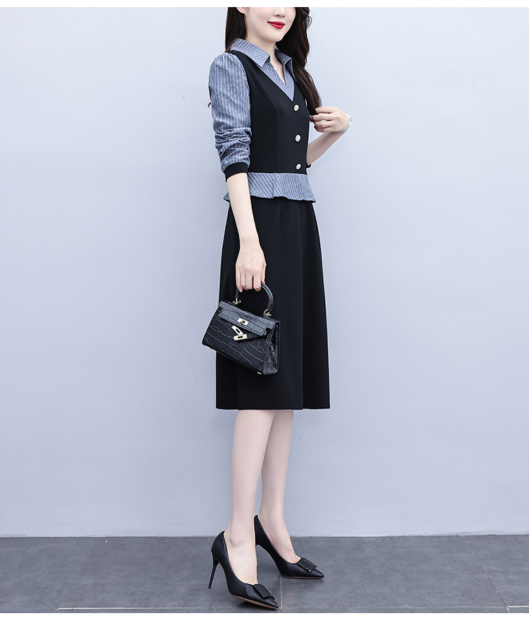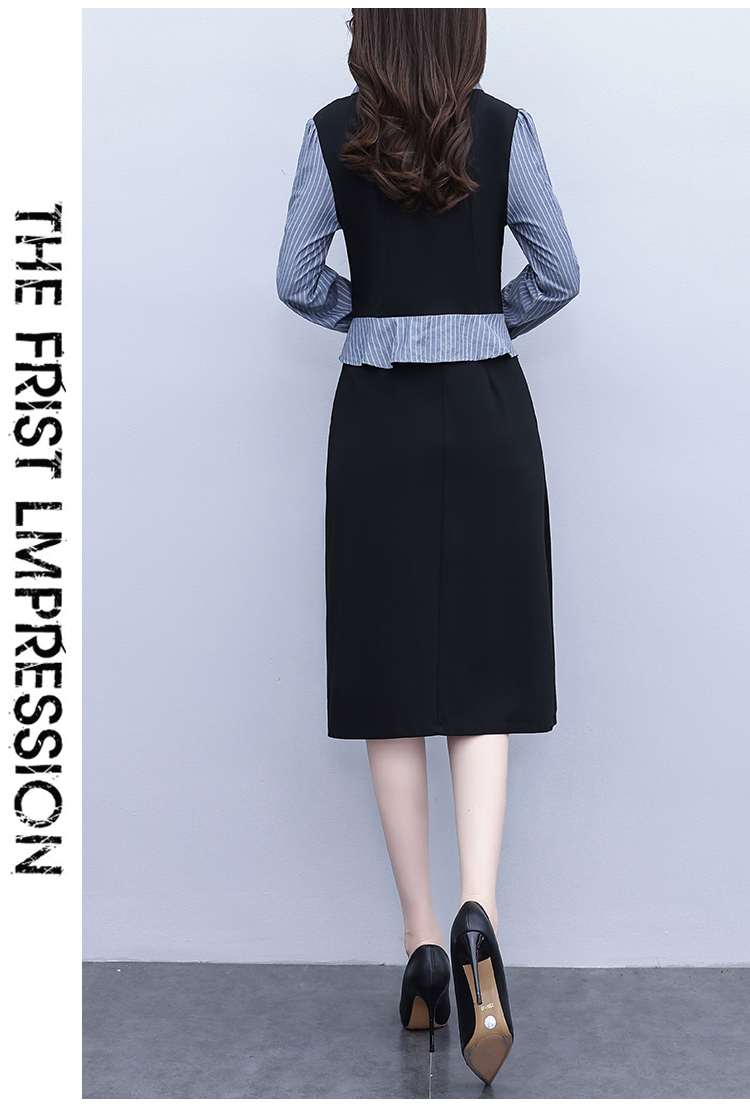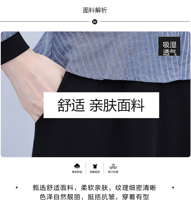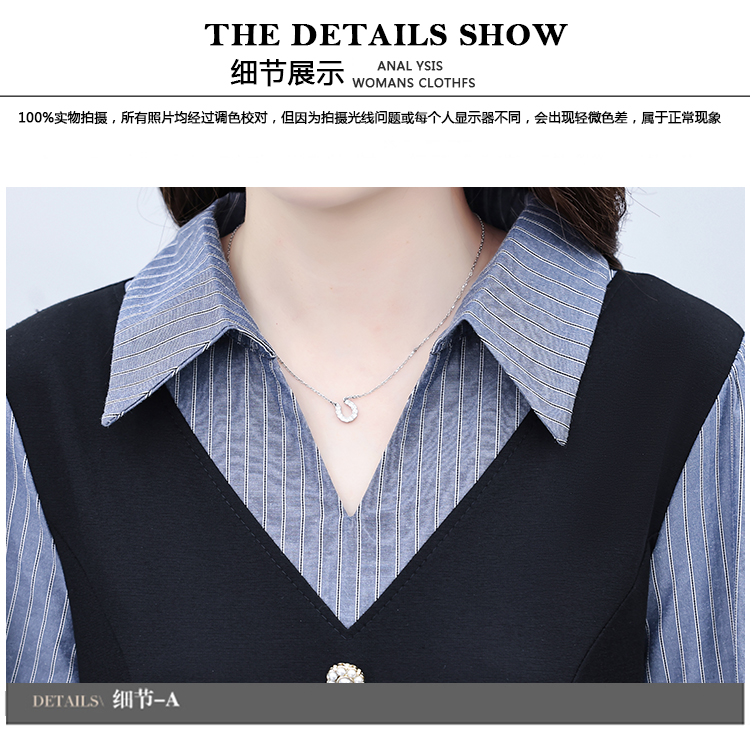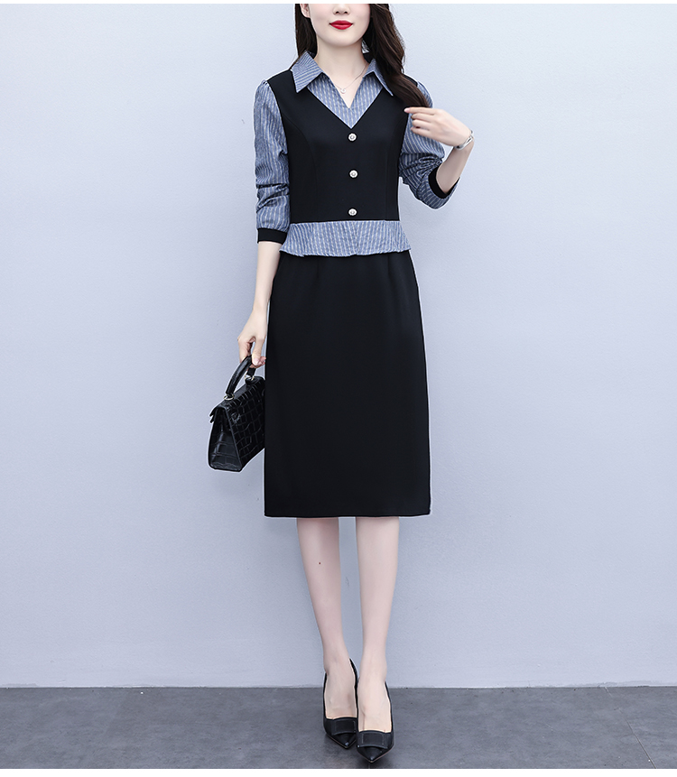 MY13854# 女裝貨源大码裙子新款遮肉条纹拼接气质假俩件显瘦减龄中长连衣裙女裝貨源服裝批發服裝批發