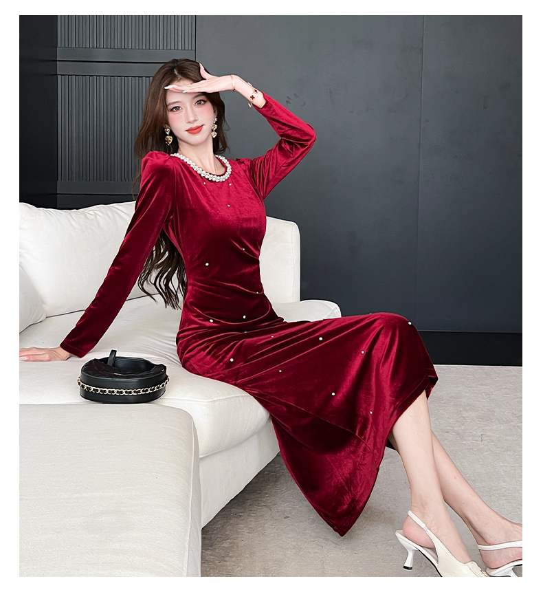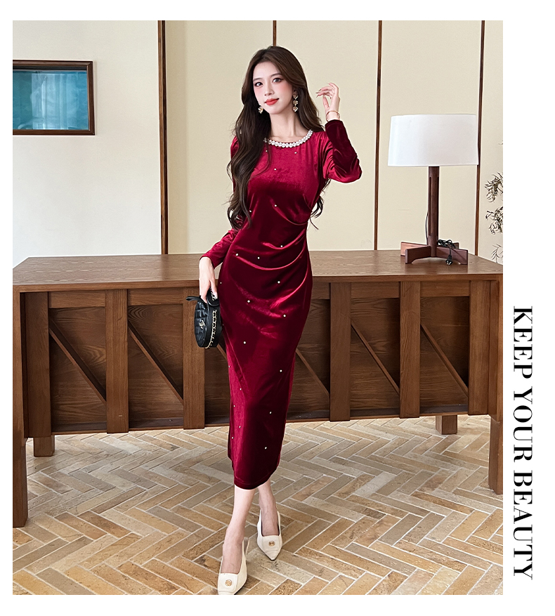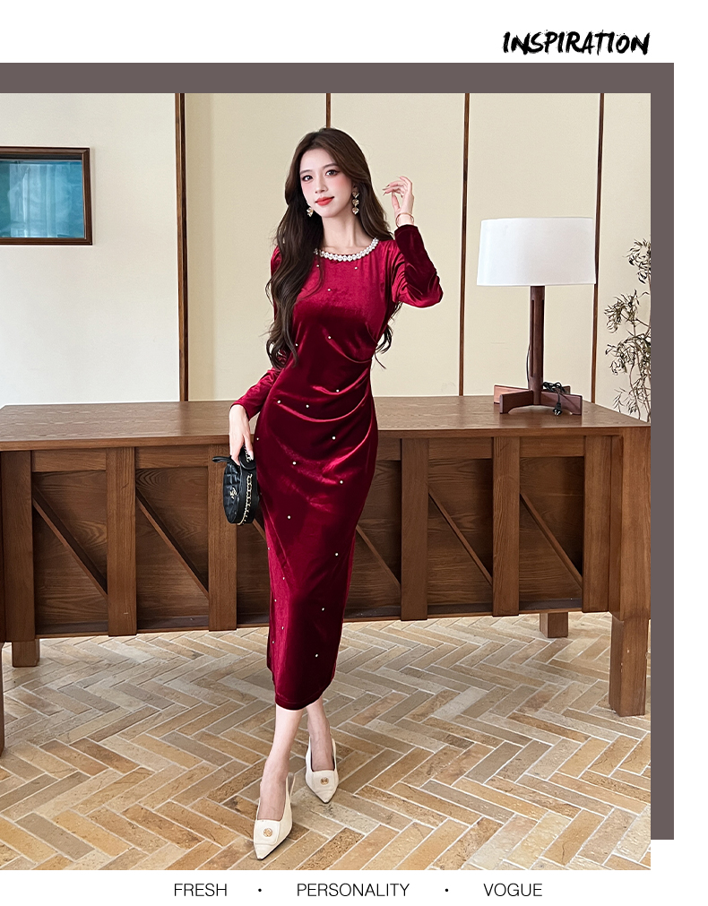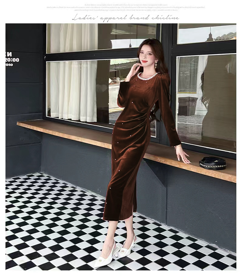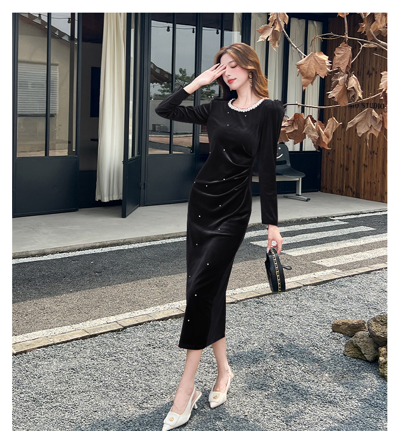 MY13865# 女裝貨源新款时尚秋季金丝绒长裙包臀连衣裙女裝貨源服裝批發服裝批發