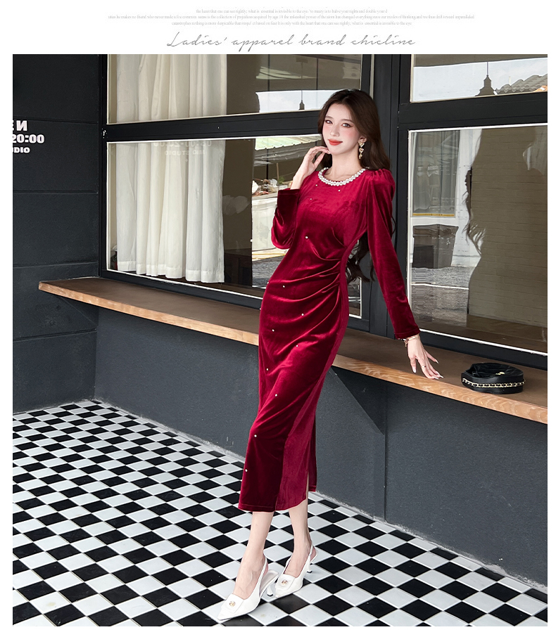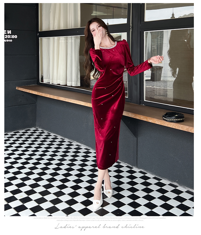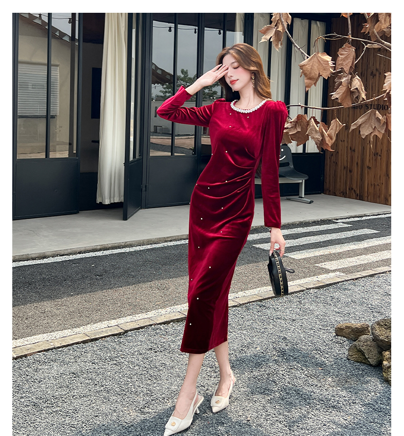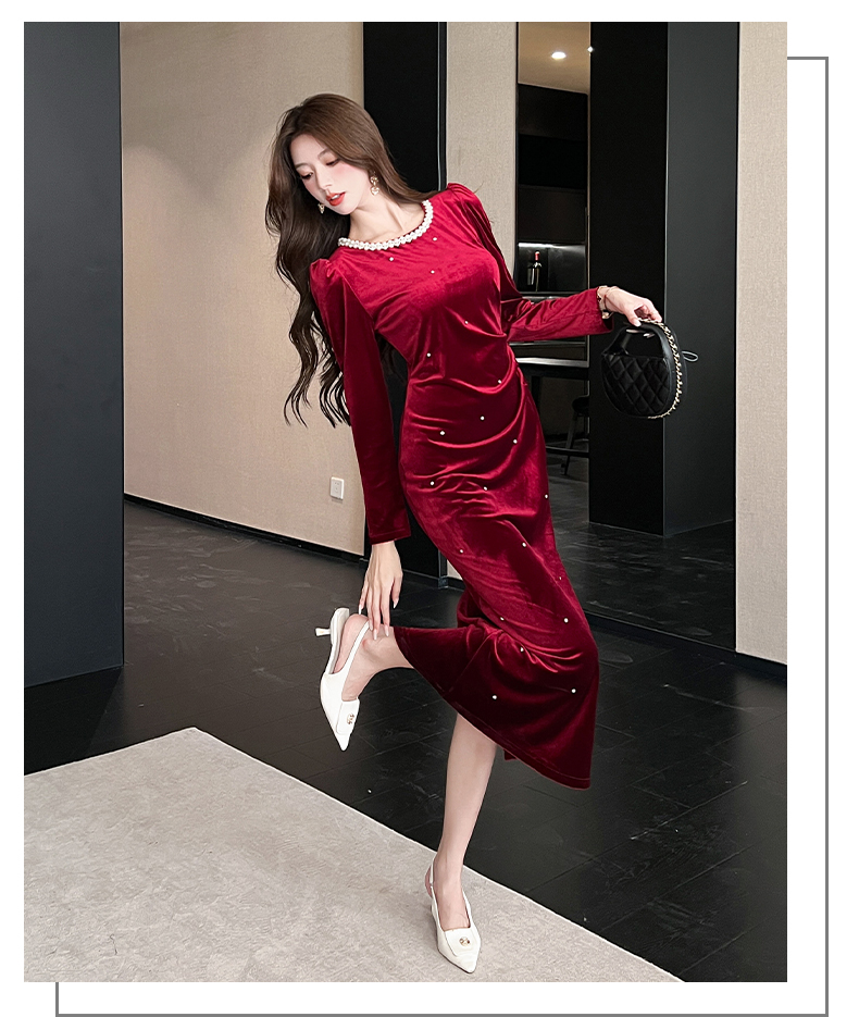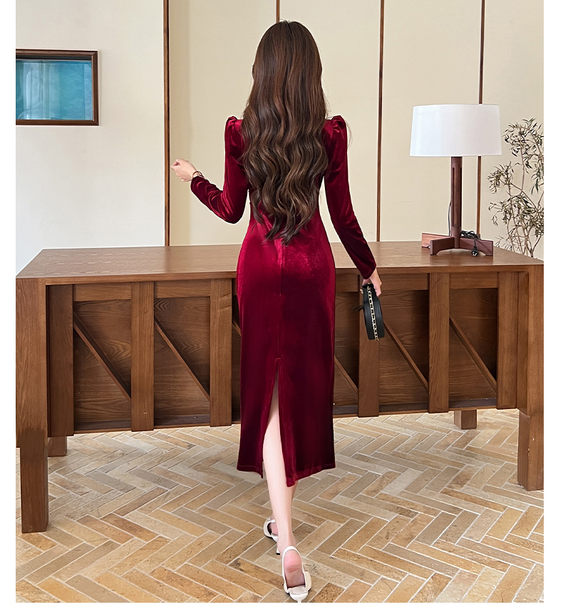 MY13865# 女裝貨源新款时尚秋季金丝绒长裙包臀连衣裙女裝貨源服裝批發服裝批發