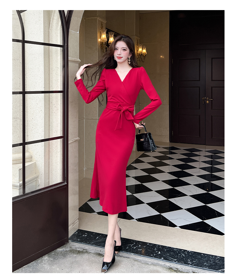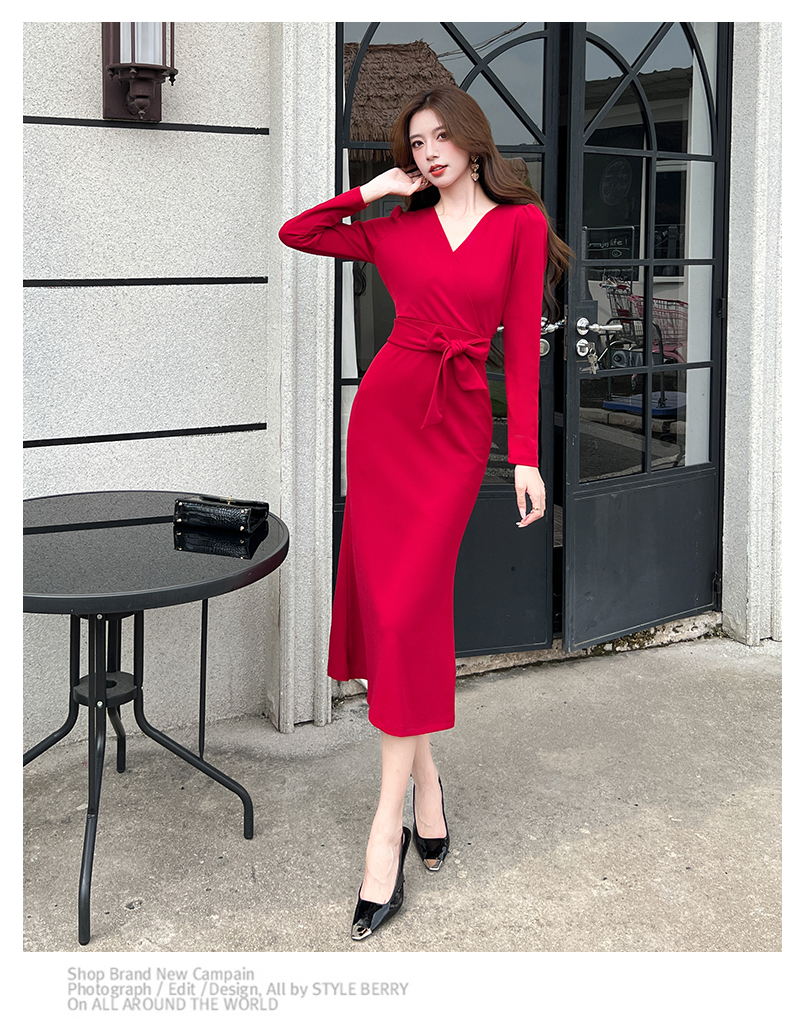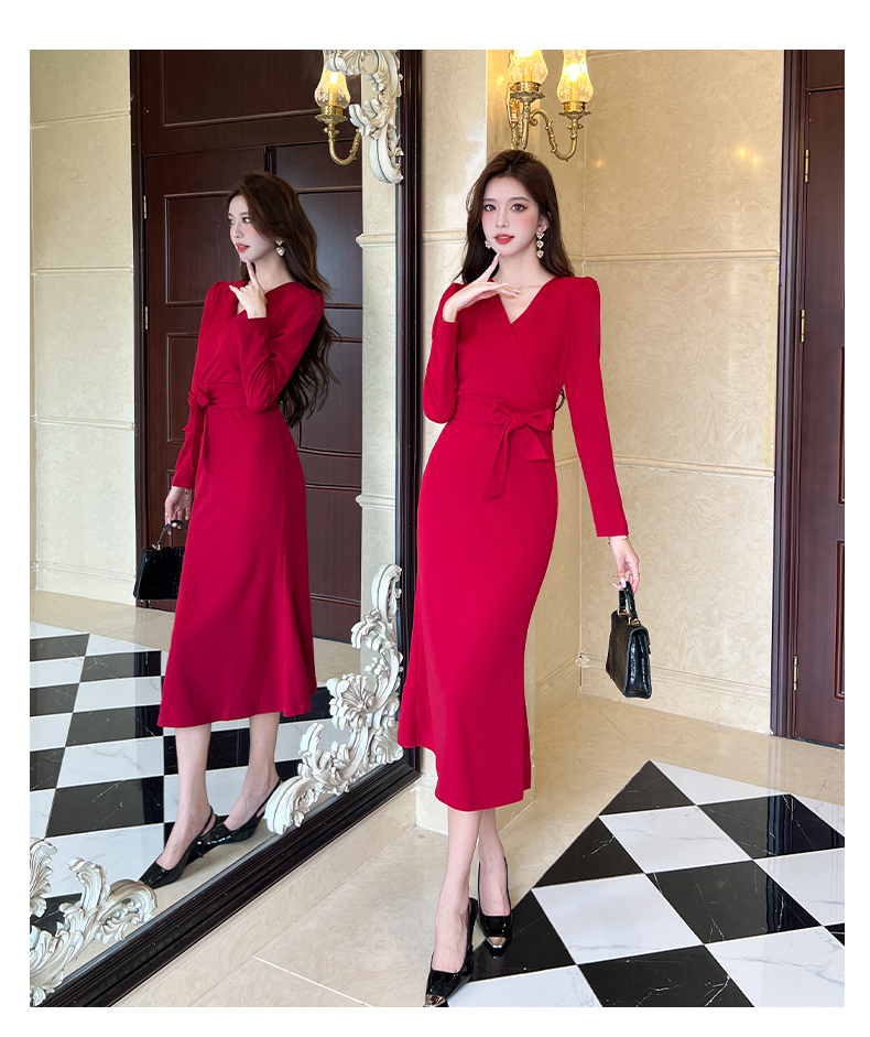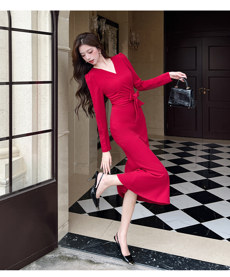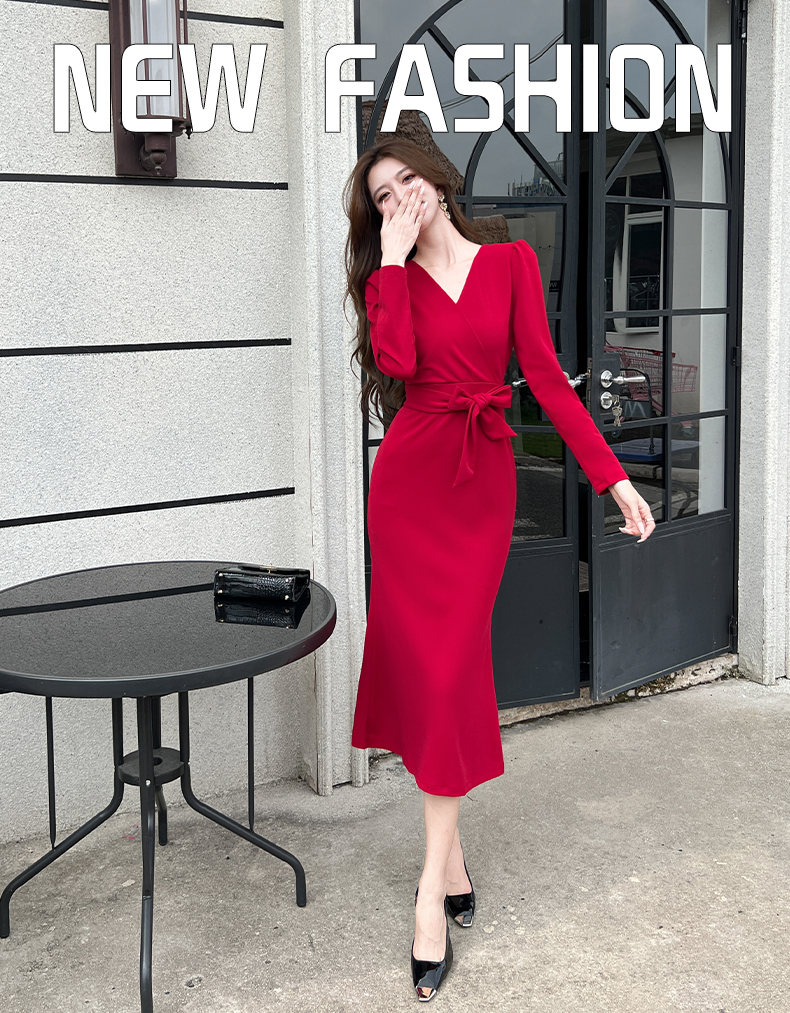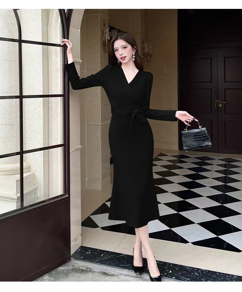 MY13867# 女裝貨源时尚气质显瘦长裙收腰连衣裙女裝貨源服裝批發服裝批發