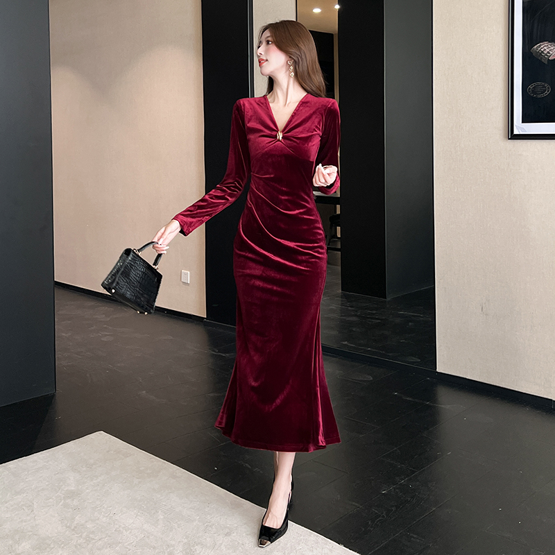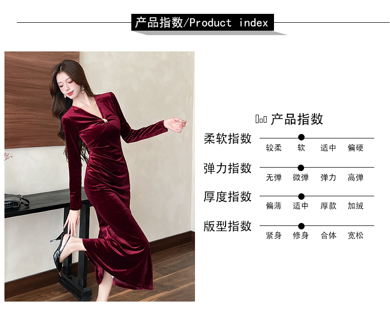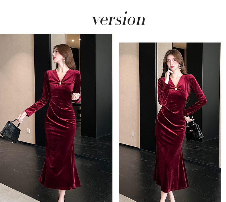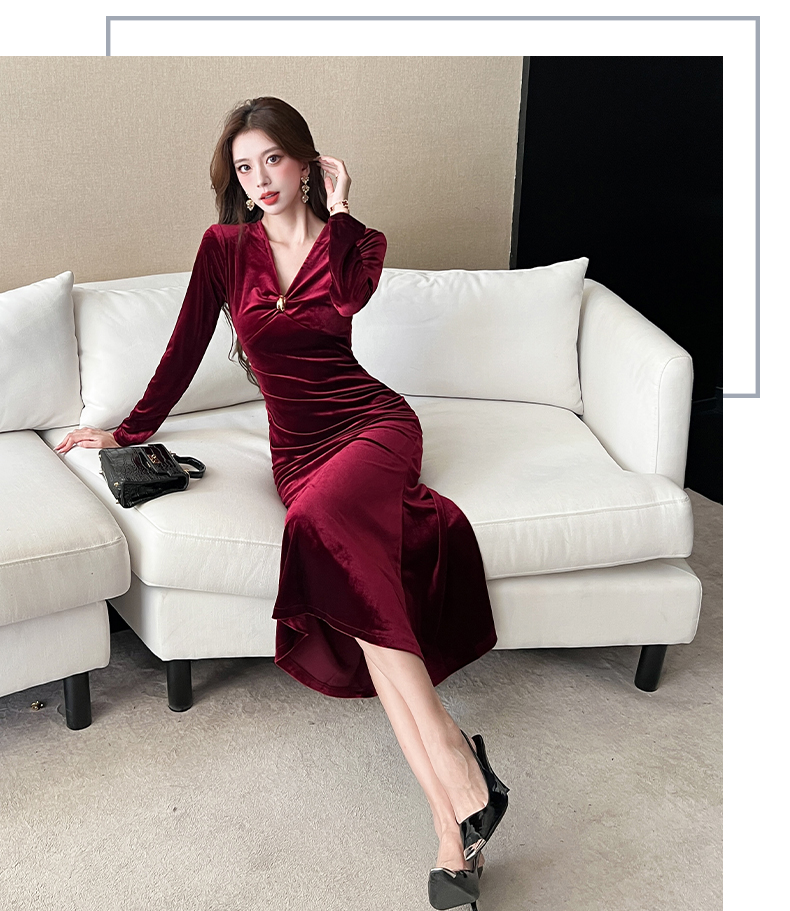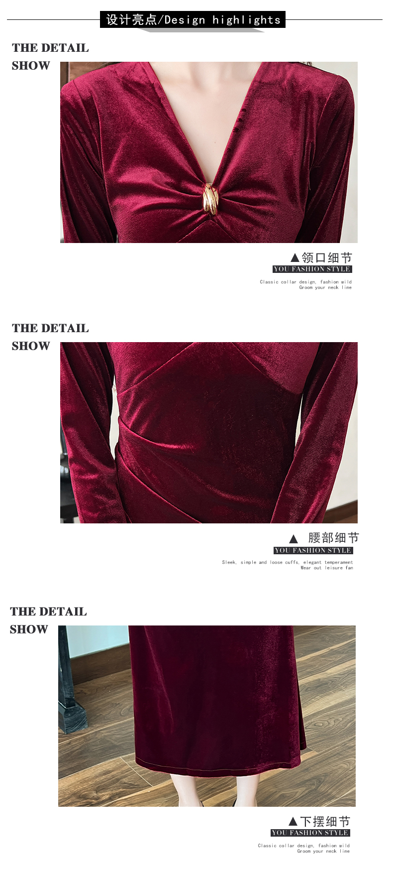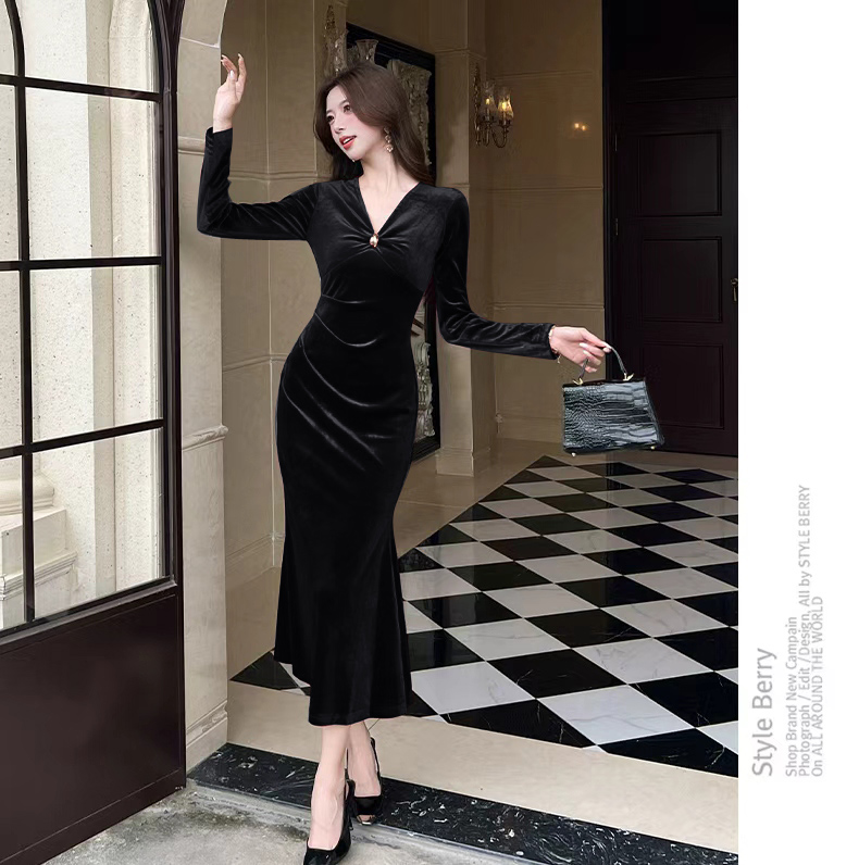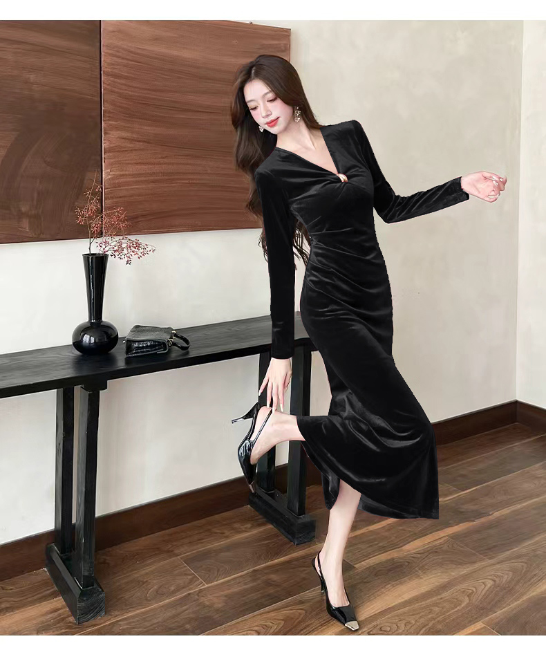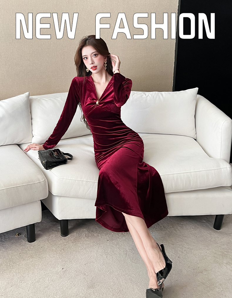 MY13868# 女裝貨源新款时尚气质网红金丝绒v领长裙连衣裙女裝貨源服裝批發服裝批發