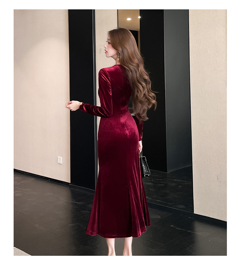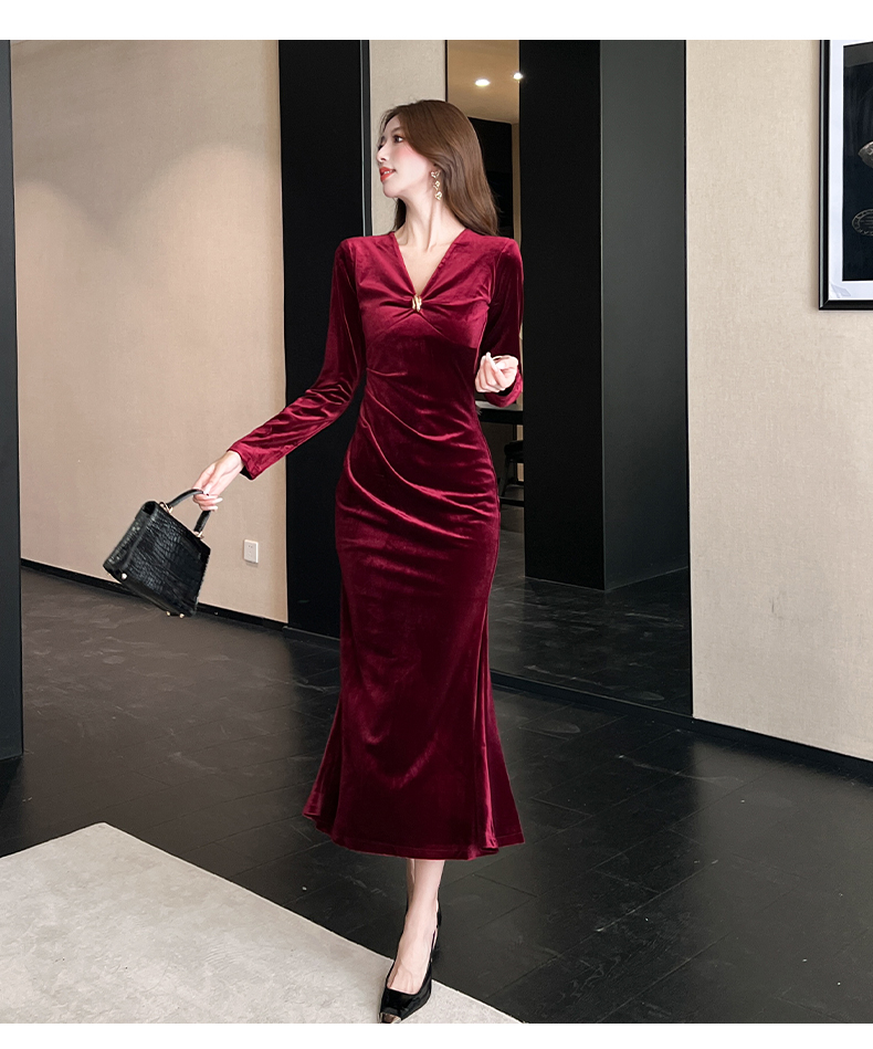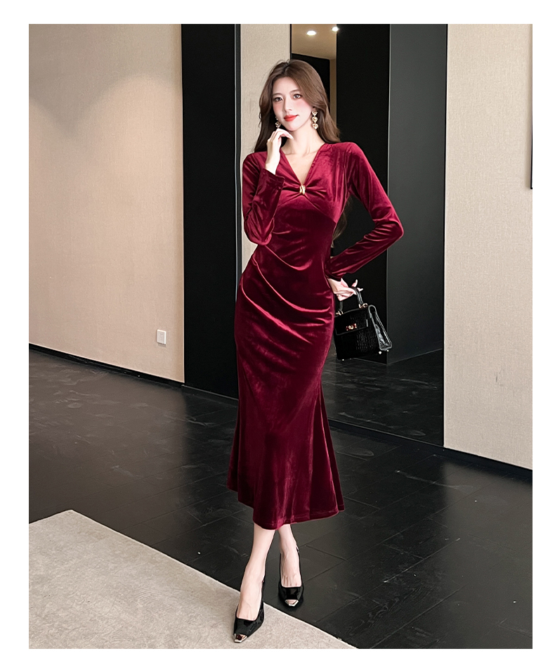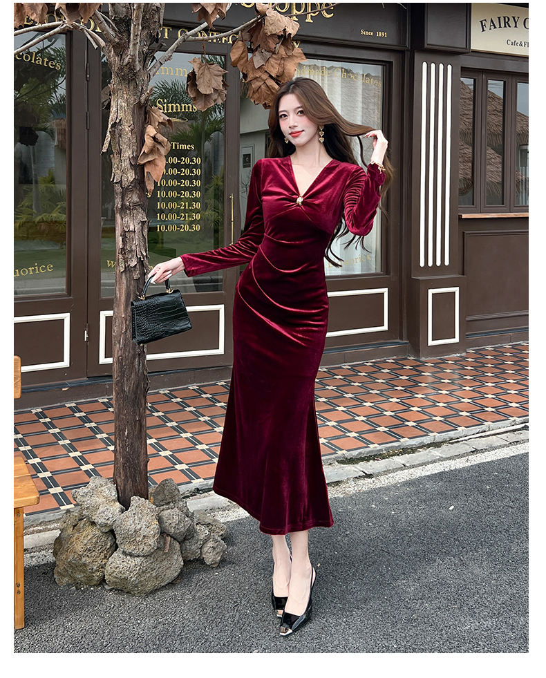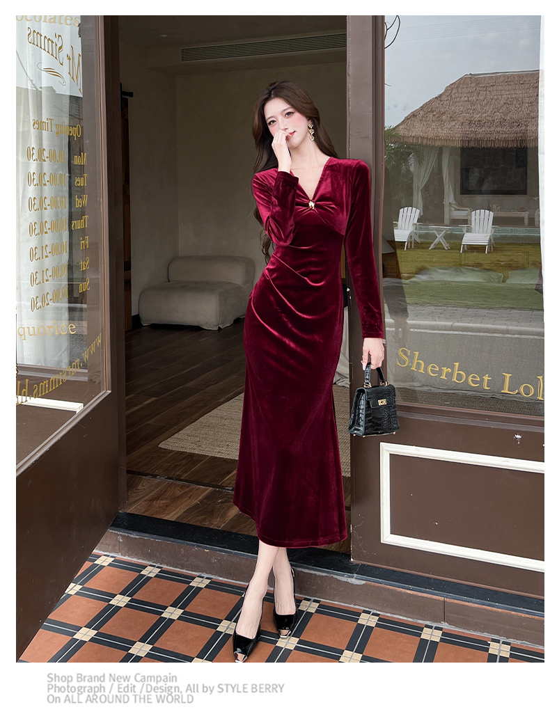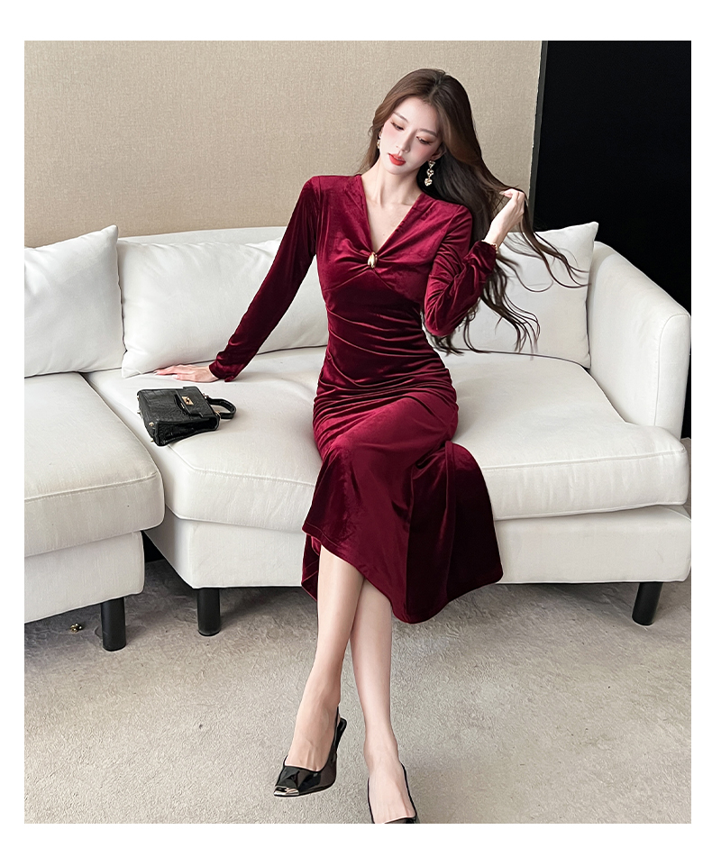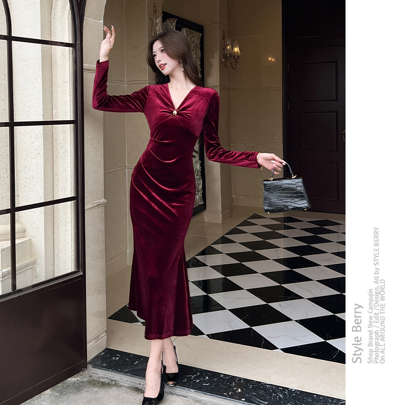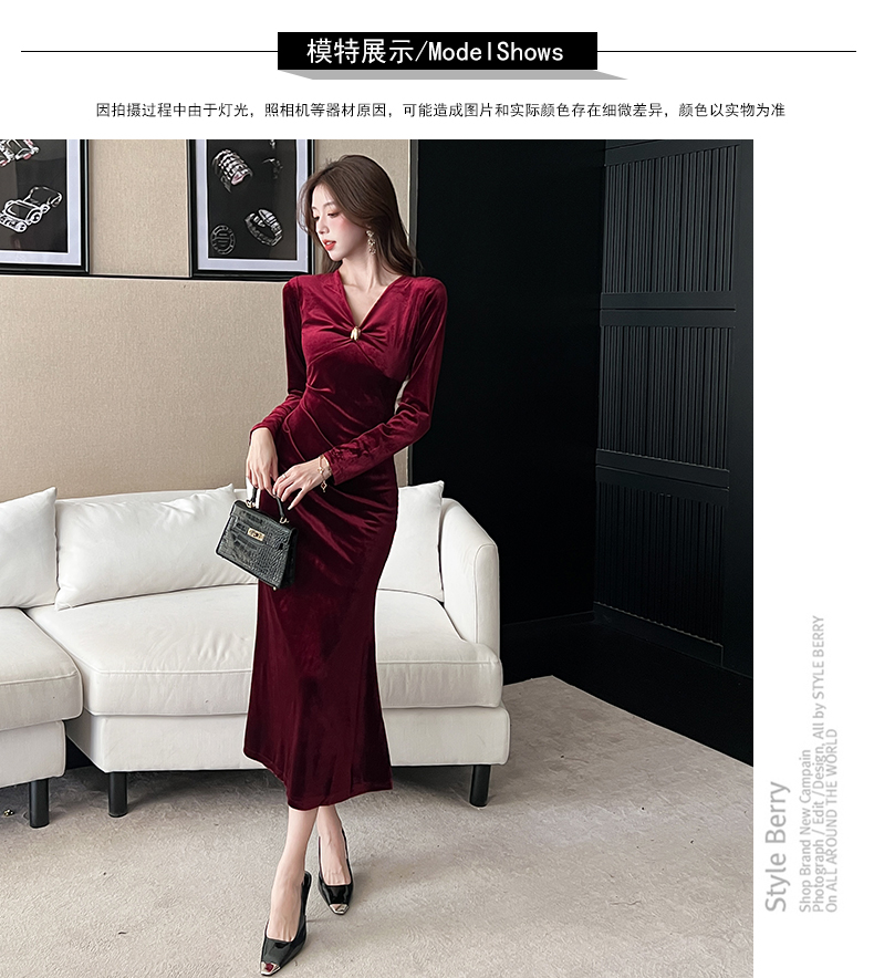 MY13868# 女裝貨源新款时尚气质网红金丝绒v领长裙连衣裙女裝貨源服裝批發服裝批發