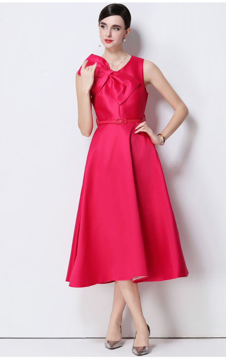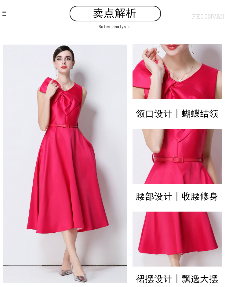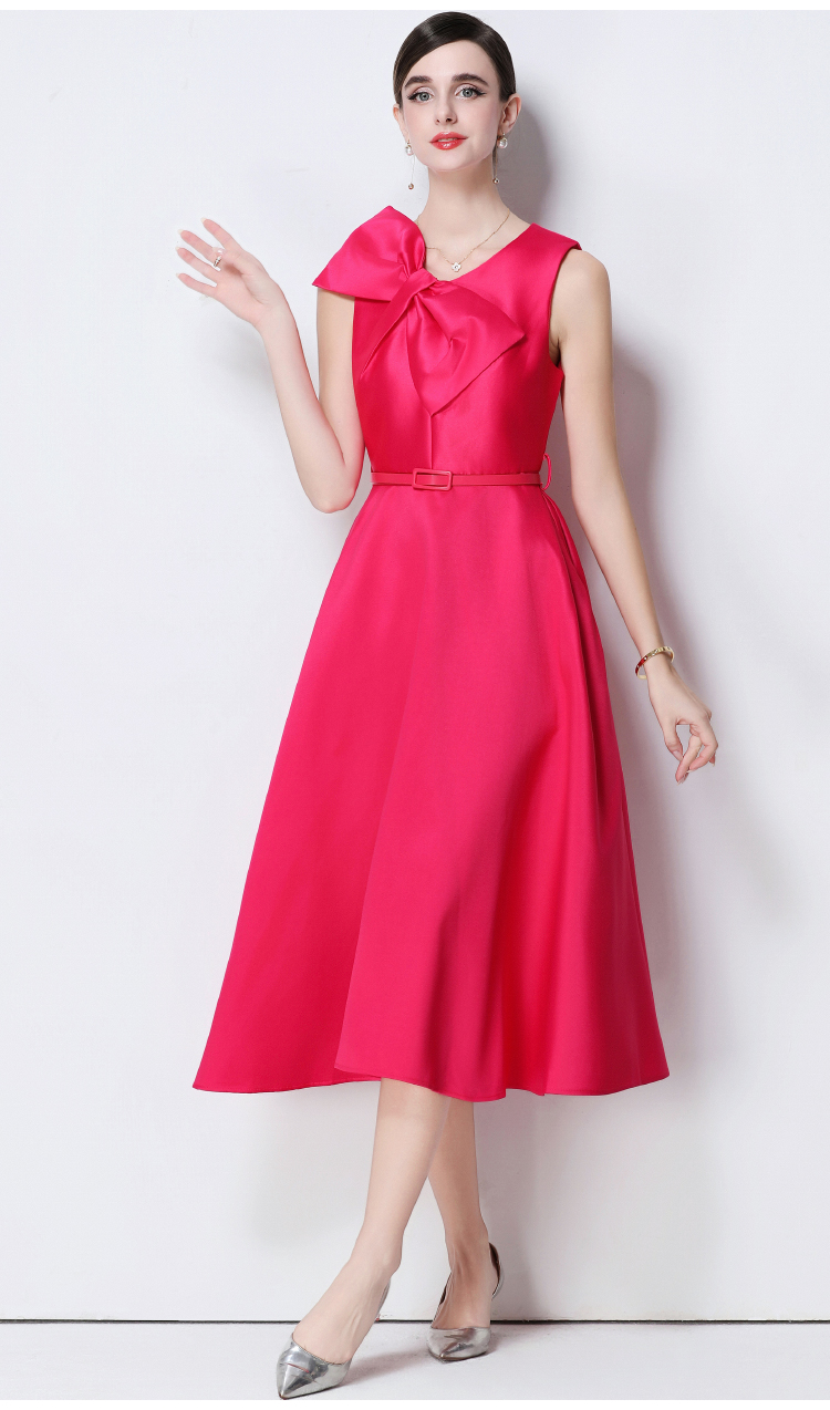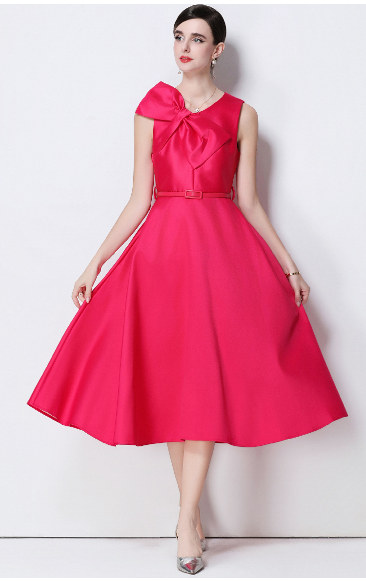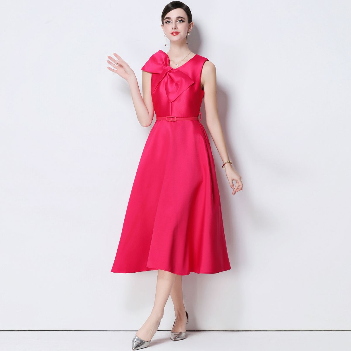 MY13880# 女裝貨源法式复古设计感V领大蝴蝶结收腰显瘦大摆无袖连衣裙送腰带女裝貨源服裝批發服裝批發