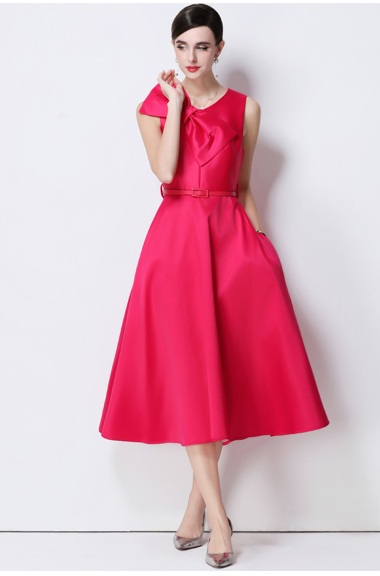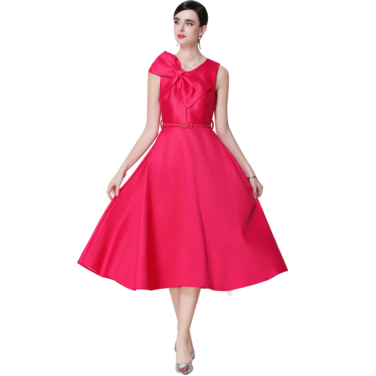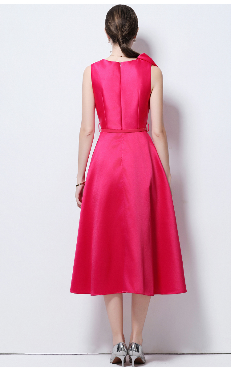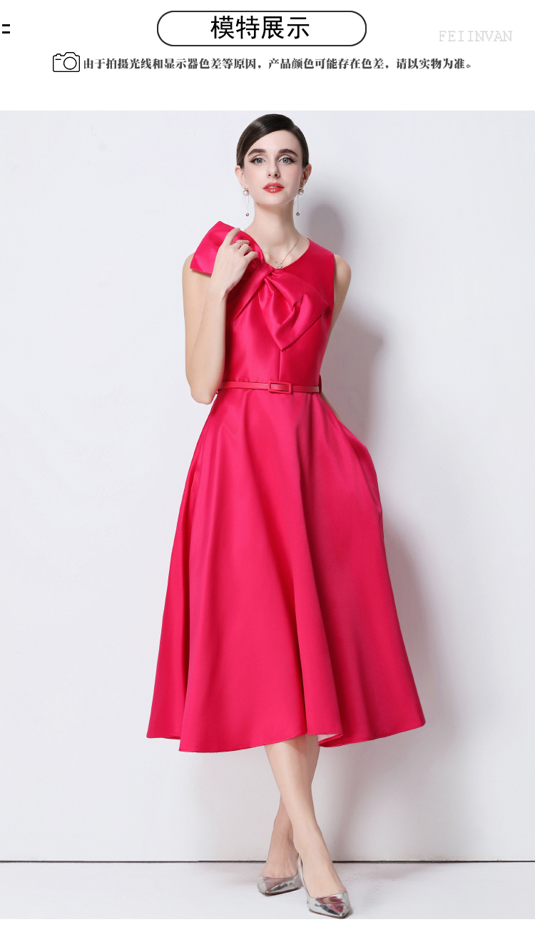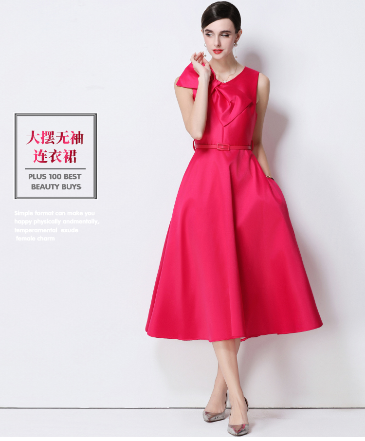 MY13880# 女裝貨源法式复古设计感V领大蝴蝶结收腰显瘦大摆无袖连衣裙送腰带女裝貨源服裝批發服裝批發